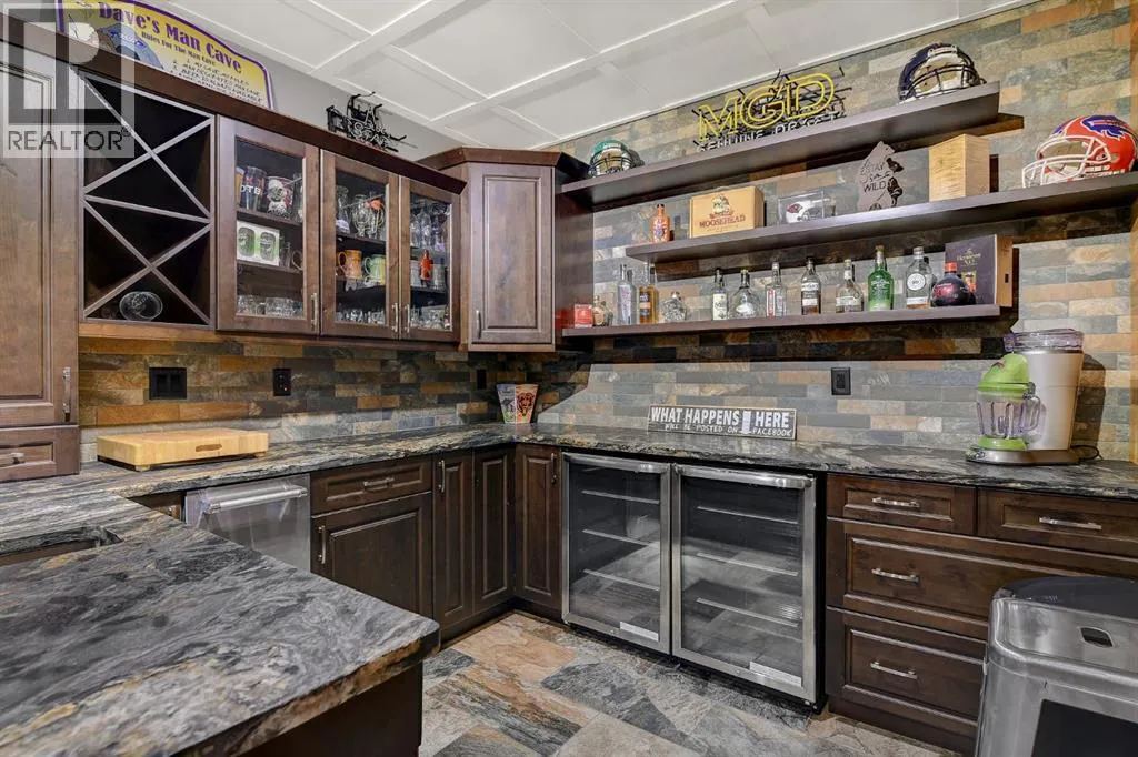 Welcome to this stunning 3,132 sq. ft. custom built "HomeEdge" bungalow in the sought after community of Taylor Estates, nestled on a beautifully treed lot. From the moment you step into the grand entryway, youâre greeted by soaring ceilings and striking timber frame accents, with views leading out to the expansive covered deck.The chef-inspired kitchen is truly the heart of the home, featuring granite countertops, a large island, side-by-side fridge and freezer, a 6 burner Wolf gas stove with dual ovens, and the convenience of two dishwashers perfect for entertaining.The spacious primary suite offers a luxurious retreat, complete with a spa like ensuite showcasing a tiled walk-in shower, jacuzzi tub, and an impressive walk-in closet. Main floor offers a second large primary suite with full bathroom and walk-in closet. Main floor laundry and office. Downstairs, the fully developed basement is built for entertaining, highlighted by an incredible games room with five TVs and sport net clicker ideal for sports enthusiasts and a beautifully restored vintage snooker table. This level also includes three additional bedrooms, a full bathroom, and a dedicated theatre room with seating for the ultimate movie nights.Additional features include dual furnaces and central air conditioning, as well as in-floor heating in the basement, garage, and ensuite for year-round comfort.The oversized 57â x 26â garage, along with an attached 16.5â x 51â RV bay, provides exceptional space for vehicles, toys, and storage. This one-of-a-kind property is a must-see! (id:27476)
