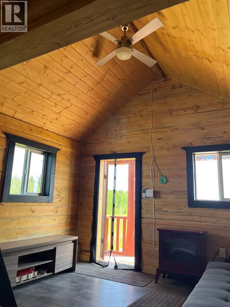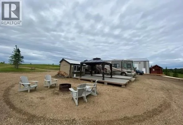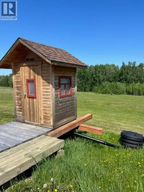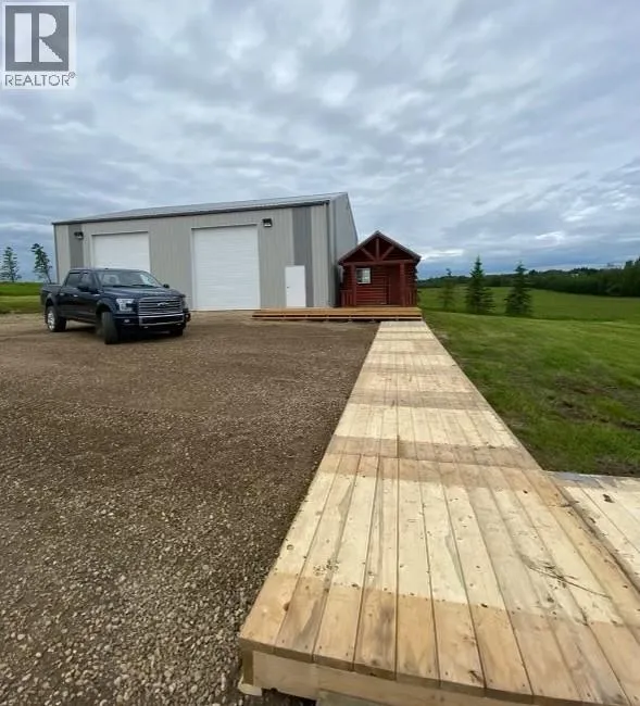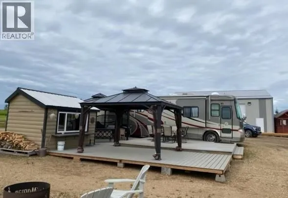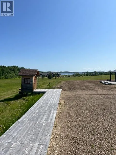 Gorgeous well established 9.88 acre lake retreat in Eagle Bay on the west side of Sturgeon Lake just 45 minutes from Grande Prairie and 15 minutes to Valleyview. This wonderful recreational property is completely set up with 42 x 52 Goodon shop, a small fully finished and furnished cabin, outhouse with sink, woodshed and multiple trailer sites with a 2-tiered composite deck, 2 gazebos, kitchen shack, 30 and 50 amp plugs, water and sewer hookups. The huge shop has 16 ft high ceiling, 2 - 12x14 overhead doors, 8 sliding windows, LED exterior lighting, gravel floor with an interior wood deck that accommodates water cistern, workbench, fridge, and freezer. The little charming log cabin with loft has built-in bed and comes with fireplace, futon, TV stand, and portable air conditioner. This gorgeous lot is situated at the very end of the quiet internal road with little to no traffic and a spectacular view of the lake. Lot has been improved with a driveway, tons of mature trees, and landscaping, natural gas is at the property line and there is an ideal building site if a more significant cottage or year-round residence is your plan. Eagle Bay has developed into one of the premier Sturgeon Lake developments with massive lots delivering unrivaled privacy, many impressive cabins and homes, and Youngâs Point Provincial Park and boat launch are very close. Take the short drive out to view this superb recreational getaway. (id:27476)