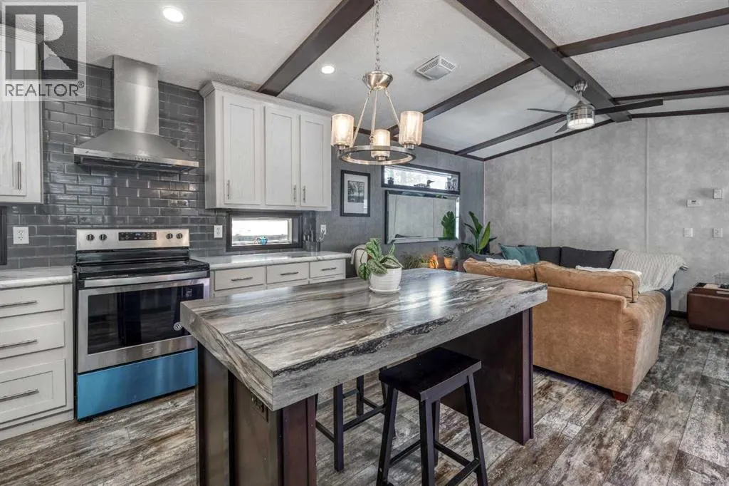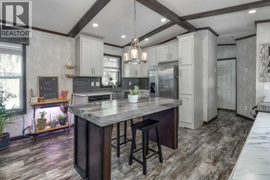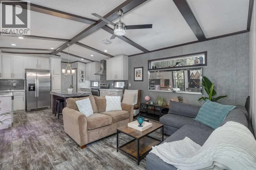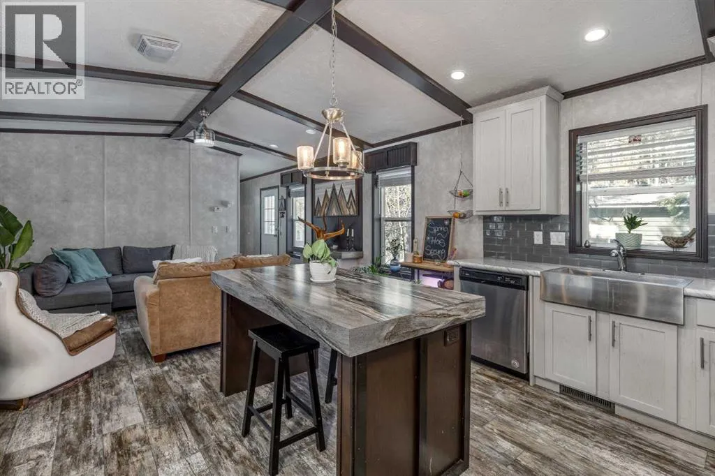 Selling a lifestyle, not just a home! This is an incredible opportunity to live, work, play and own a home in a beautiful Provincial Park. This spacious manufactured home with no neighbors behind offers 3 bedrooms, 2 full bathrooms and an open concept kitchen & dining area. The primary bedroom features two closets and the luxurious 5pc ensuite has a walk-in shower, soaker tub and double vanity. The other two bedrooms are situated at the opposite end of the home, with their own entrance and a shared bathroom. This 1183 sqft home has a thoughtfully designed floorplan, which offers the flexibility for a variety of living situations such as a small family home, shared living or staff accommodation. This home was purchased new in 2020 and is being sold by the original owner. Mount Kidd RV Park, where this home is situated on a leased lot, offers stunning views of the mountains and is surrounded by forests with walking, biking and cross-country ski trails. In your time off, enjoy what this resort village has to offer; Kananaskis Country Golf Course is right on your doorstep, there is Horseback Riding at Boundary Ranch, there are many Restaurants to enjoy at the Pomeroy Kananaskis Mountain Lodge and the list goes on... Hop in the car and itâs only 1 hour to Calgary or Banff and 40 minutes to Canmore. There are ample work opportunities in the area, as KID is one of Albertaâs ultimate tourist destinations. Residents of the Kananaskis Improvement District (KID) must meet the âneed to resideâ policy which means only workers in the area have the privilege of living here! Donât miss this chance to live in one of Canadaâs most beautiful locations! Viewings are by appointment only. (id:27476)