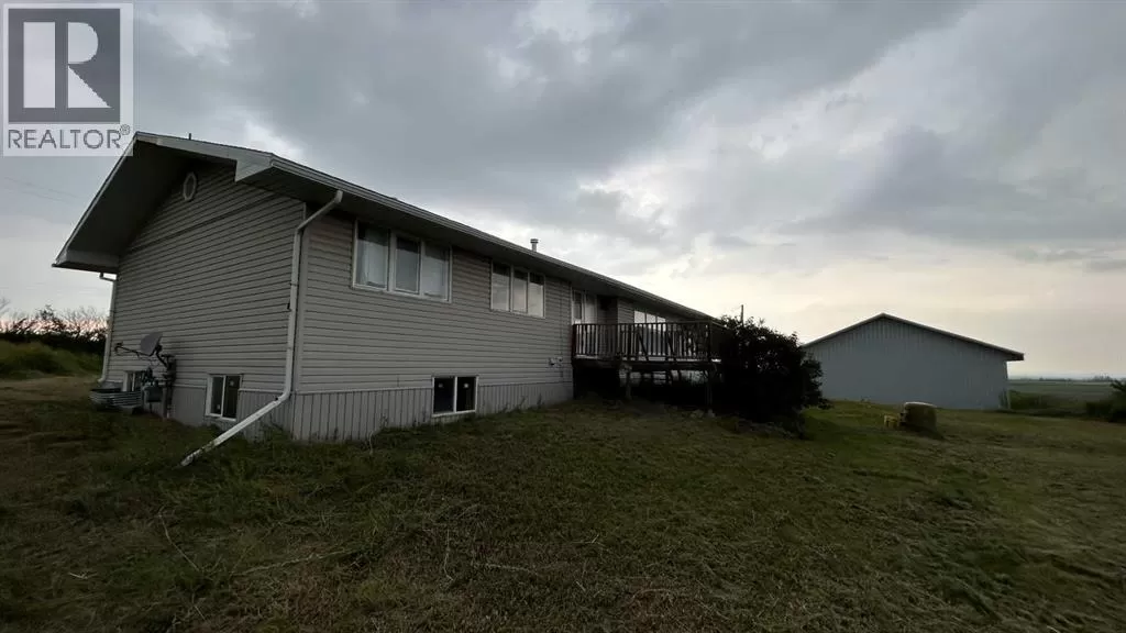 Hereâs your chance to own a beautiful 4-acre parcel in the countrysideâjust under 55 minutes from Calgary! Nestled beside a scenic coulee with a small pond, this spacious 1,500+ sq. ft. bungalow offers the perfect blend of rural charm and practical potential.The home features three bedrooms and 1.5 bathrooms, with a framed basement ready for developmentâjust waiting for your personal touch. Finish it off and complete a few remaining renovations on the main floor to instantly add value and equity.Additional highlights include:Two insulated barns/workshops 36mX18mâ both built in 2022Attached garage/workshopTwo decks, including a massive 24â x 14â west-facing deck for ultimate privacyNew hot water tankHighly insulated foundationAbundant electrical powerWell + municipal water for reliable supplySecond driveway access â ideal for future development, additional buildings, or a large workshopThis home offers incredible potential for a renovation project, flip, or a dream home with built-in equity. With this much land and infrastructure at such an affordable price, it's a rare find in todayâs market. (id:27476)
