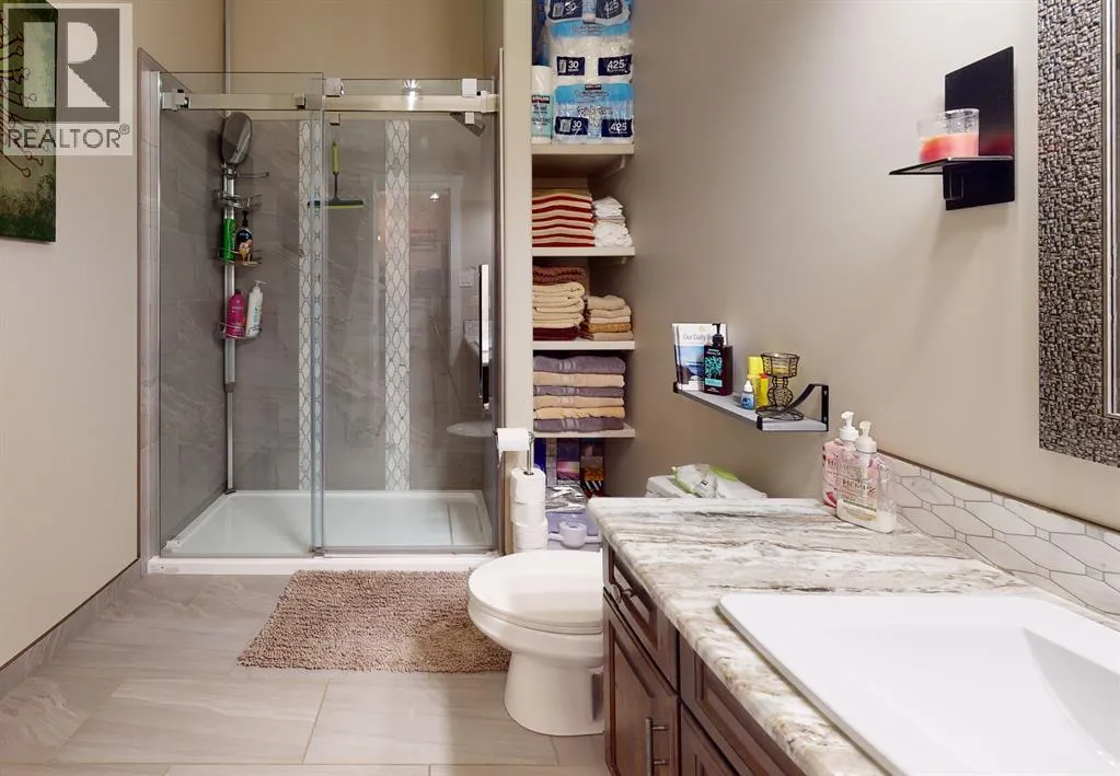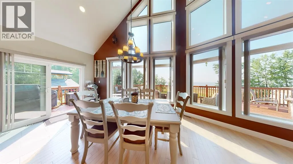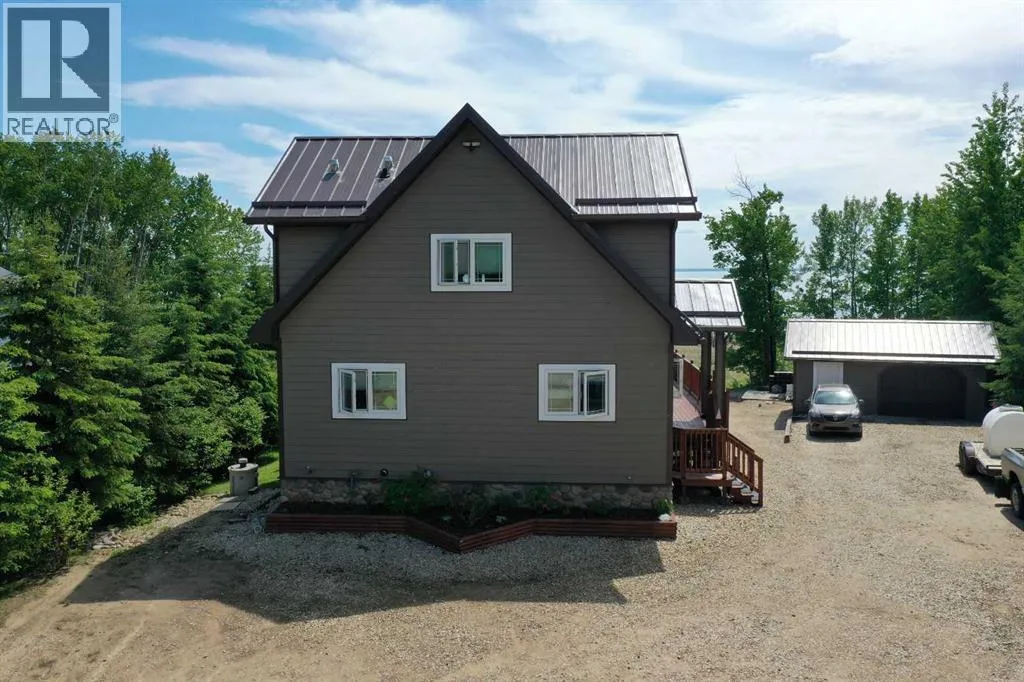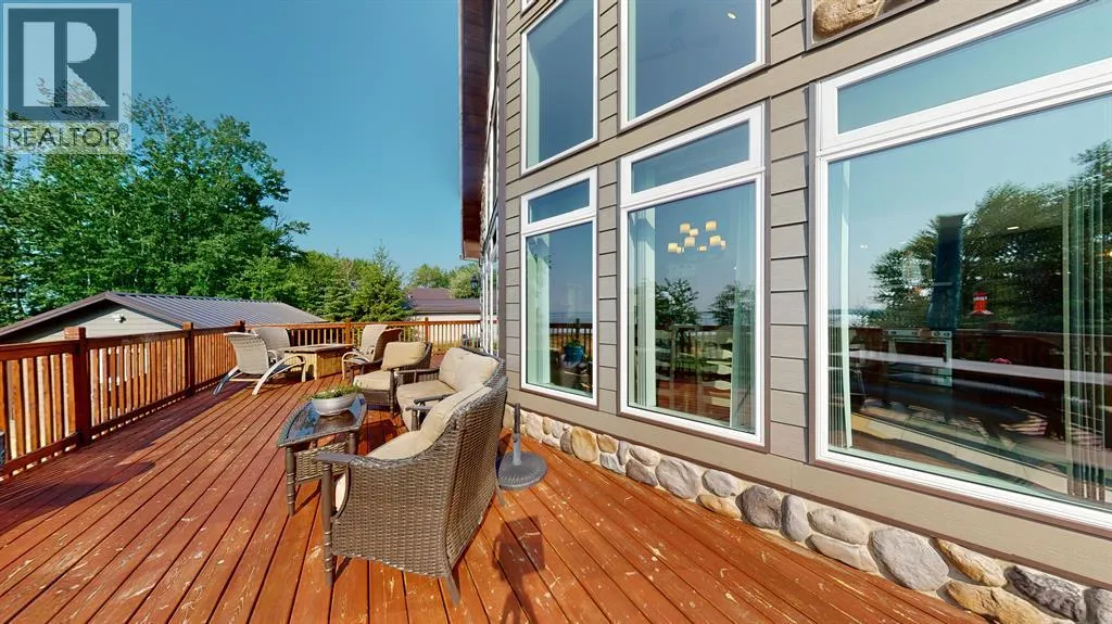 Executive lakefront living at Blais Resort! This 4-bedroom, 4-bathroom home spans three fully finished levels and has been thoughtfully designed with luxury, comfort, and functionality in mind. From the outside, the home makes the most of its south-facing exposure with floor-to-ceiling windows and a 26 ft deck overlooking the lake. The property includes a 28x32 heated double garageâcomplete with its own 3-piece bathroom and laundry pairâplus a fully insulated 16x24 cold storage shed and a 12x14 heated and insulated bunkie for extra guest space. Inside, the main floor offers two generous bedrooms, while the upper level features the primary suite with walk-in closet, ensuite, and a dedicated office. The walkout basement is beautifully finished with a wet bar, exercise area, TV space, full bathroom, mechanical room, and another bedroom, leading out to a screened and covered patio with serene lake views.Built with no expense spared, this home features continuous metal roofing, Hardy board siding, triple-pane windows, an ICF block basement with infloor heating, tankless hot water, an efficient heat exchange system, central A/C, and spray foam insulation in all walls and ceilings.Finishes include hardwood flooring, granite countertops, custom tilework in the kitchen and bathrooms, high-end appliances, a stone-mantel gas fireplace, an electric fireplace in the primary bedroom, and timeless décor throughout. Every window frames an unobstructed view of the lake. Lovingly designed and built by the original owners, this remarkable home is ready to welcome a new family to enjoy the lakefront lifestyle they envisioned. (id:27476)