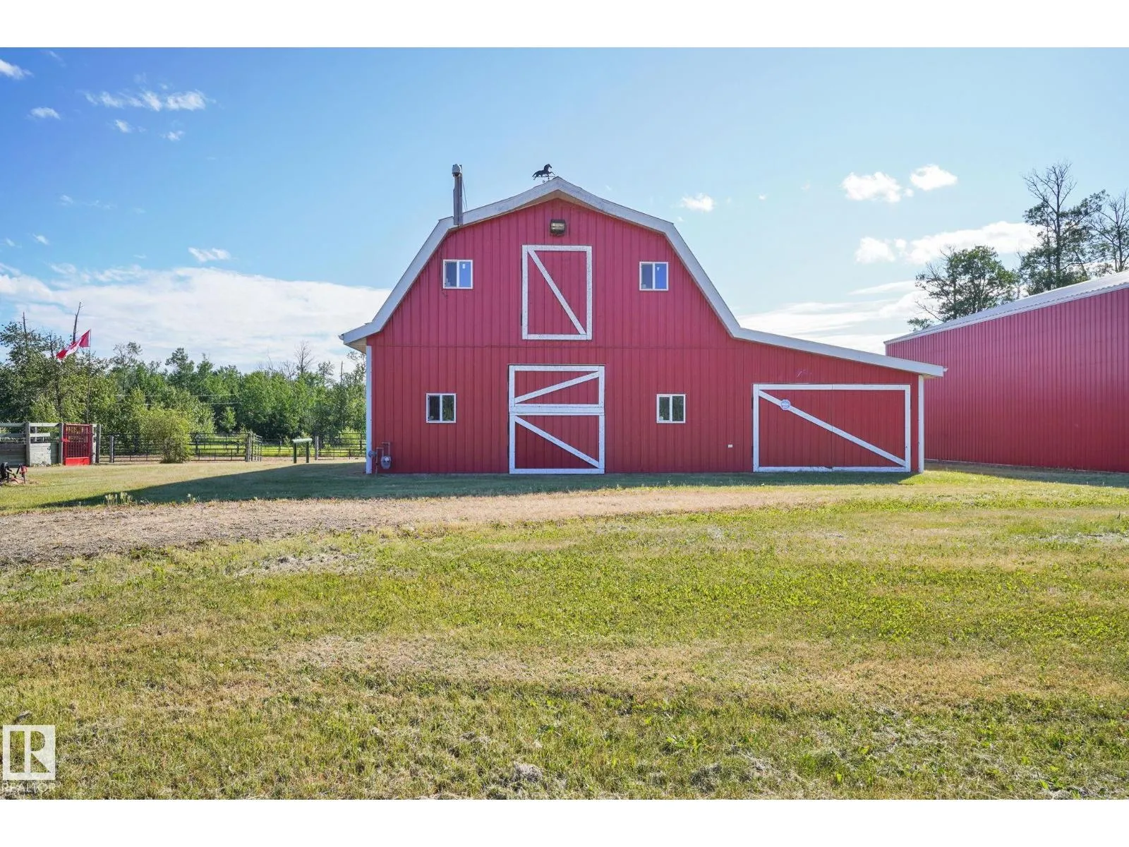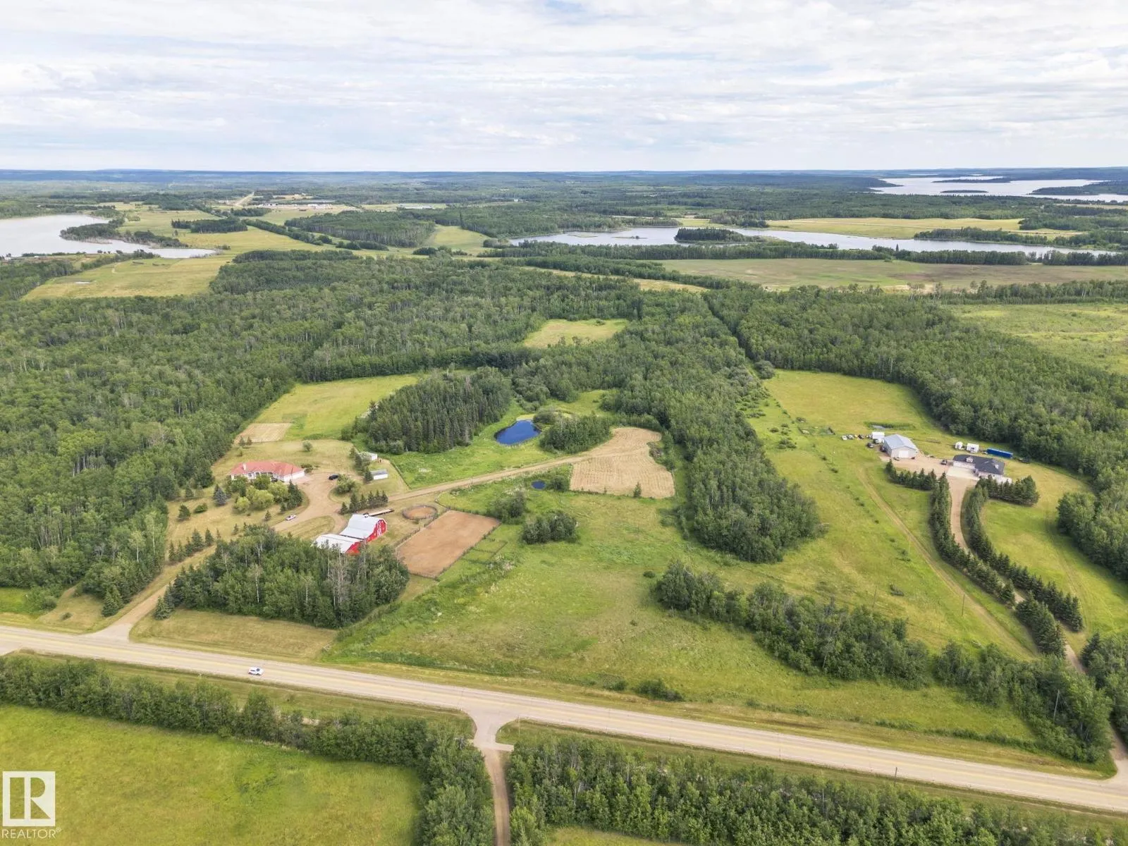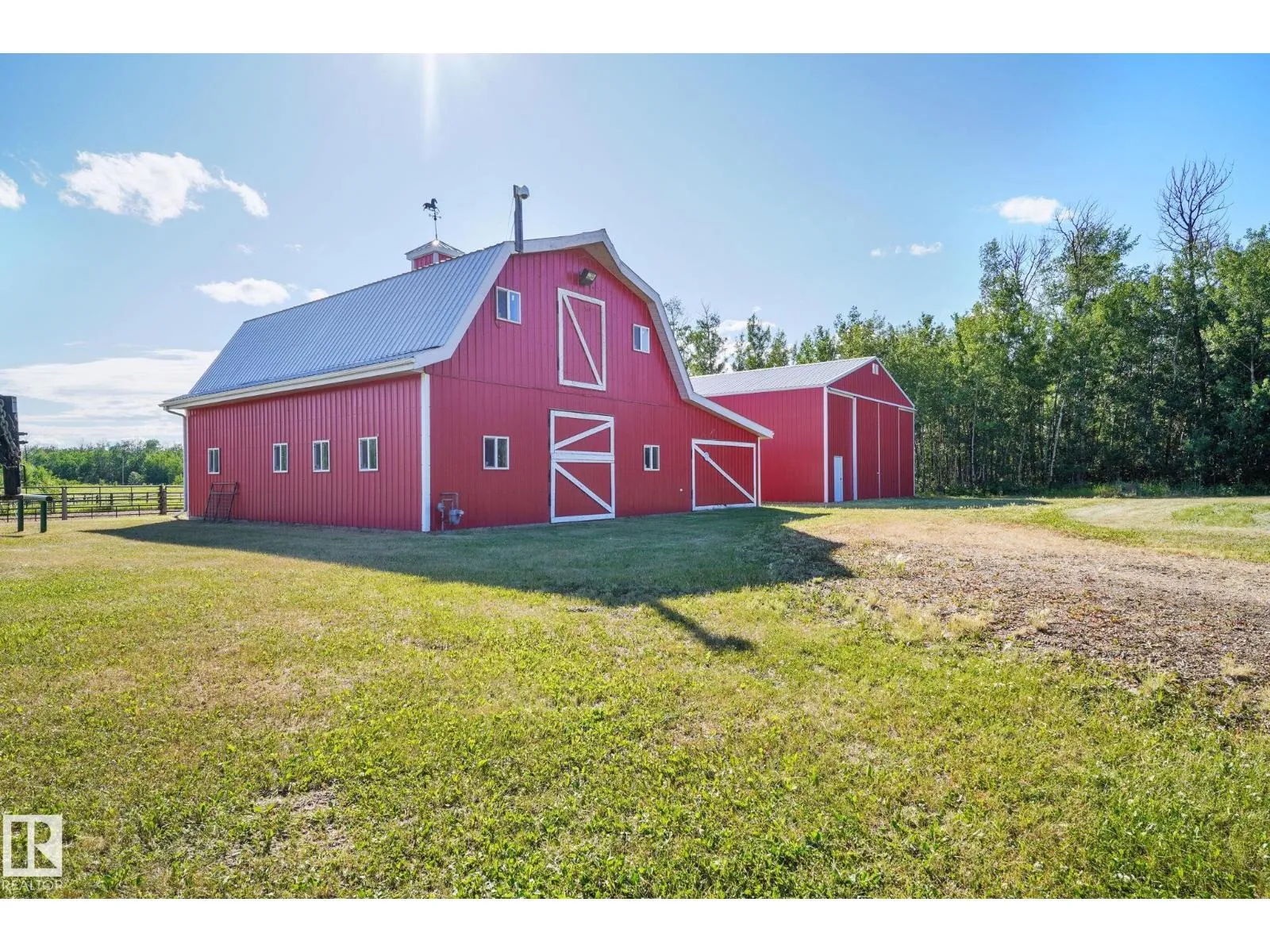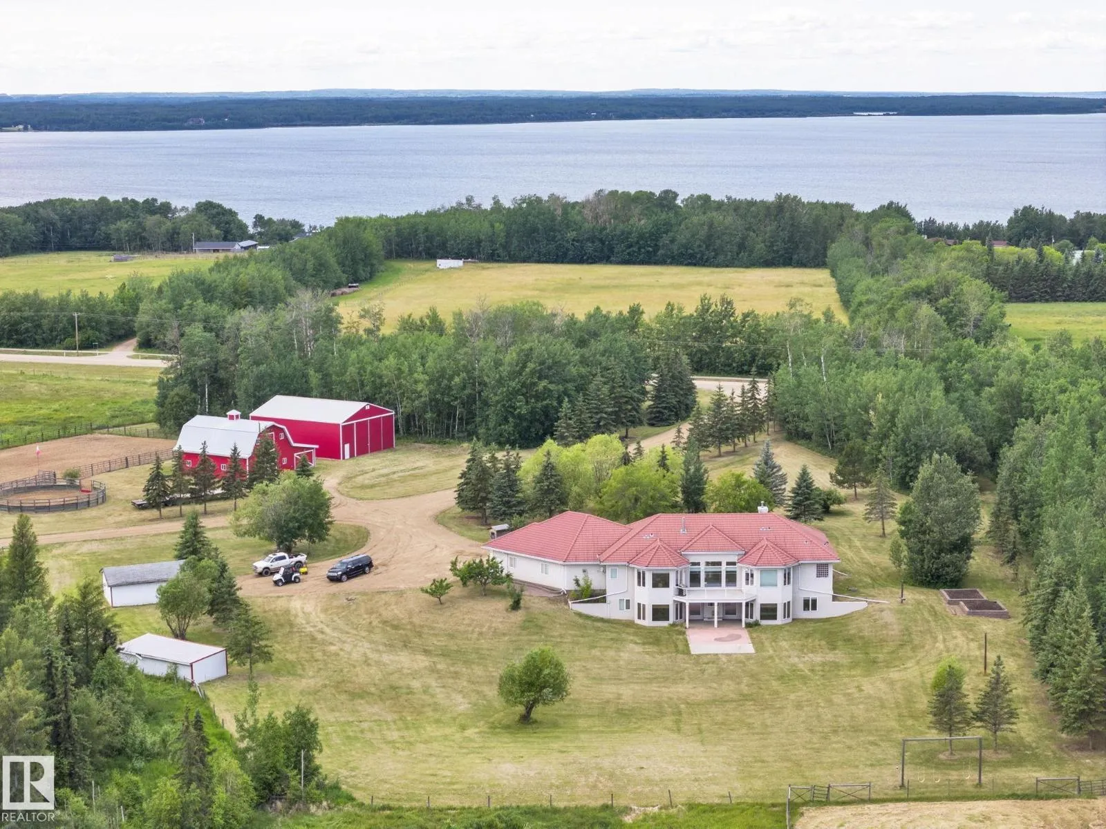 Welcome to this EXCLUSIVE Equestrian Estate! Situated just 2 KM from town, this prime 51-acre LUXURY property is in a league of it's own! A PRIVATE Spruce-lined driveway welcomes you in. Featuring a 12-acre HAY FIELD, trail system, 100 x 200 outdoor RIDING ARENA, round pen, corrals, watering bowls, & hydrants. OUTBUILDINGS include a HEATED BARN w/2 stalls, tack room, & full loft, plus a 42x56 METAL CLAD SHOP & 2 sheds. The CUSTOM HOME offers 5244 sq ft of living space, TRIPLE HEATED GARAGE w/ cold room, a GRAND ENTRANCE opens to a living room w/3-sided FIREPLACE. Cook in the CHEF'S ISLAND KITCHEN w/ GRANITE counters, SS appliances, & large pantry. The main floor boasts 8-ft doors, a Primary w/ a SPA like ensuite, plus 2 more bdrms w/ 1.5 baths & main floor laundry. The fully finished WALK-OUT basement, incl a GAMES ROOM, 2nd KITCHEN, 2 bedrooms, & full bath. Town H2O & sewer at property line. Walk to golf, boat launch, or Sir Winston Churchill Park. Class w/ Distinction, see it you'll LOVE this HOME! (id:27476)