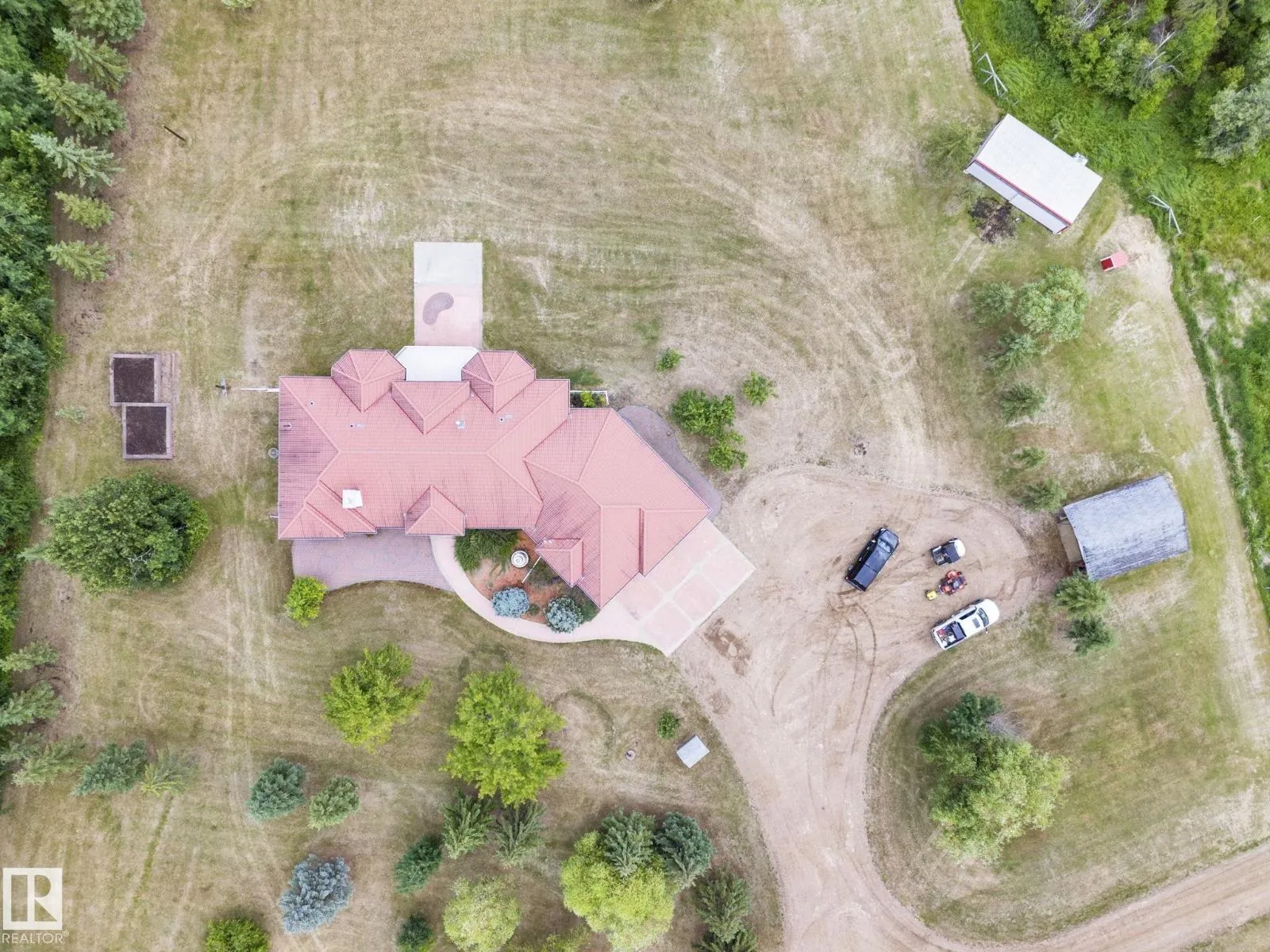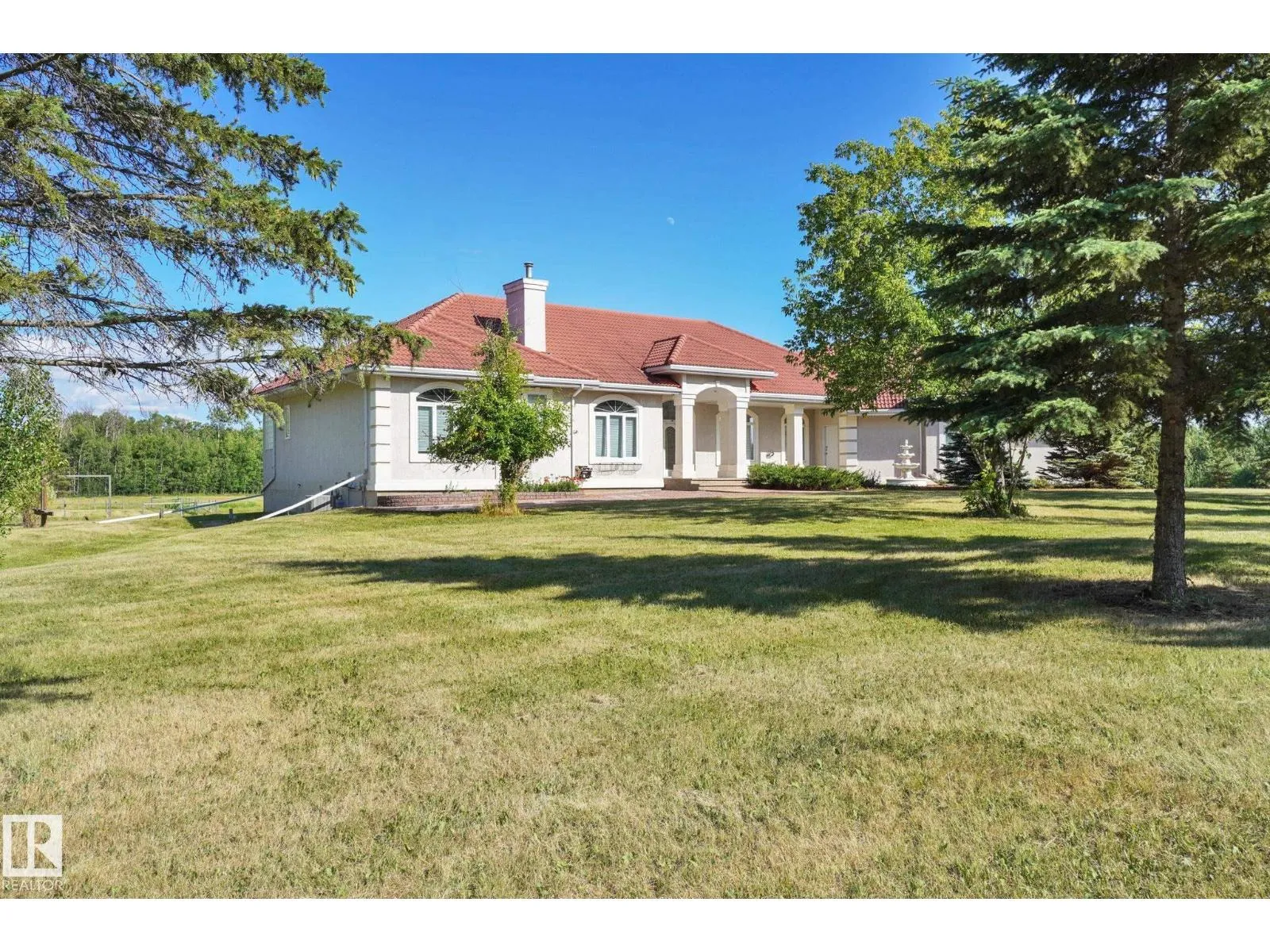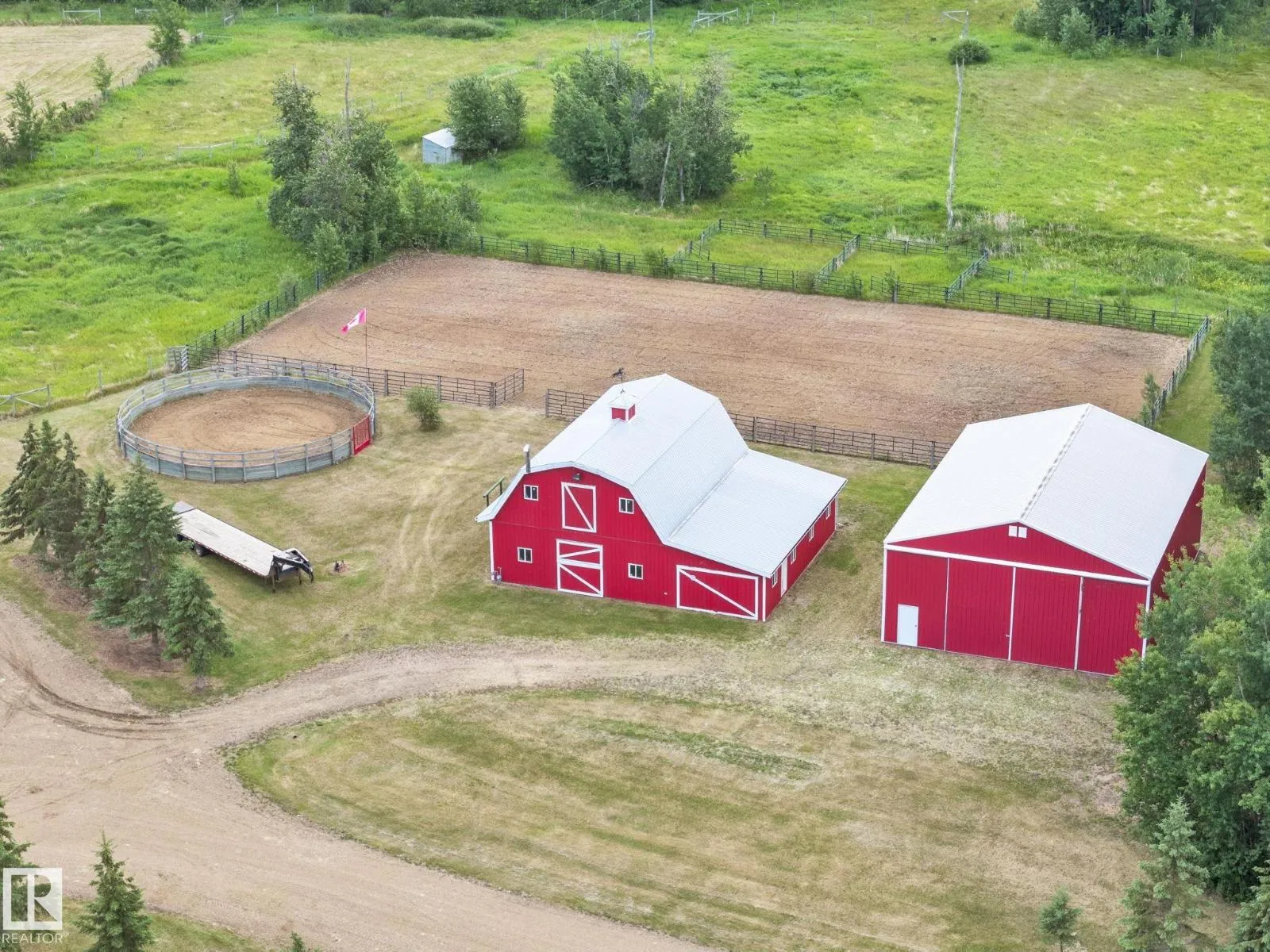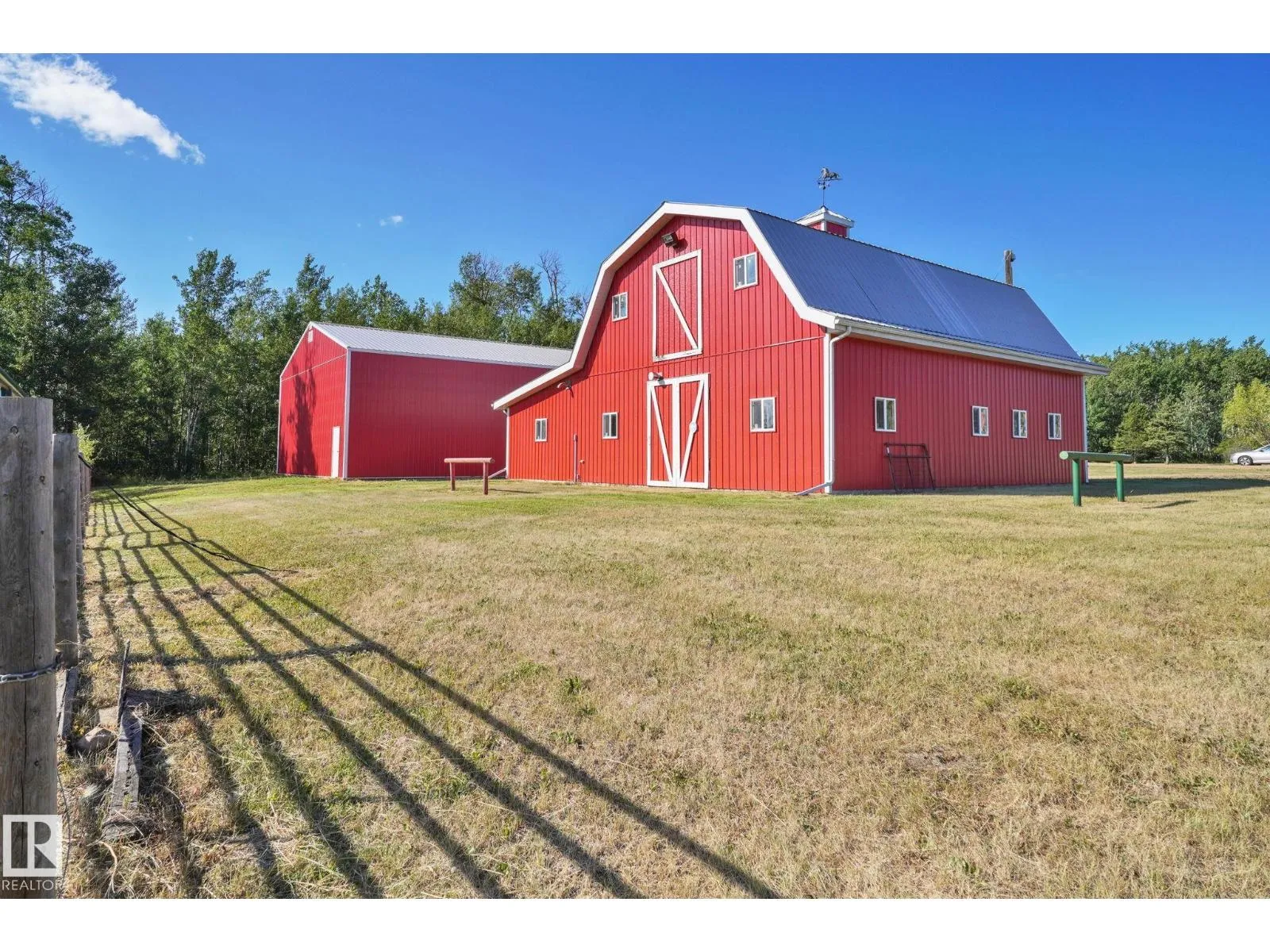 Welcome to this EXCLUSIVE Equestrian Estate! Situated just 2 KM from town, this prime 51-acre LUXURY property is in a league of it's own! A PRIVATE Spruce-lined driveway welcomes you in. Featuring a 12-acre HAY FIELD, trail system, 100 x 200 outdoor RIDING ARENA, round pen, corrals, watering bowls, & hydrants. OUTBUILDINGS include a HEATED BARN w/2 stalls, tack room, & full loft, plus a 42x56 METAL CLAD SHOP & 2 sheds. The CUSTOM HOME offers 5244 sq ft of living space, TRIPLE HEATED GARAGE w/ cold room, a GRAND ENTRANCE opens to a living room w/3-sided FIREPLACE. Cook in the CHEF'S ISLAND KITCHEN w/ GRANITE counters, SS appliances, & large pantry. The main floor boasts 8-ft doors, a Primary w/ a SPA like ensuite, plus 2 more bdrms w/ 1.5 baths & main floor laundry. The fully finished WALK-OUT basement, incl a GAMES ROOM, 2nd KITCHEN, 2 bedrooms, & full bath. Town H2O & sewer at property line. Walk to golf, boat launch, or Sir Winston Churchill Park. Class w/ Distinction, see it you'll LOVE this HOME! (id:27476)