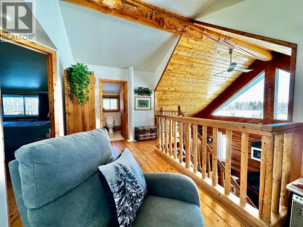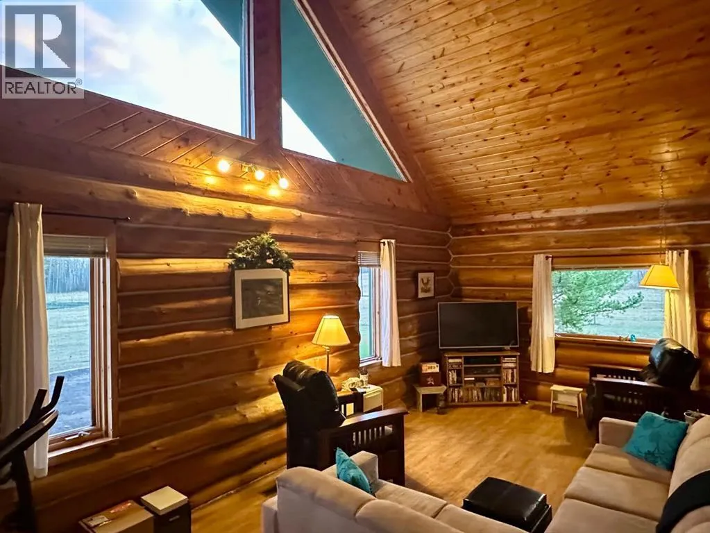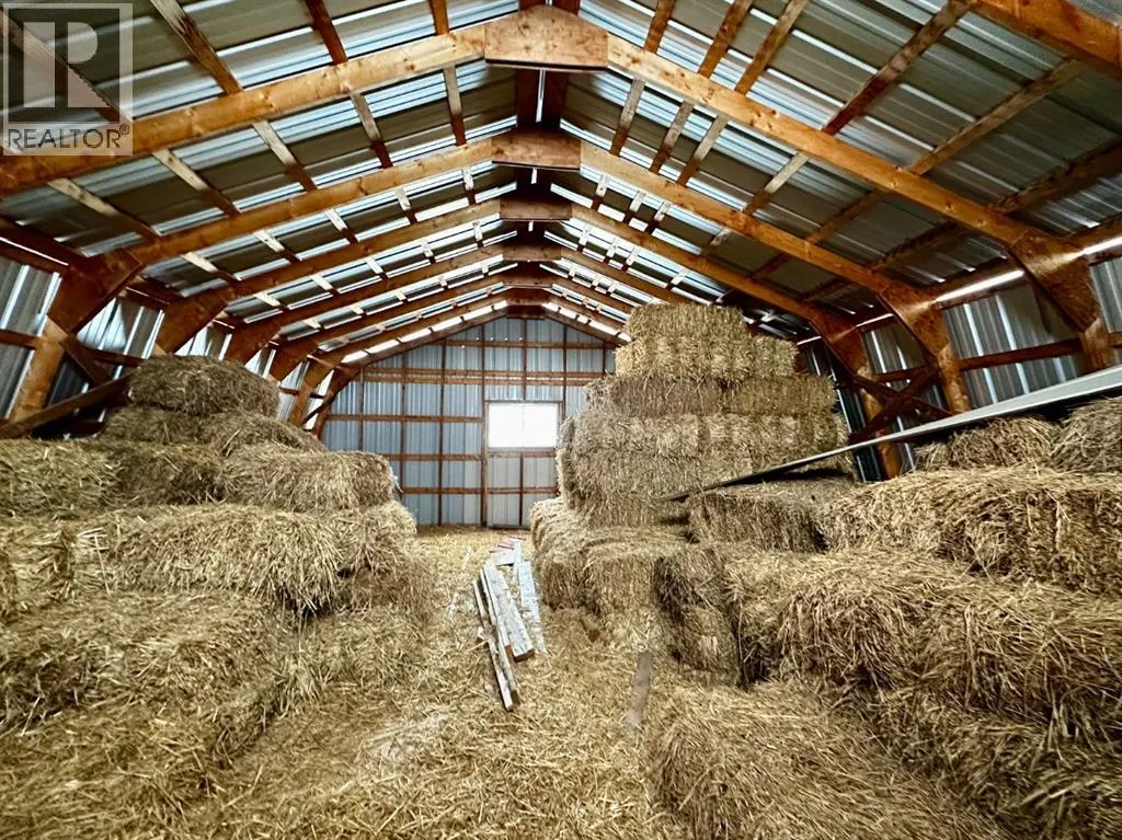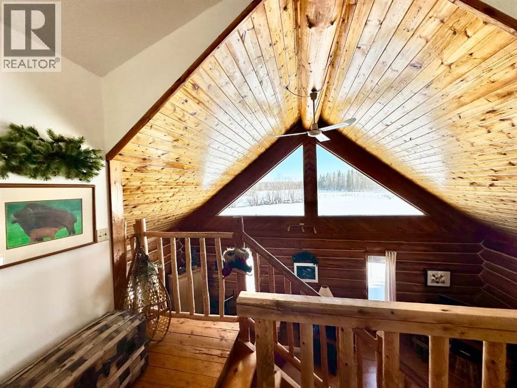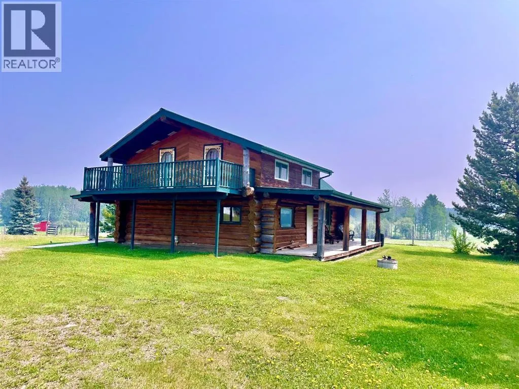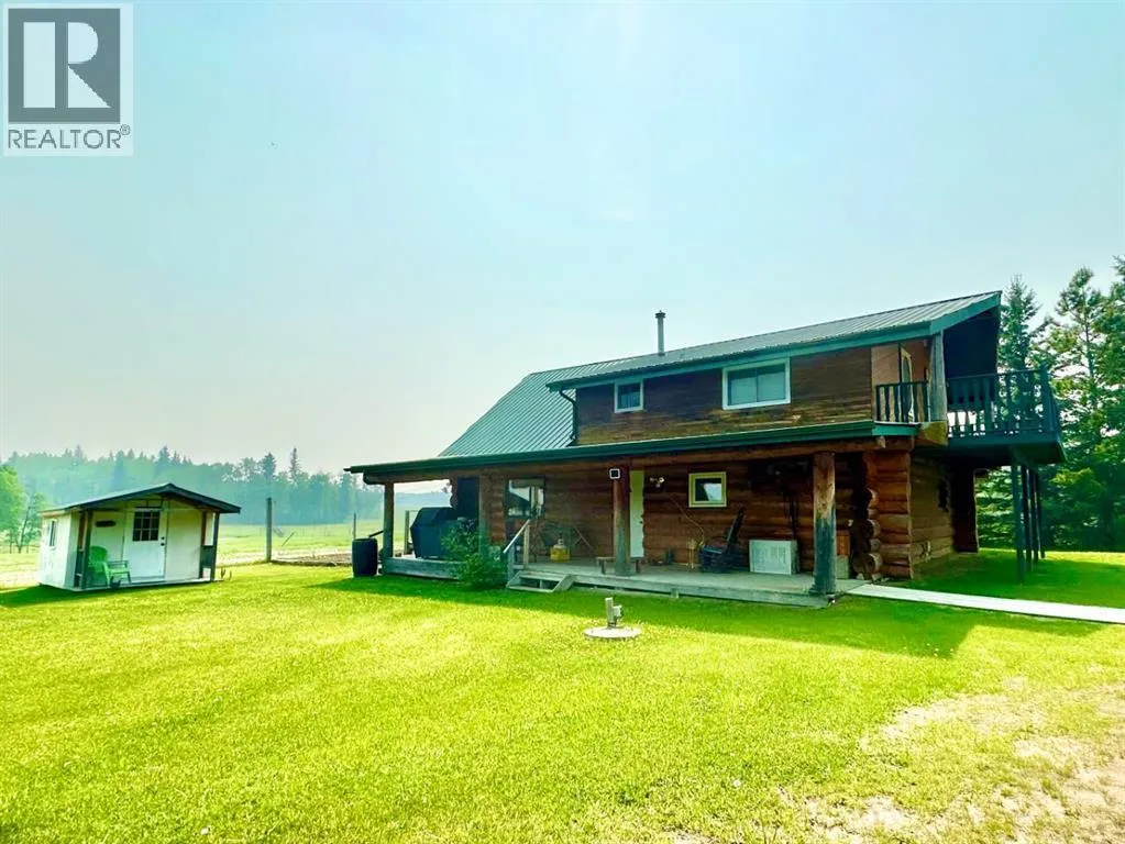 Dreaming of owning your own farm in a peaceful, scenic setting? This turnkey 2-bedroom, well-maintained 2-storey log home sits on 320 acres just minutes from town, conveniently located between Lac La Biche and Plamondon. With only 2 kilometres of gravel off the paved highway, this beautiful and secluded homestead offers both privacy and accessibility.Historically used for raising buffalo, the land offers incredible potential for livestock, crop production, tame hay, gardening, recreational use, or future subdivision. The property includes a well that was previously connected to a watering bowl, along with three dugouts that can supply water for animals and the yard. There is also a creek that wanders through both quarters. The home is serviced by a water cistern, a surface discharge septic system, and is heated by a propane-fueled forced air furnace.Step inside the welcoming log home where the main floor features an open-concept kitchen and dining area (with sunset views), a convenient pantry, a cozy living room, and a 2-piece bathroom.Upstairs is your private retreat, complete with two bedrooms, a comfortable sitting area, and a full bathroom featuring a beautiful clawfoot tub perfect for soaking in at the end of the day. Step out onto the balcony to take in the peaceful views of your land. Wake up to sunrise views from the windows overlooking the pasture.Covered decks on both sides of the home provide the perfect spots to relax, plan your next project, or simply enjoy the sounds of nature.Additional outbuildings include a large equipment shelter, a 27'X32' shop and workshop heated by a boiler, a 24' x28' metal barn with power and loft storage, plus several storage sheds. This is rare opportunity to own a large, versatile piece of paradise in a quiet rural setting. (id:27476)