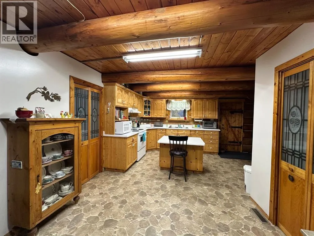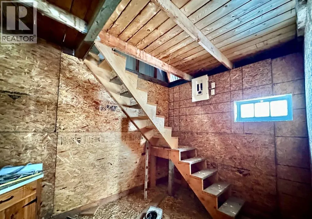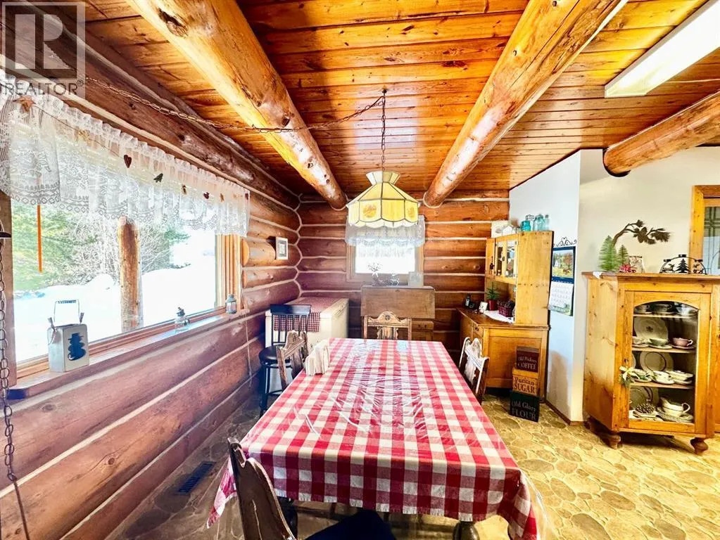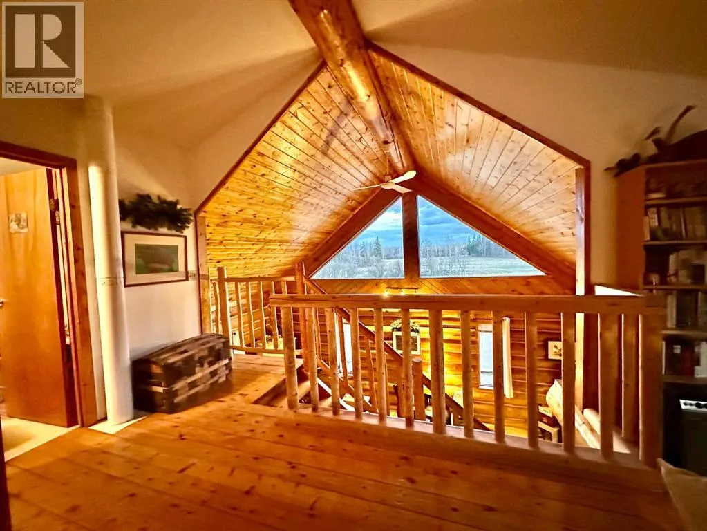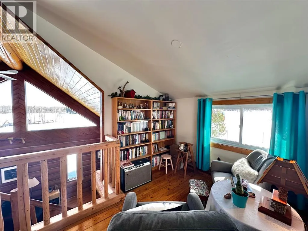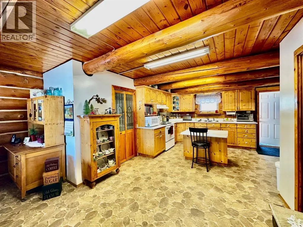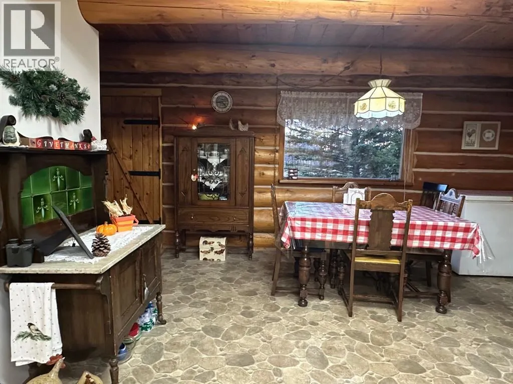 Dreaming of owning your own farm in a peaceful, scenic setting? This turnkey 2-bedroom, well-maintained 2-storey log home sits on 320 acres just minutes from town, conveniently located between Lac La Biche and Plamondon. With only 2 kilometres of gravel off the paved highway, this beautiful and secluded homestead offers both privacy and accessibility.Historically used for raising buffalo, the land offers incredible potential for livestock, crop production, tame hay, gardening, recreational use, or future subdivision. The property includes a well that was previously connected to a watering bowl, along with three dugouts that can supply water for animals and the yard. There is also a creek that wanders through both quarters. The home is serviced by a water cistern, a surface discharge septic system, and is heated by a propane-fueled forced air furnace.Step inside the welcoming log home where the main floor features an open-concept kitchen and dining area (with sunset views), a convenient pantry, a cozy living room, and a 2-piece bathroom.Upstairs is your private retreat, complete with two bedrooms, a comfortable sitting area, and a full bathroom featuring a beautiful clawfoot tub perfect for soaking in at the end of the day. Step out onto the balcony to take in the peaceful views of your land. Wake up to sunrise views from the windows overlooking the pasture.Covered decks on both sides of the home provide the perfect spots to relax, plan your next project, or simply enjoy the sounds of nature.Additional outbuildings include a large equipment shelter, a 27'X32' shop and workshop heated by a boiler, a 24' x28' metal barn with power and loft storage, plus several storage sheds. This is rare opportunity to own a large, versatile piece of paradise in a quiet rural setting. (id:27476)