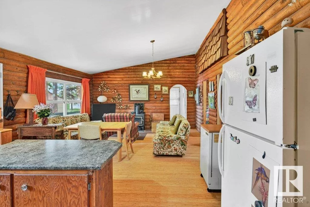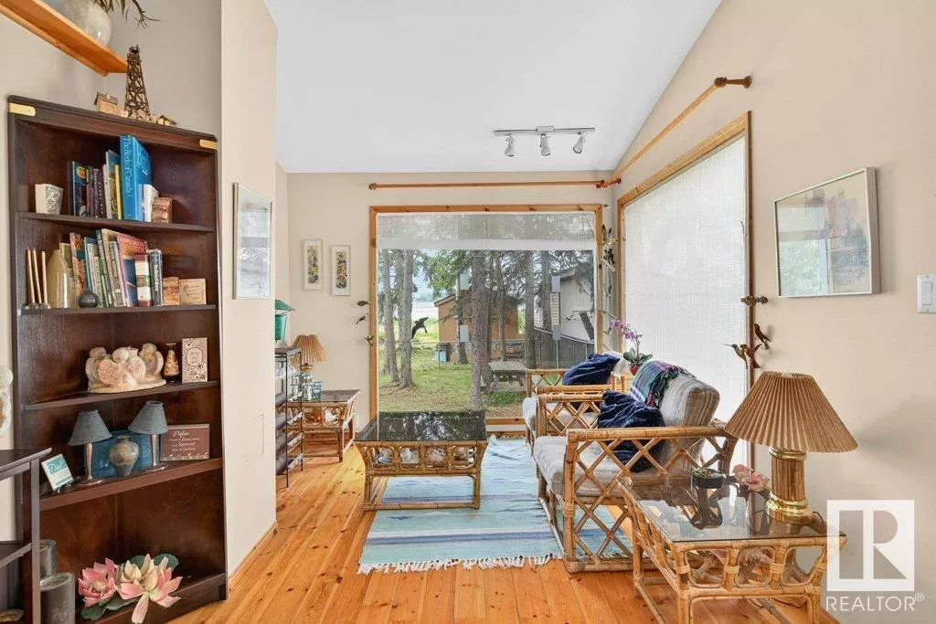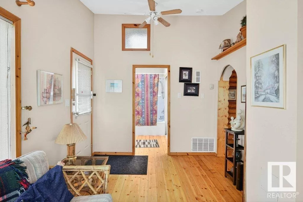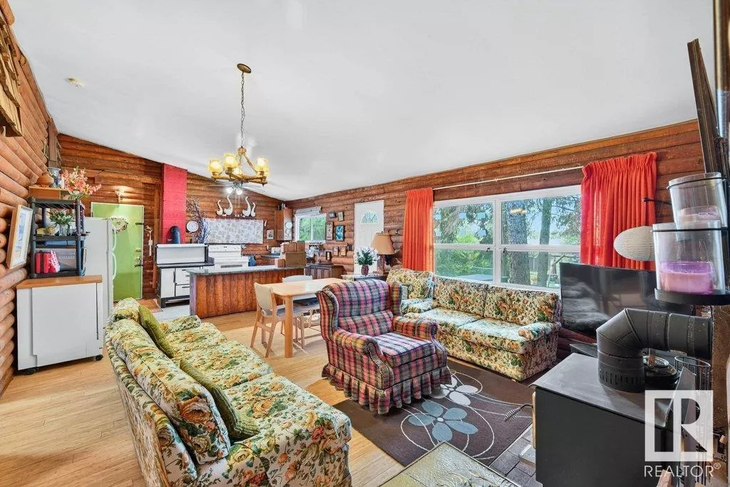 Welcome to this charming lakeside retreat on the serene shores of Sandy Beach. This delightful home offers the perfect blend of comfort and tranquility, with numerous recent upgrades including a new roof and pressure pump (2023), as well as eaves and soffits (2018). Inside, you'll find bamboo and hardwood flooring, a versatile flex roomâpreviously used as a second bedroomâadding extra functionality to the layout, and a wood-burning fireplace/heater that brings warmth and coziness to those relaxing nights by the fire. Start your day with coffee while listening to nature surrounded by mature trees. In the evening unwind as you roast marshmallows over the fire pit watching the sunset over the water. This property truly gives you the outdoor Alberta lifestyle. (id:27476)