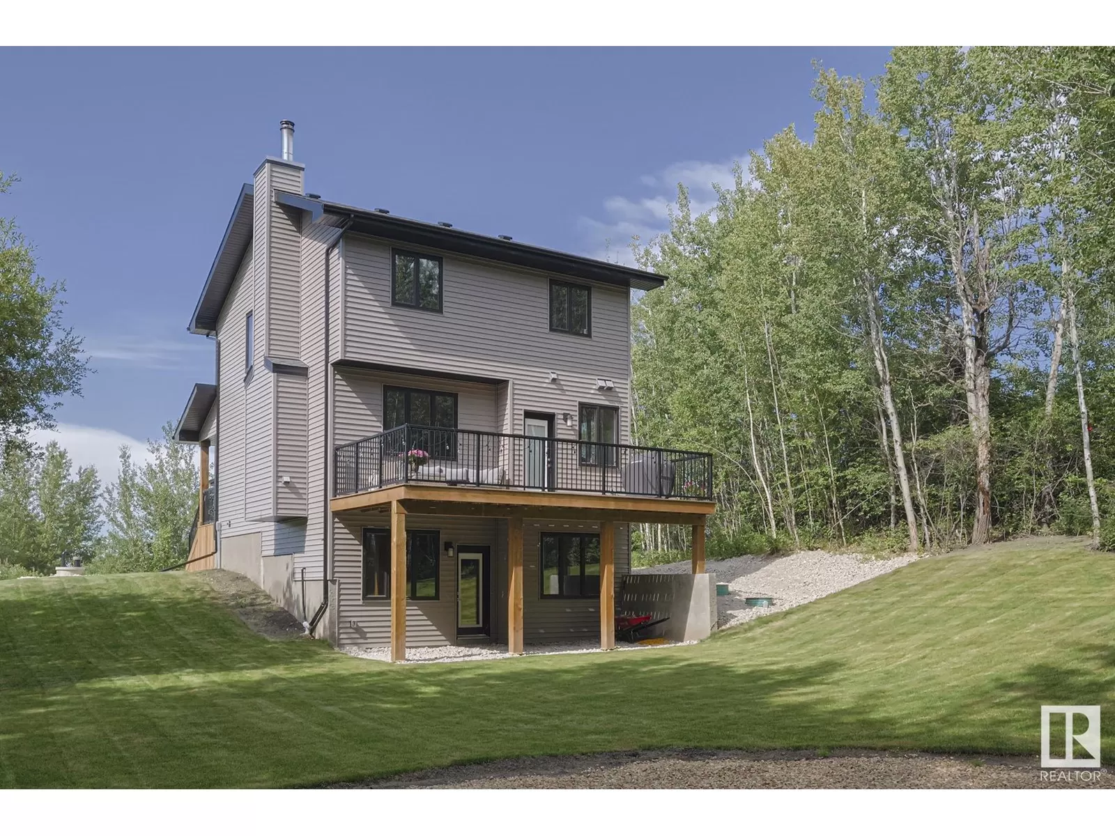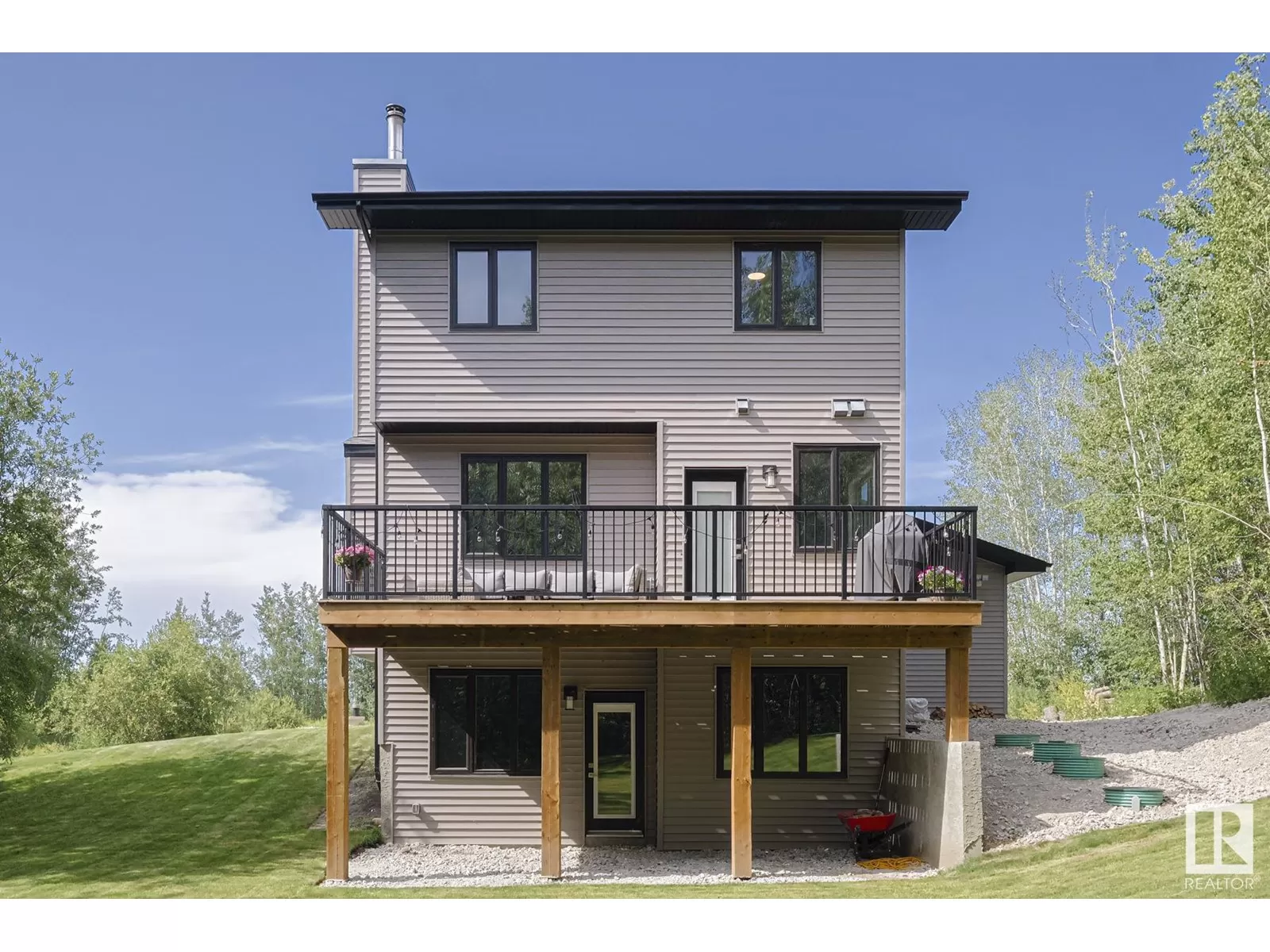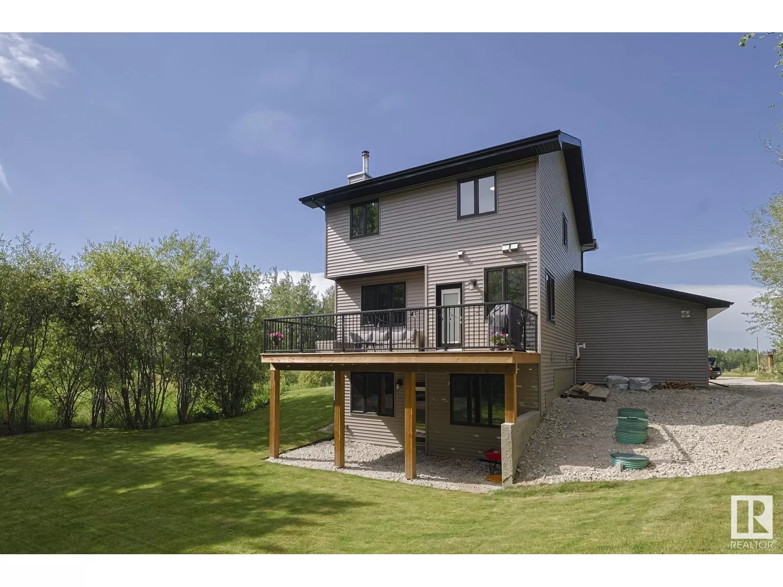 BEST OF BOTH WORLDS! NEW HOUSE ON BEAUTIFUL TREED ACREAGE! Rare opportunity to own this incredibly upgraded home on 3.7 acres in Bilby Heights. Built by highly acclaimed Rococo Homes, this house has an endless list of upgrades: 9' ceilings, stylish kitchen w/ upgraded ceiling height cabinets (real wood not MDF), custom herringbone backsplash, gas stove, quartz countertops throughout the entire house, walk through pantry. Keep warm with the stunning river rock finished wood burning fireplace ($16.5k). Upstairs, 3 spacious bdrms w/plush carpet, convenience of upper floor laundry, all tile showers. Primary has french tub, dual sinks, walk-in closest w/ clothes tower. Walkout 9' ceiling basement. Oversized triple car garage w/ H&C water, floor drains. Energy efficient (triple pane windows, 2x6 construction, tankless HW, HE furnace, smart home w/ LED dimmable lights. Extra large deck on screw piles, poured concrete driveway / extra wide entry walk. Upgraded septic system/water cistern ($50k). Don't miss out!! (id:27476)