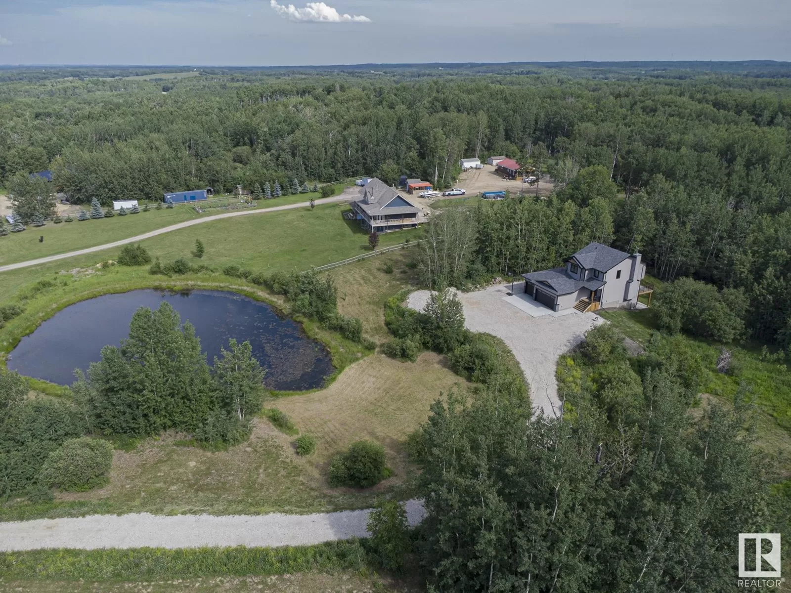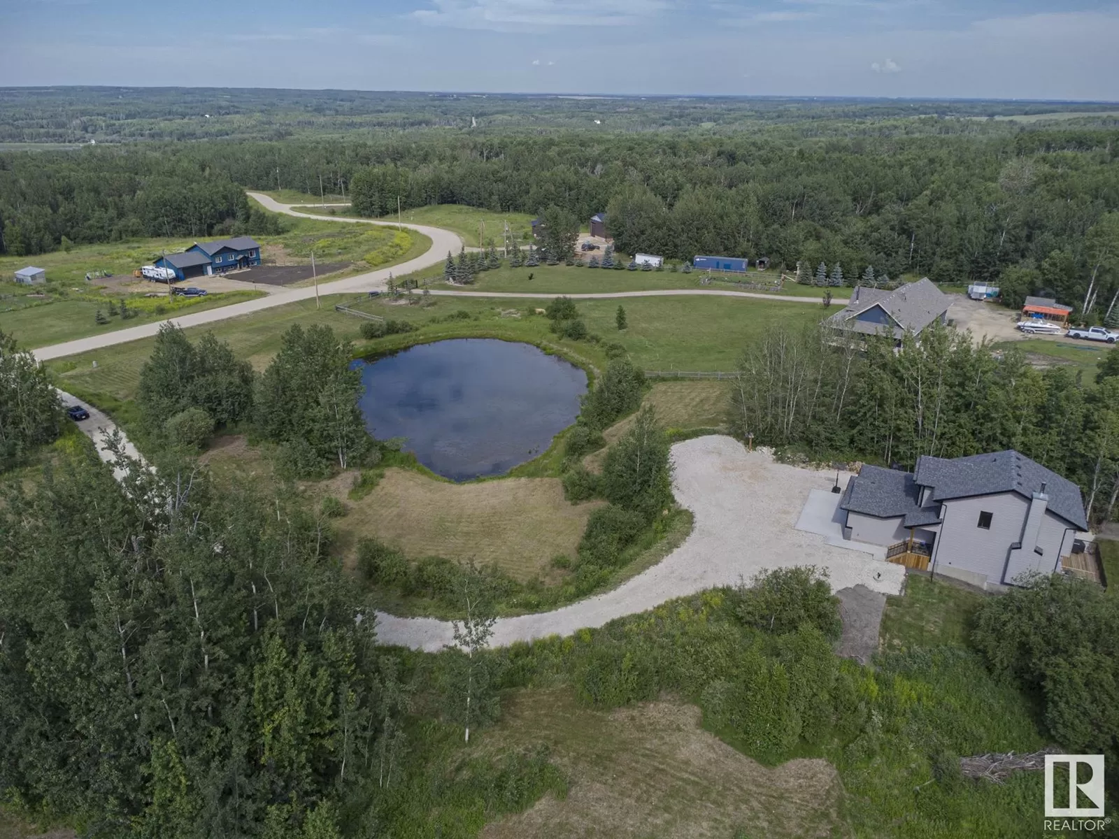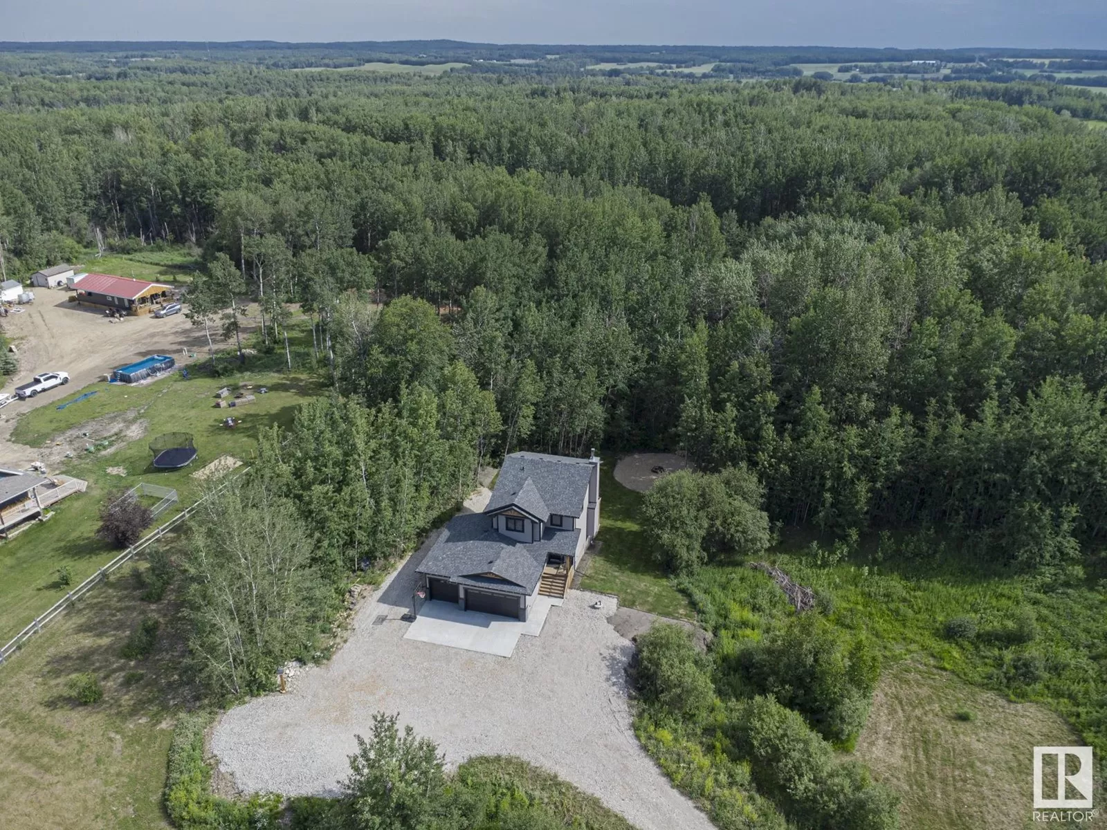 BEST OF BOTH WORLDS! NEW HOUSE ON BEAUTIFUL TREED ACREAGE! Rare opportunity to own this incredibly upgraded home on 3.7 acres in Bilby Heights. Built by highly acclaimed Rococo Homes, this house has an endless list of upgrades: 9' ceilings, stylish kitchen w/ upgraded ceiling height cabinets (real wood not MDF), custom herringbone backsplash, gas stove, quartz countertops throughout the entire house, walk through pantry. Keep warm with the stunning river rock finished wood burning fireplace ($16.5k). Upstairs, 3 spacious bdrms w/plush carpet, convenience of upper floor laundry, all tile showers. Primary has french tub, dual sinks, walk-in closest w/ clothes tower. Walkout 9' ceiling basement. Oversized triple car garage w/ H&C water, floor drains. Energy efficient (triple pane windows, 2x6 construction, tankless HW, HE furnace, smart home w/ LED dimmable lights. Extra large deck on screw piles, poured concrete driveway / extra wide entry walk. Upgraded septic system/water cistern ($50k). Don't miss out!! (id:27476)