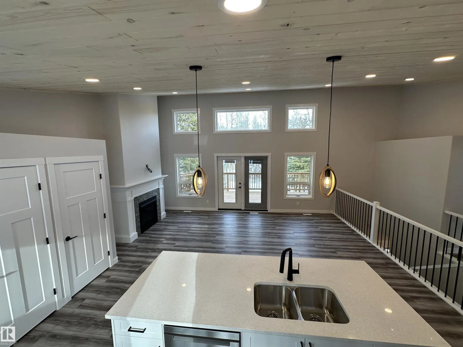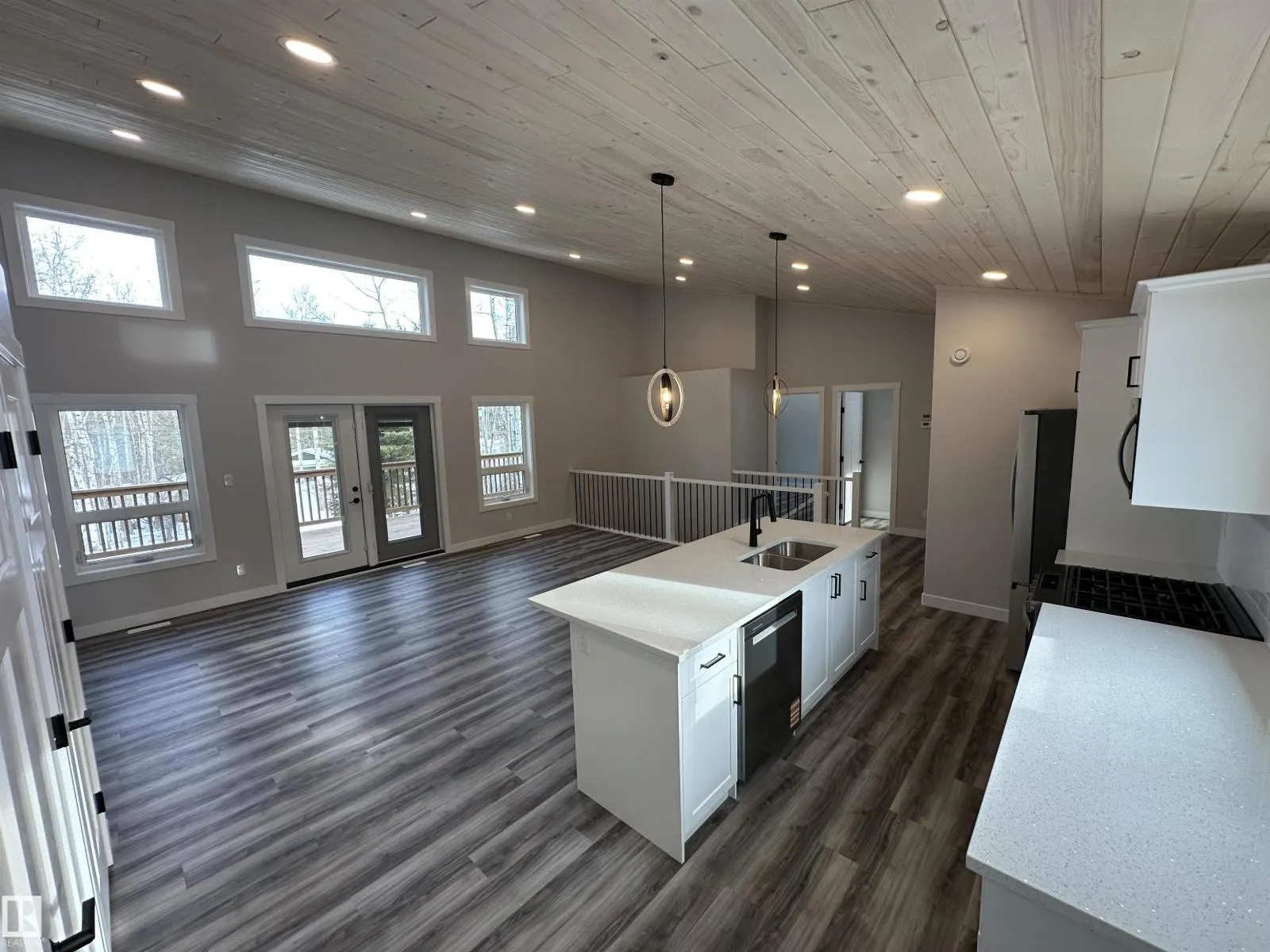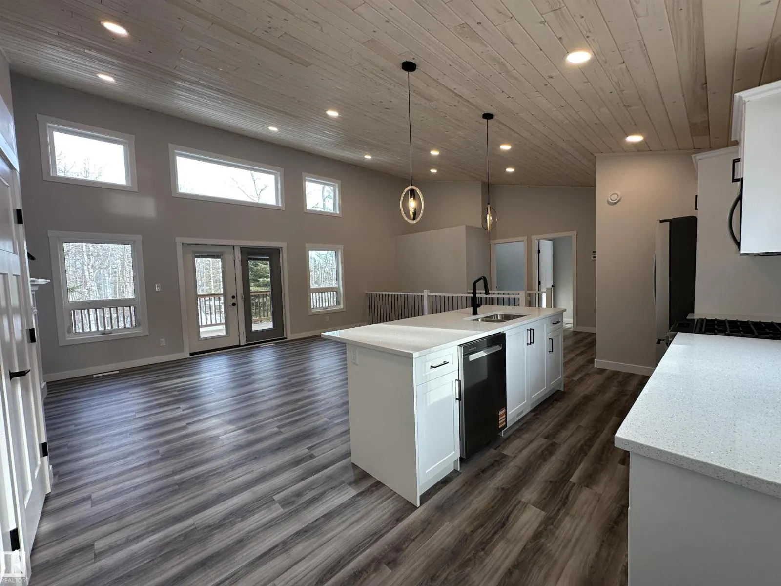 WOW THIS PROPERTY IS AMAZING! Wide open design, soaring 14' vaulted ceilings throughout the entire main floor, big windows w/loads of natural light, 8' quartz topped peninsula island, shaker style kitchen cabinets, 4 pce stainless steel appliance pkg w/gas range, walk in pantry, luxury vinyl plank flooring, fireplace, 2 bedrooms up & 4 pce main bath. Stepping out of the vaulted great room, you're immersed in the peaceful sights and sounds of nature off your huge wrap around deck w/the kitchen opening to the back deck & your own private treed oasis. The finished walkout basement has in-floor heat, 9' ceilings, primary suite w/ 4 pce ensuite, laundry/utility rm w/washer&dryer and a 21x24 drywalled, taped & painted garage. 100 AMP power service, drilled well & a 2800 gallon septic holding tank. Tucked on a private, pie shaped lot surrounded by mature trees. Close to the shores of Isle Lake, the beach, boat launch & only 45 min west of Edmonton. Price includes GST, with rebate assigned back to the builder. (id:27476)