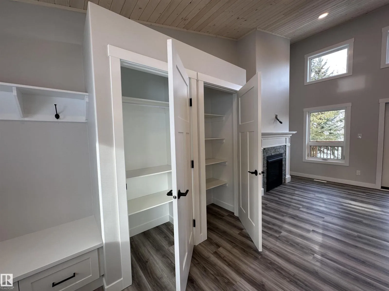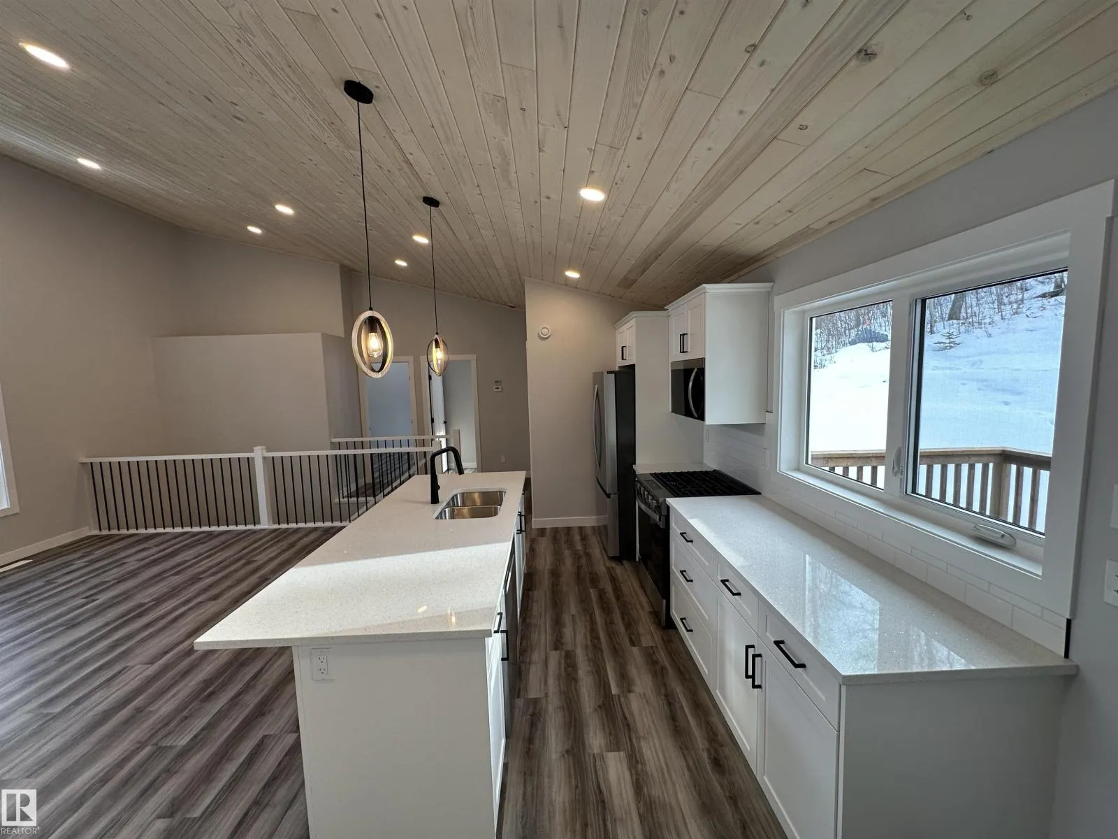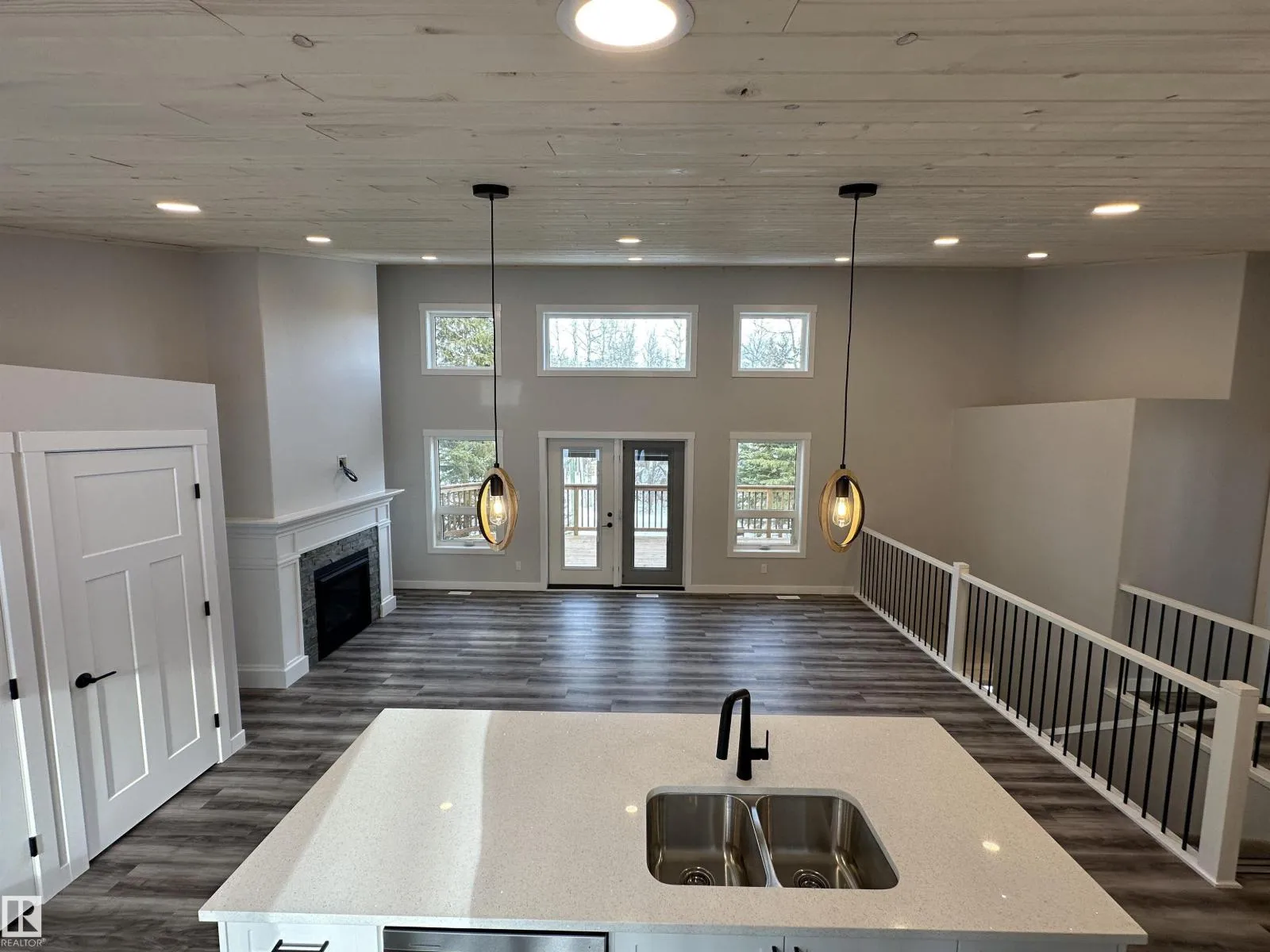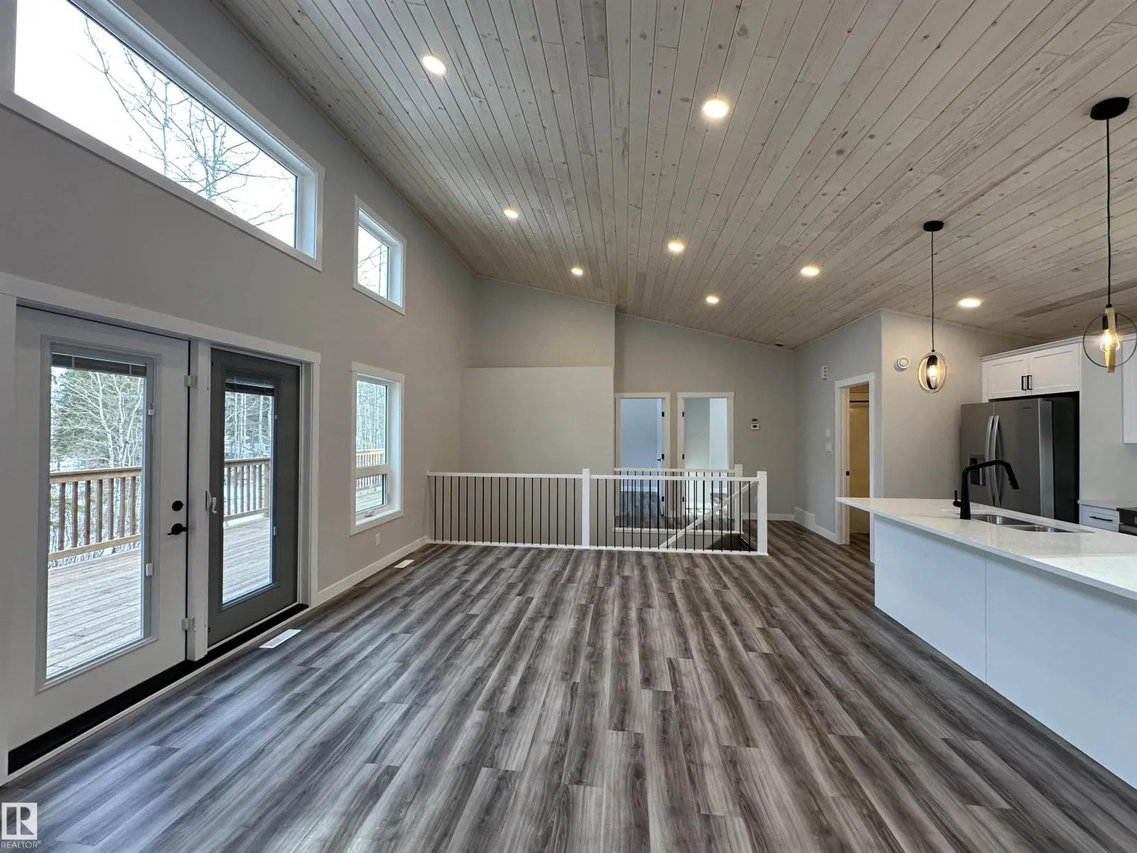 WOW THIS PROPERTY IS AMAZING! Wide open design, soaring 14' vaulted ceilings throughout the entire main floor, big windows w/loads of natural light, 8' quartz topped peninsula island, shaker style kitchen cabinets, 4 pce stainless steel appliance pkg w/gas range, walk in pantry, luxury vinyl plank flooring, fireplace, 2 bedrooms up & 4 pce main bath. Stepping out of the vaulted great room, you're immersed in the peaceful sights and sounds of nature off your huge wrap around deck w/the kitchen opening to the back deck & your own private treed oasis. The finished walkout basement has in-floor heat, 9' ceilings, primary suite w/ 4 pce ensuite, laundry/utility rm w/washer&dryer and a 21x24 drywalled, taped & painted garage. 100 AMP power service, drilled well & a 2800 gallon septic holding tank. Tucked on a private, pie shaped lot surrounded by mature trees. Close to the shores of Isle Lake, the beach, boat launch & only 45 min west of Edmonton. Price includes GST, with rebate assigned back to the builder. (id:27476)