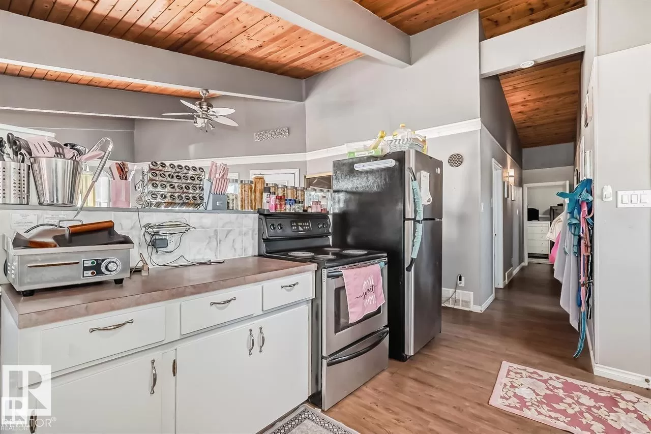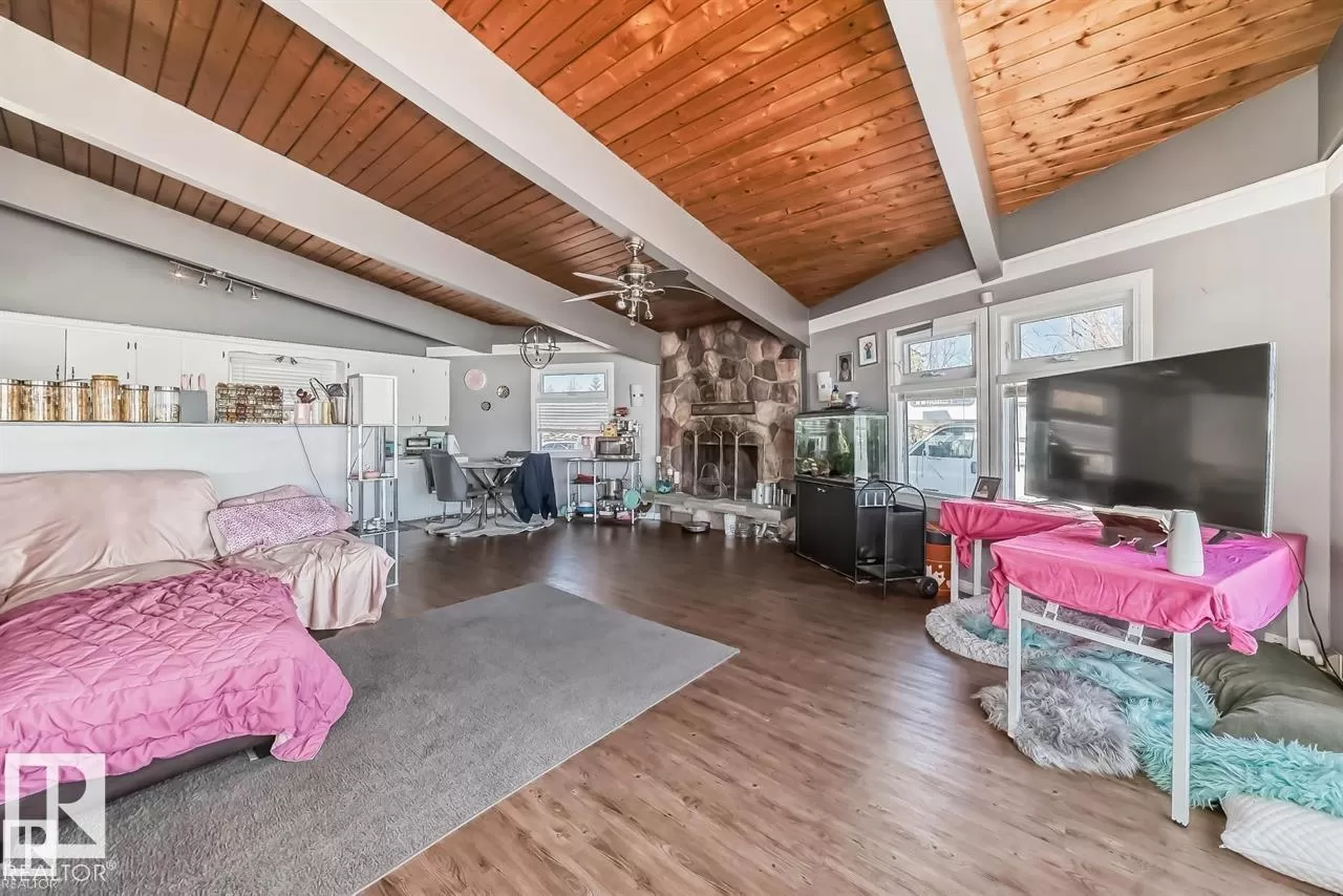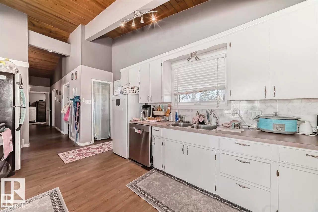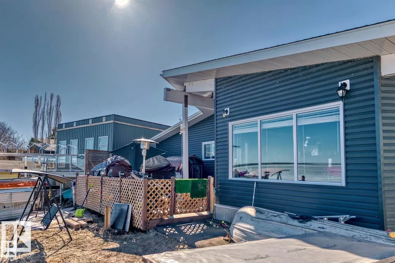 UPGRADEDED CEDAR VAULTED CEILING 1200 SQ/Ft 2 BEDROOM BUNGALOW YOU CAN ENJOY YEAR ROUND! AMAZING WATERFRONT VIEWS. OPEN CONCEPT LIVING ROOM WITH AN AMAZING STONE WALL WOOD BURNING FIREPLACE, DINING ROOM, WITH PATIO DOORS TO A NEWER DECK. LAMINATE FLOORING THROUGH OUT. 4 PCE BATHROOM WITH JACUZZI TUB! FENCED YARD, WITH LARGE STORAGE SHED, AND PLENTY OF PARKING ROOM TO PARK AN RV. UPGRADES INCLUDE NEW WINDOWS, NEW SIDING, NEW METAL ROOF, AND NEW BATHROOM. NEW HOT WATER SYSTEM. LOCATED AT THE VERY END OF THE QUIET COMMUNITY OF VAL QUENTIN, OFF THE SHORES OF LAC STE ANNE, AND DIRECTLY BESIDE IS MUNICIPAL RESERVE FOR ADDED PRIVACY. THE DOCK IS INCLUDED. AMAZING SUNSETS AND BACK YARD FIRE PITS AWAITS AT YOUR HOME AT THE LAKE! GOLF NEARBY, SCHOOL IS SUPER CLOSE TO GAS STATION, GROCERY STORE, LIBRARY DRUG STORE, BANK, PUB AND MUCH MORE! 40 MINUTES TO WEST EDMONTON, CLOSER TO STONY PLAIN AND SPRUCE GROVE AND SUPER CLOSE TO ONOWAY. YOU WILL LOVE THE SANDY BEACHES AT ALBERTA BEACH!! (id:27476)