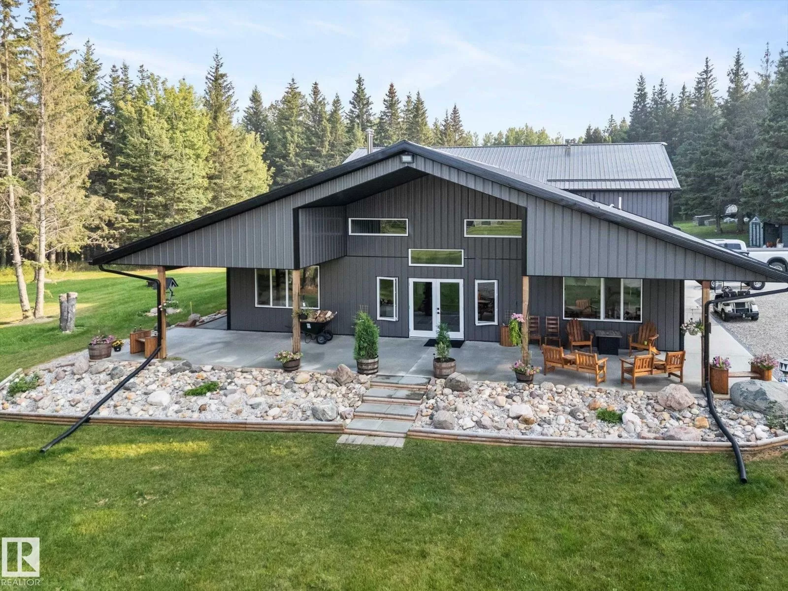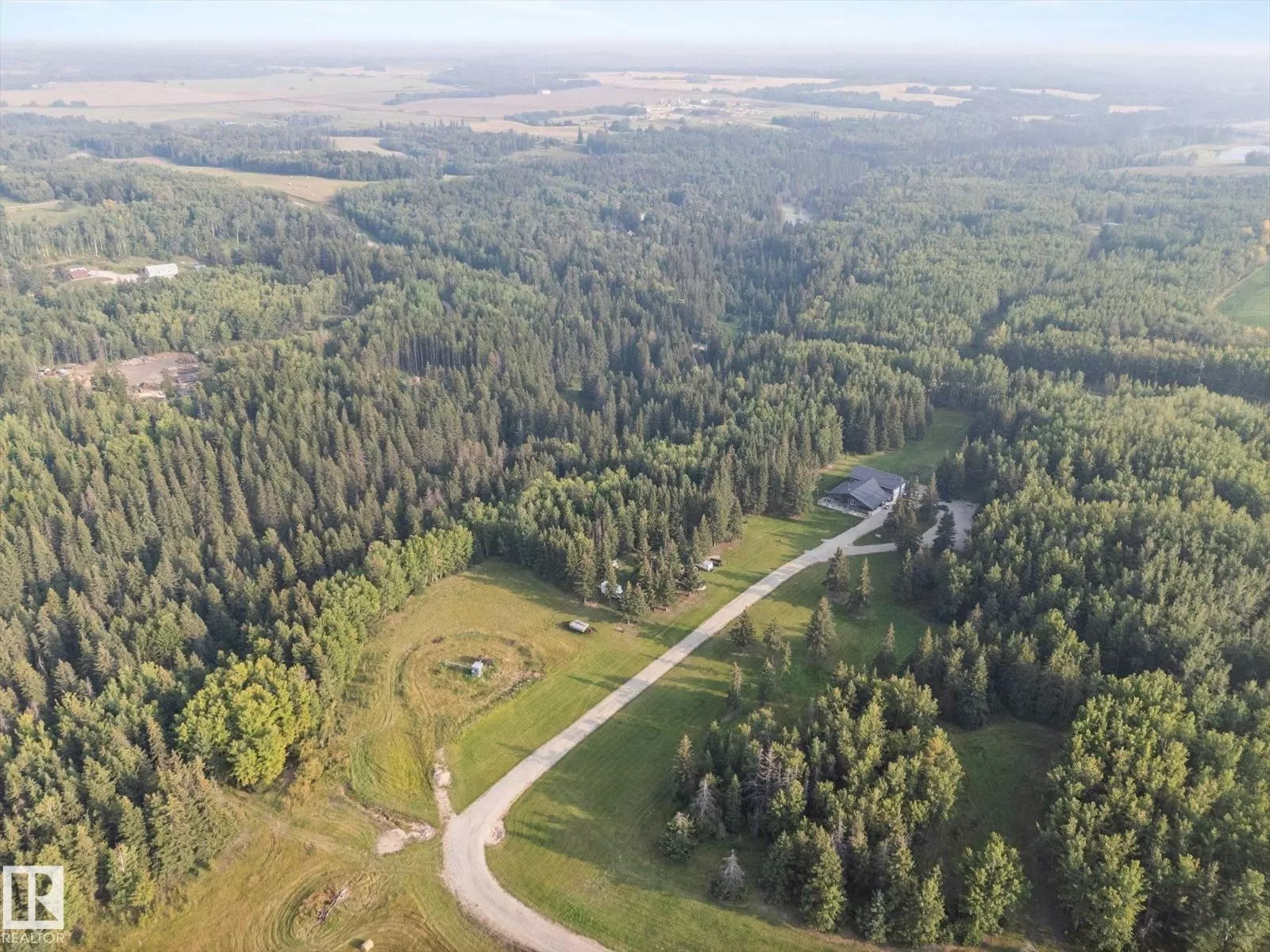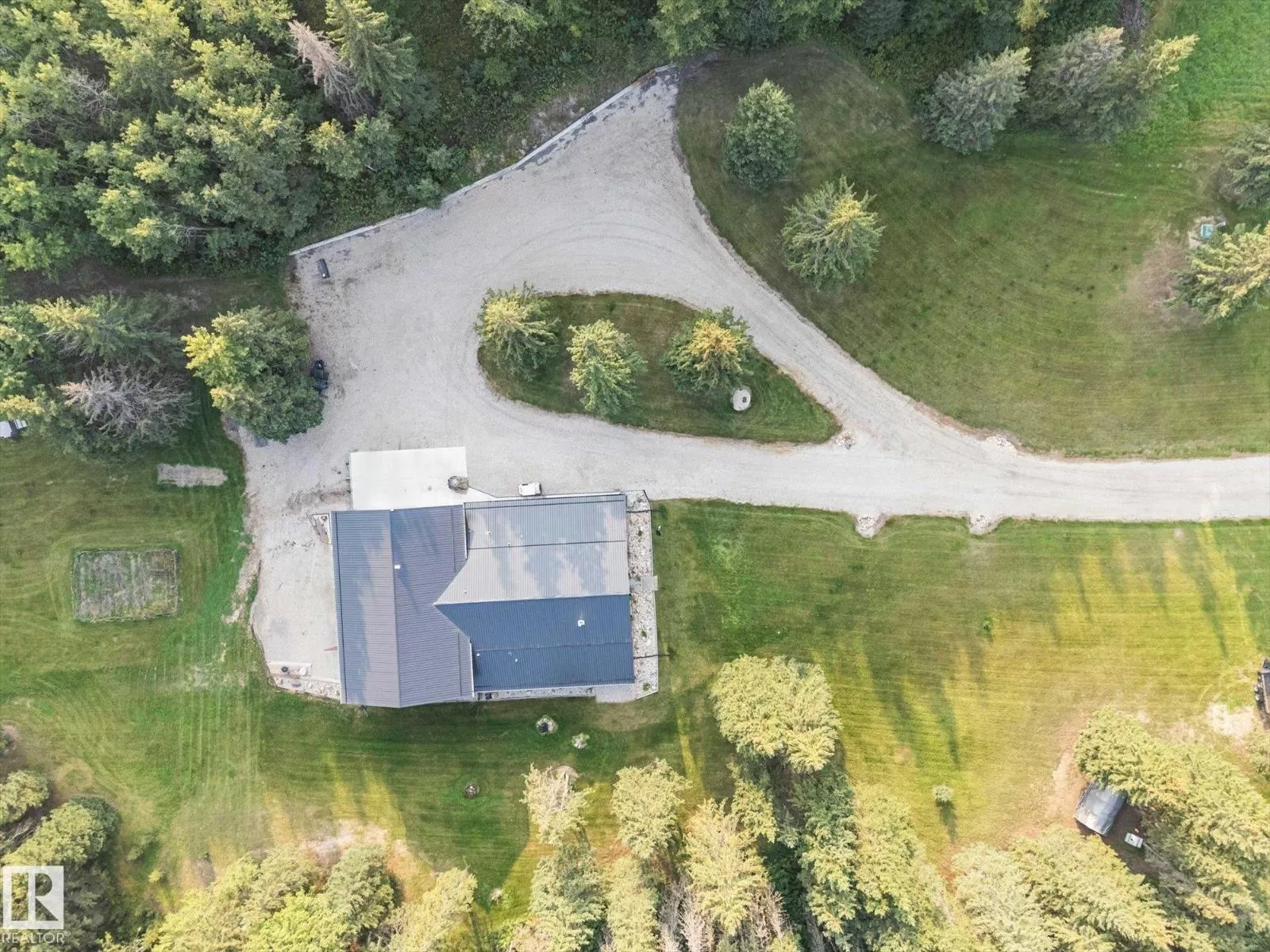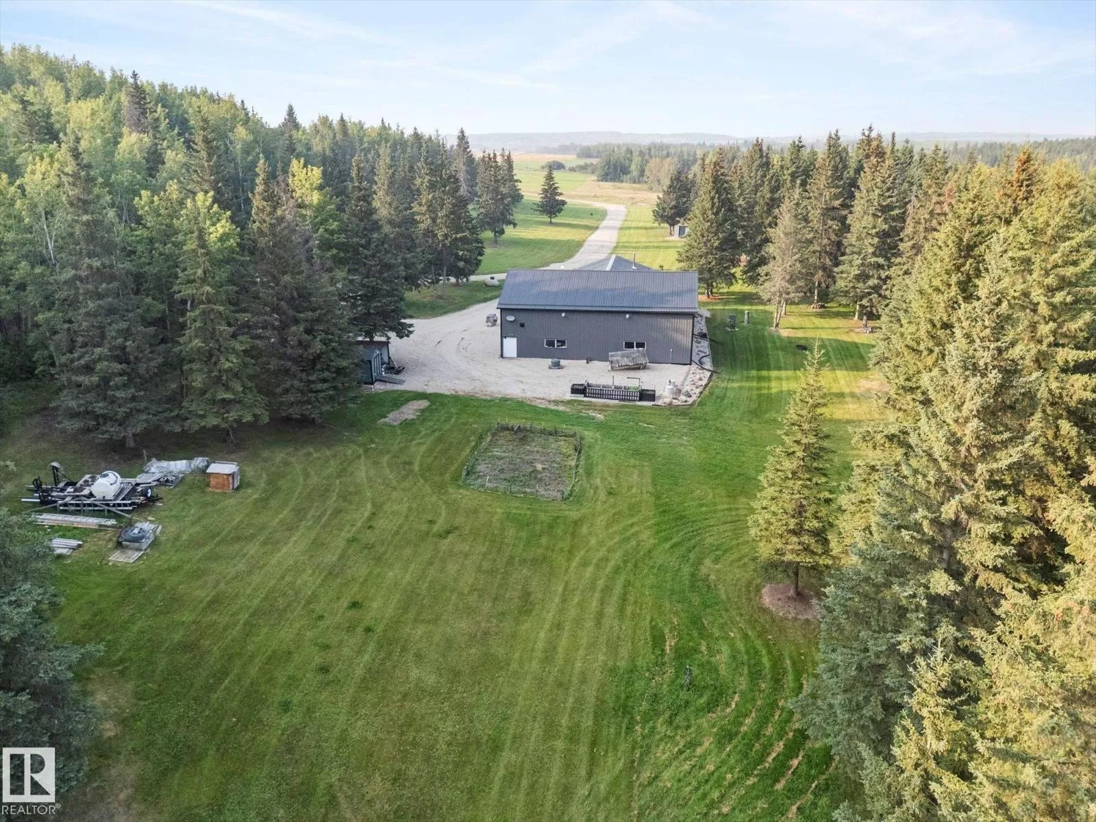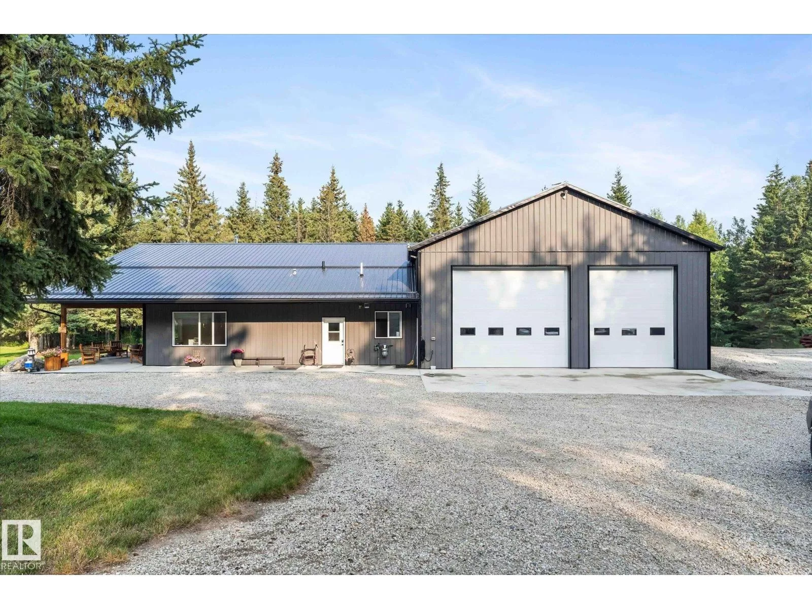 Welcome to this unique property in Lac Ste Anne County, located only 20 minutes to Stony Plain. This property is 39.2 acres of park-like setting with a shop-house nestled down in the trees. The house is a ranch style 2040 sqft bungalow with no basement built on a 6 concrete slab with in-floor heat. Complete with 2 large bedroom including the primary bedroom with 9' ceilings, a large walk in closet & 4p ensuite with huge shower. The kitchen has quartz counter tops, tons of white cabinets, SS appliances & large island great for entertaining. The front room is open concept with 22' vaulted ceiling, large windows & a wood-burning fireplace. 2 more bathrooms compete the home, one with quick access to the attached 40x60 shop with 16' ceilings (2x14' doors), the concrete for the shop pad is 8 thick & has a floor drain. There are 2 radiant heaters in the shop. Outside are 2 seacans, a large garden shed, raised garden beds & in-ground garden area. There is a wrap a round deck around 3 of the sides of the house. (id:27476)