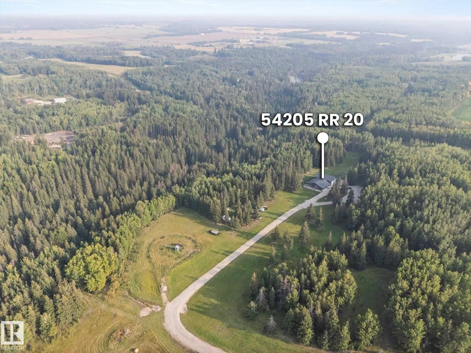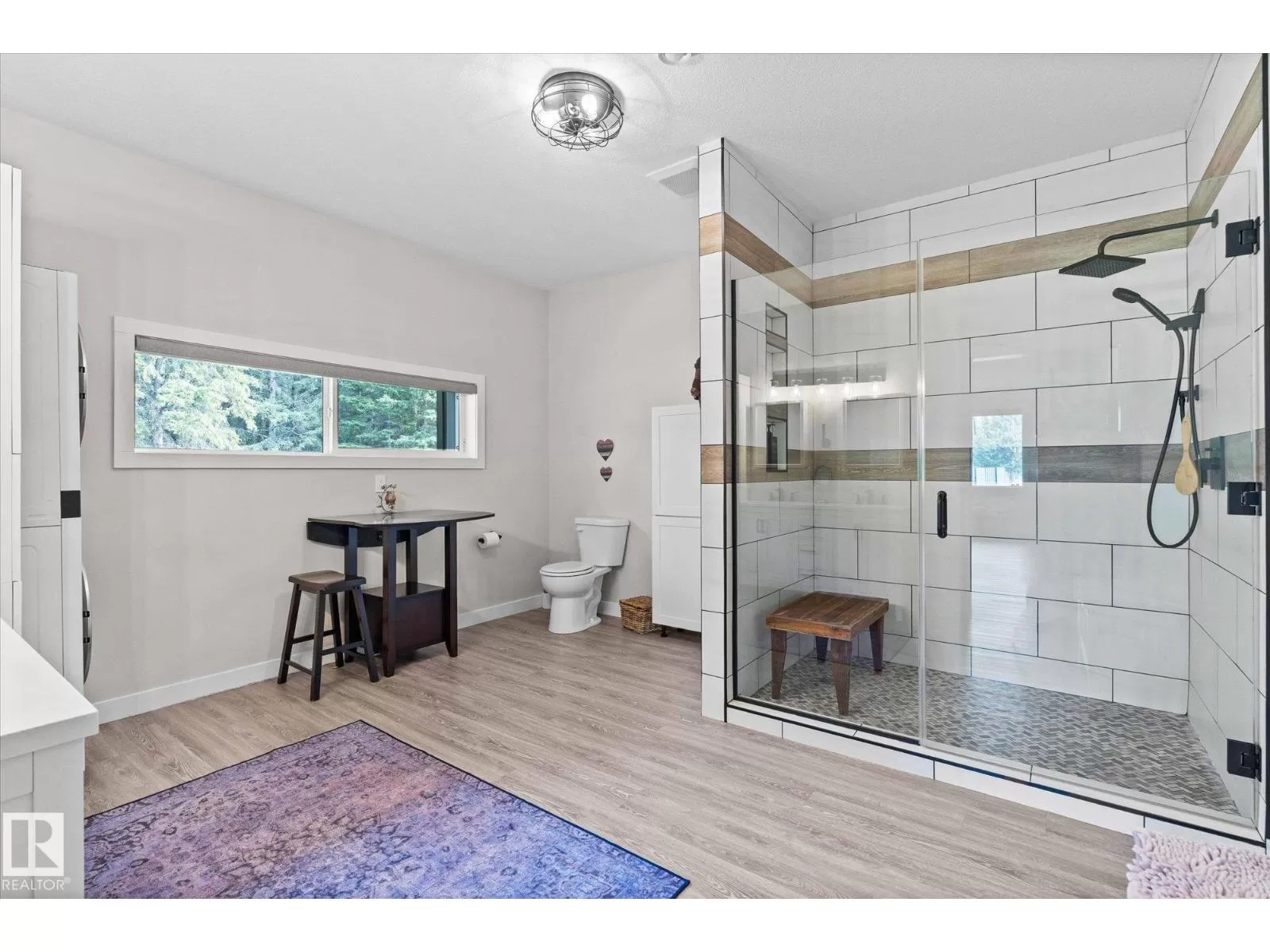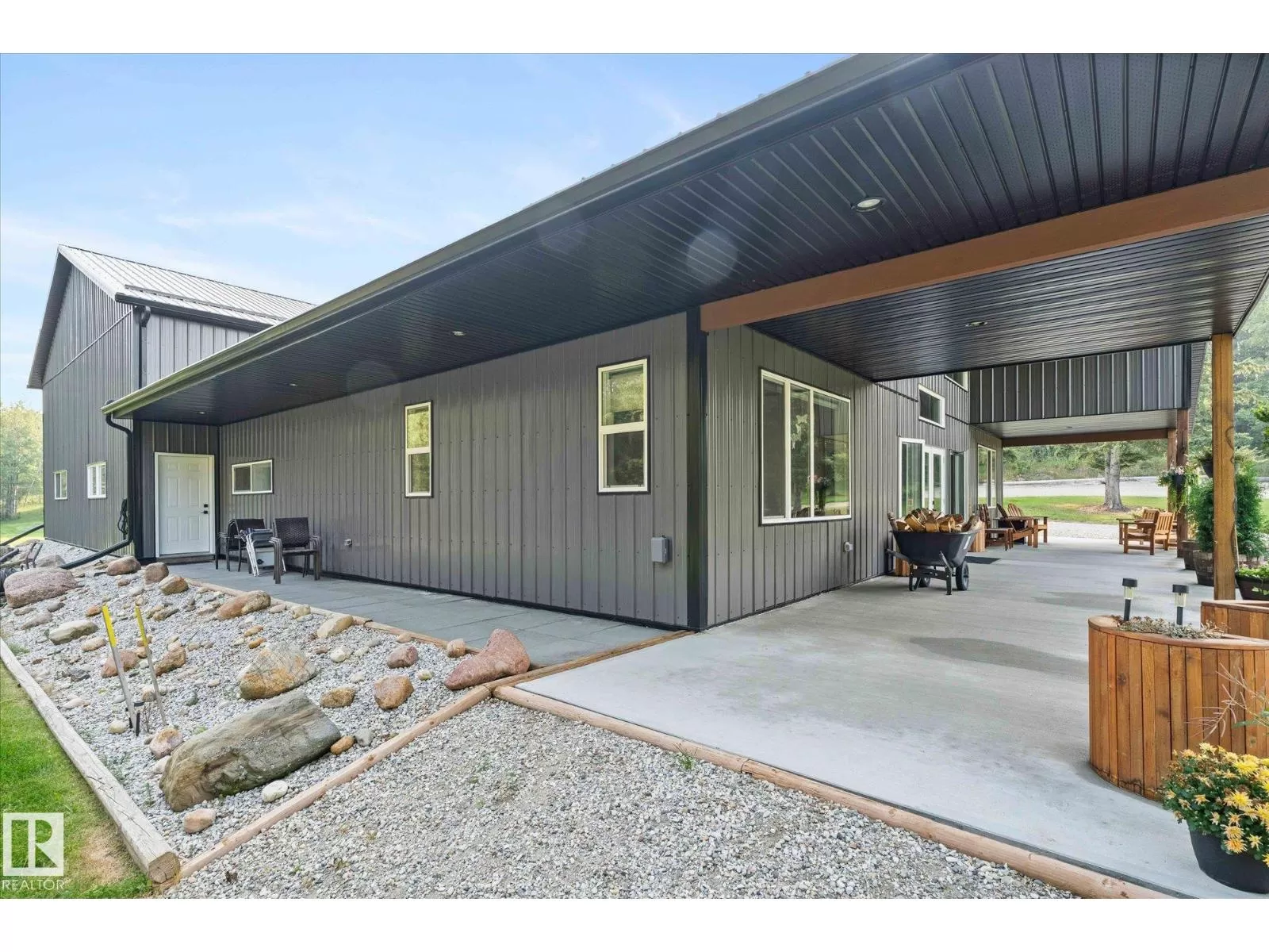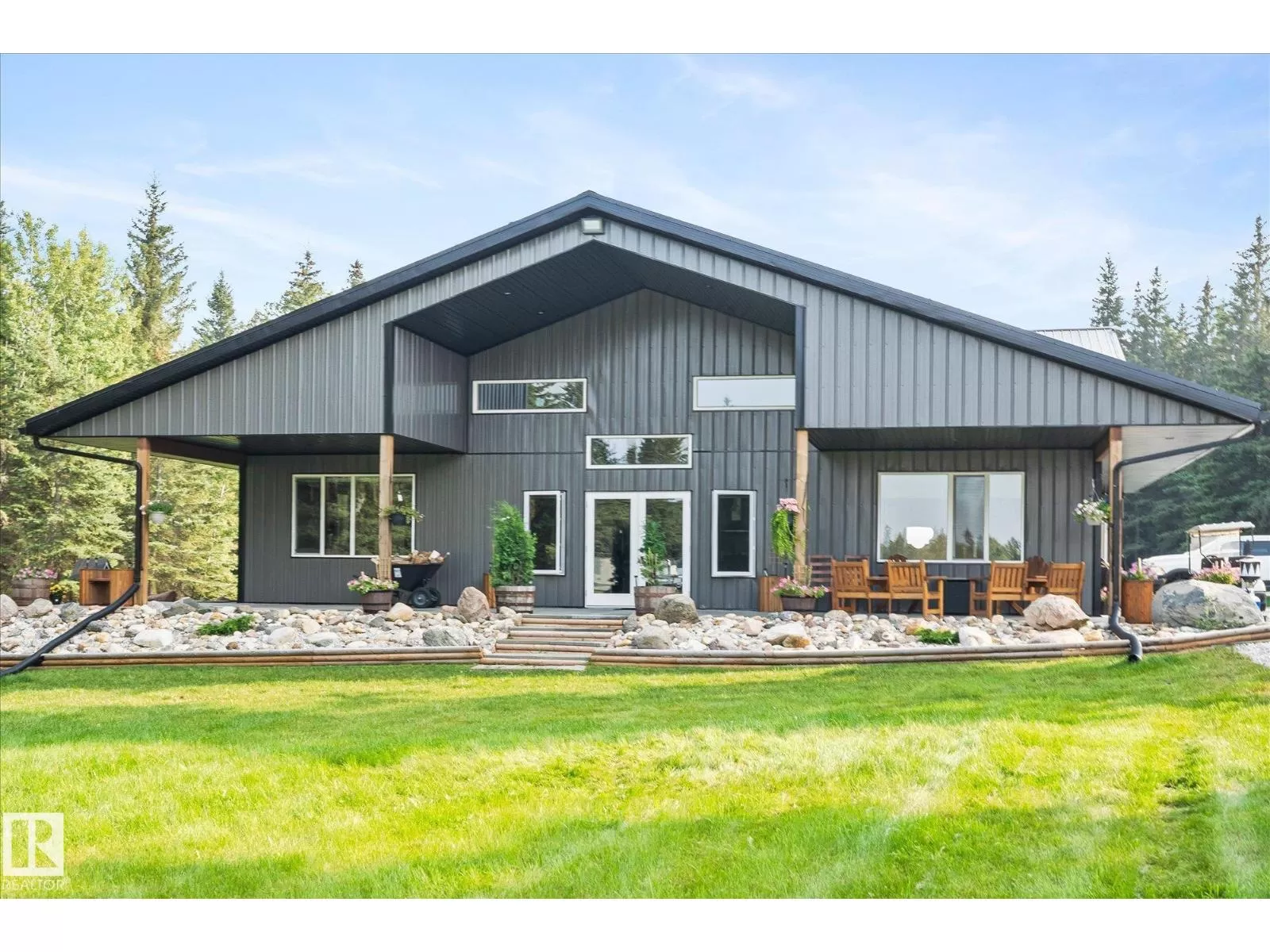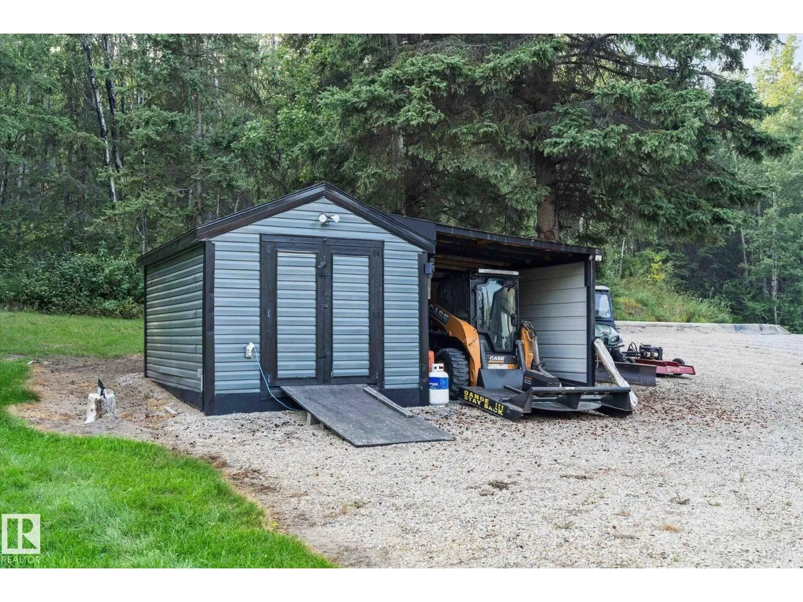 Welcome to this unique property in Lac Ste Anne County, located only 20 minutes to Stony Plain. This property is 39.2 acres of park-like setting with a shop-house nestled down in the trees. The house is a ranch style 2040 sqft bungalow with no basement built on a 6 concrete slab with in-floor heat. Complete with 2 large bedroom including the primary bedroom with 9' ceilings, a large walk in closet & 4p ensuite with huge shower. The kitchen has quartz counter tops, tons of white cabinets, SS appliances & large island great for entertaining. The front room is open concept with 22' vaulted ceiling, large windows & a wood-burning fireplace. 2 more bathrooms compete the home, one with quick access to the attached 40x60 shop with 16' ceilings (2x14' doors), the concrete for the shop pad is 8 thick & has a floor drain. There are 2 radiant heaters in the shop. Outside are 2 seacans, a large garden shed, raised garden beds & in-ground garden area. There is a wrap a round deck around 3 of the sides of the house. (id:27476)
