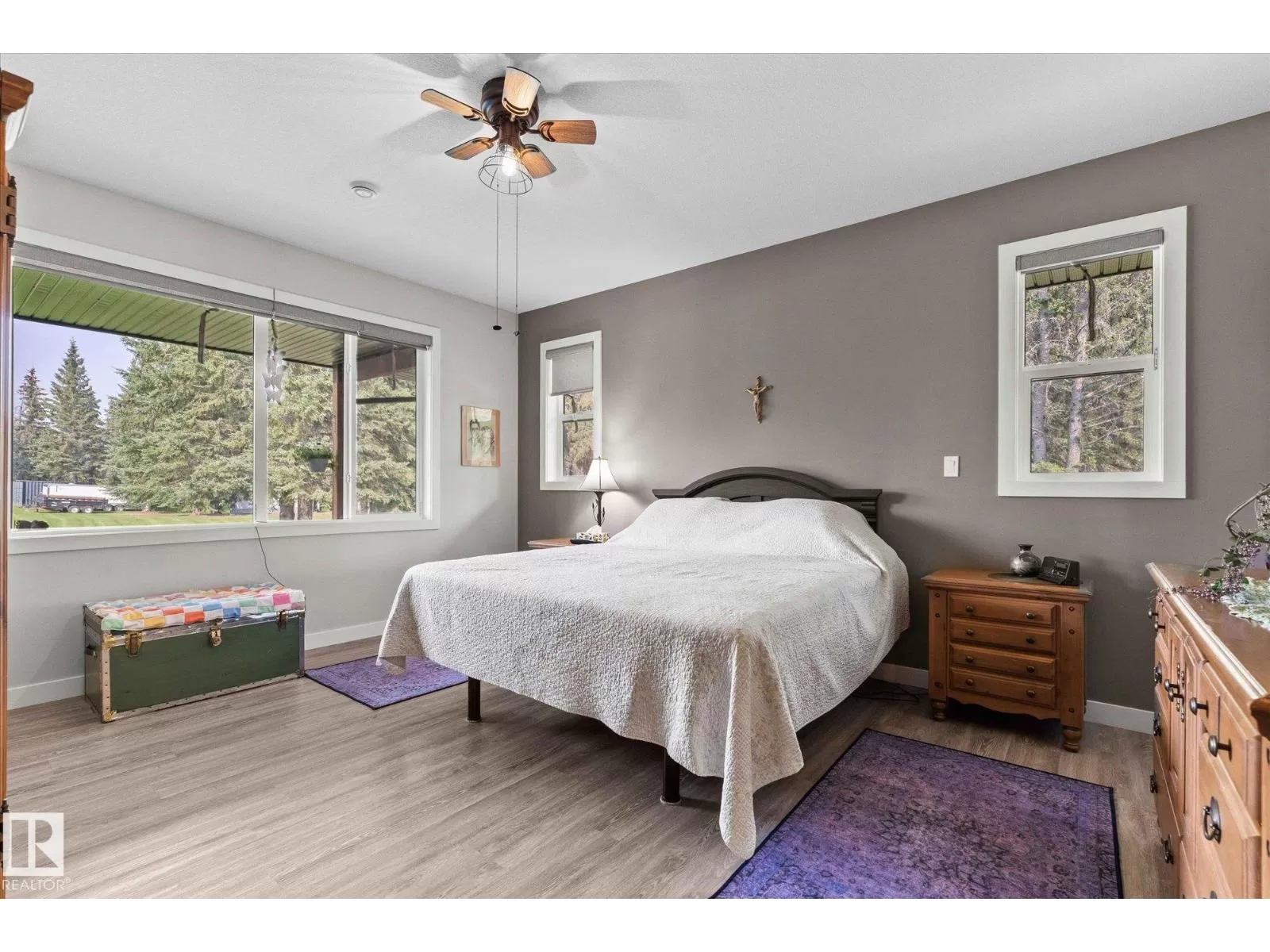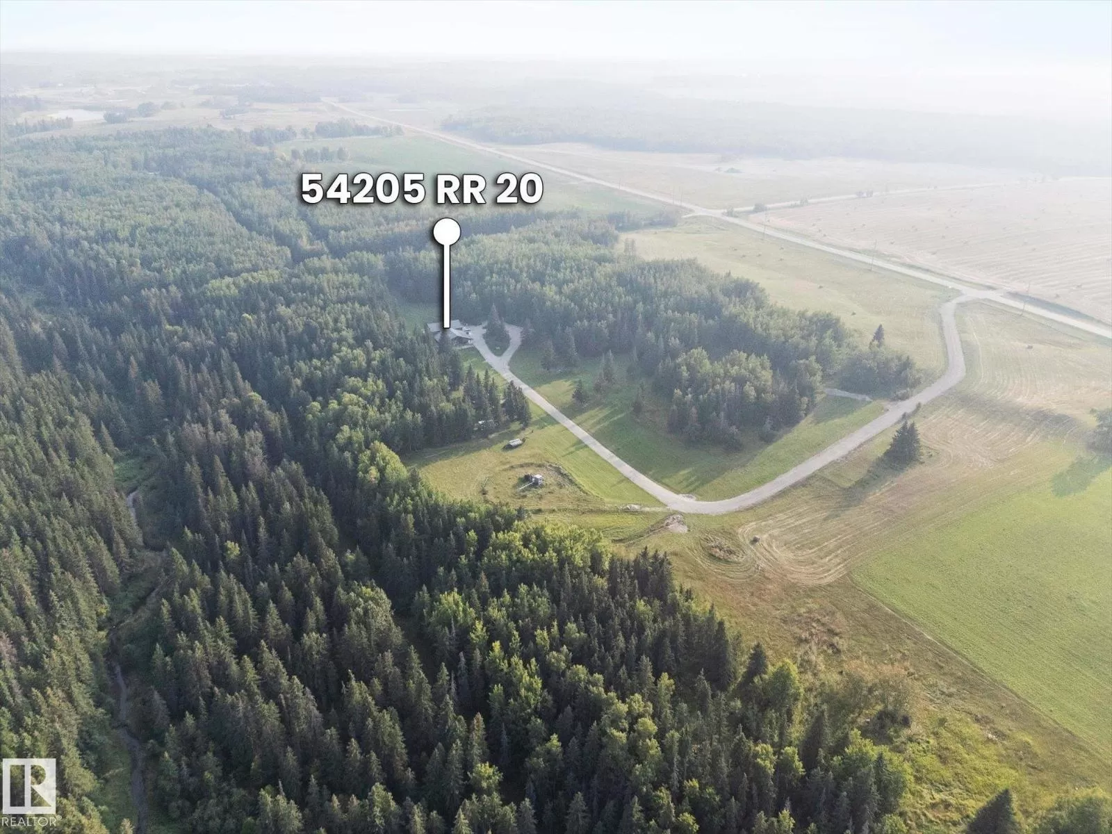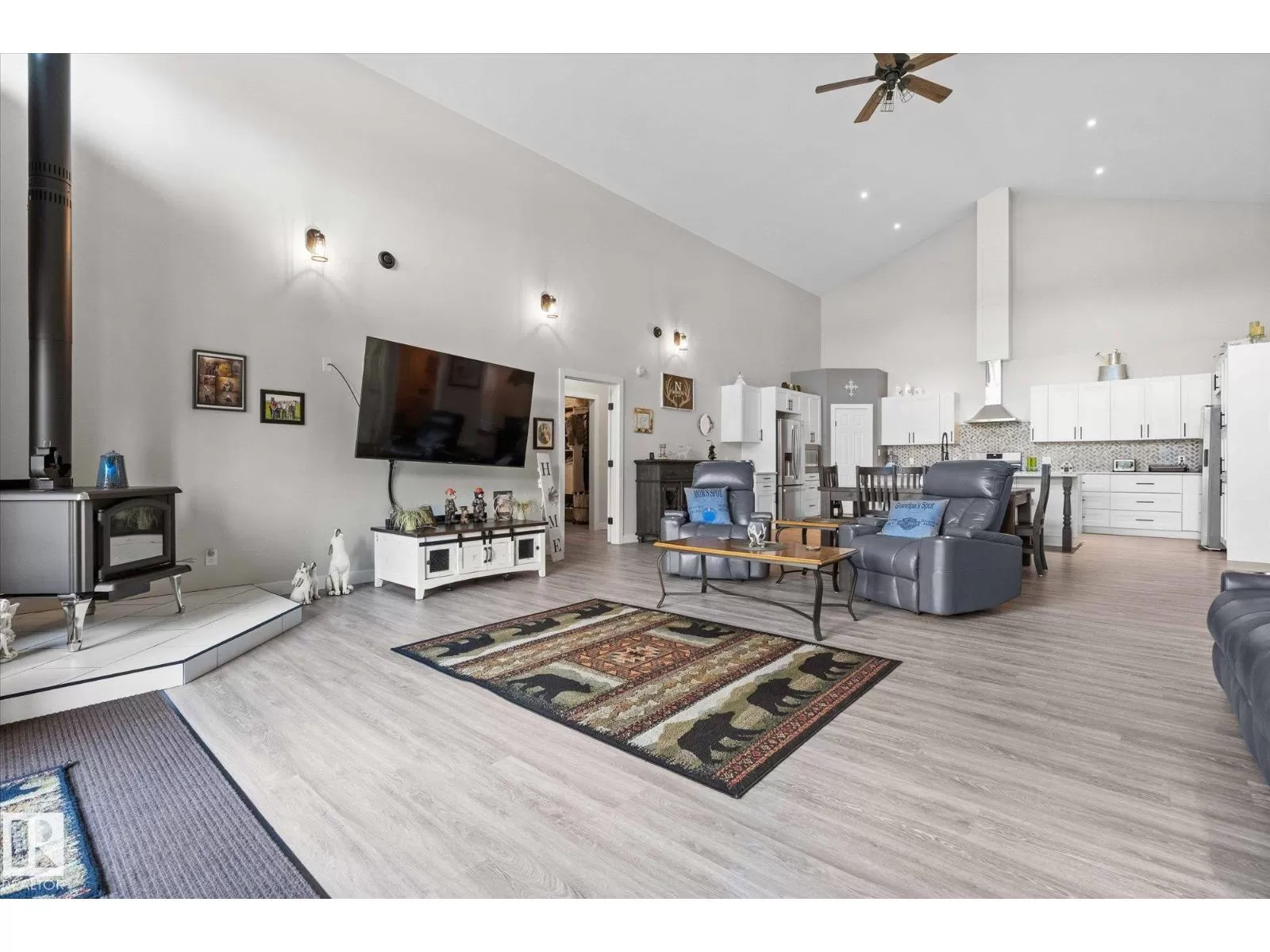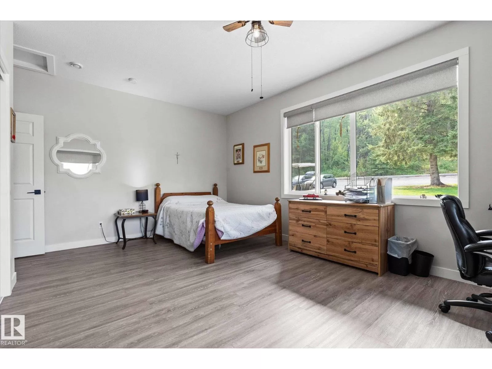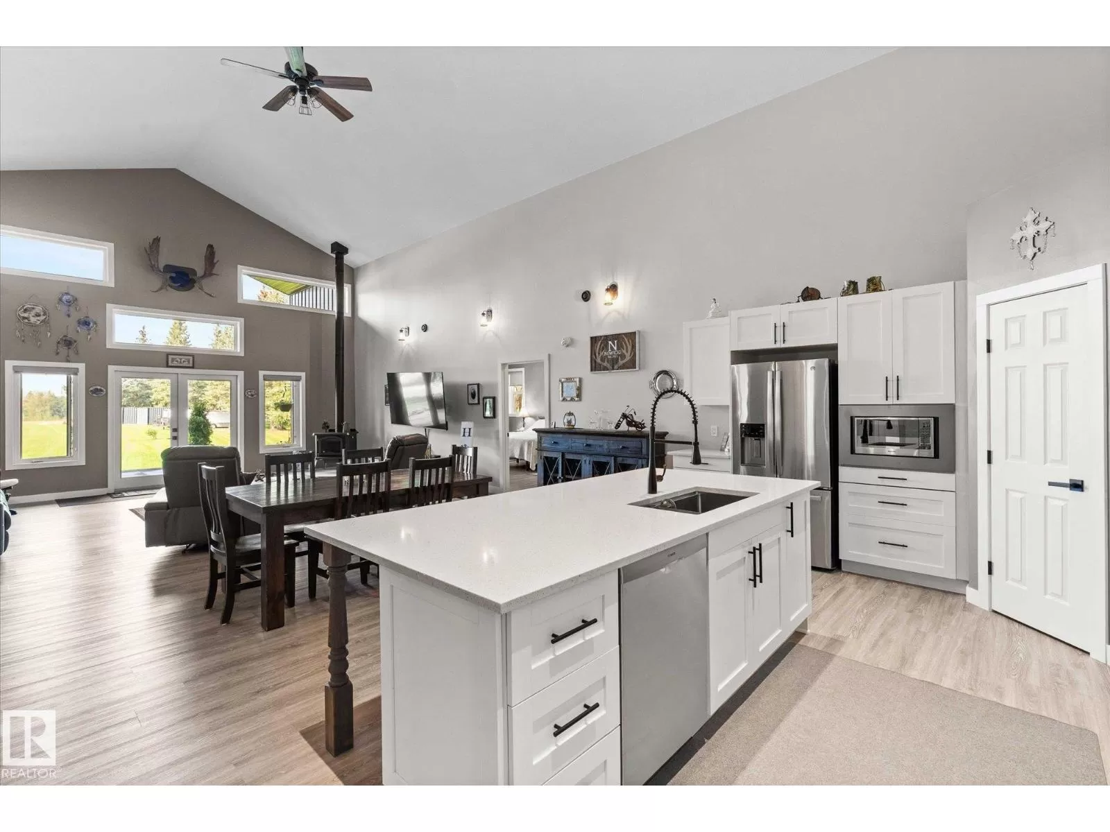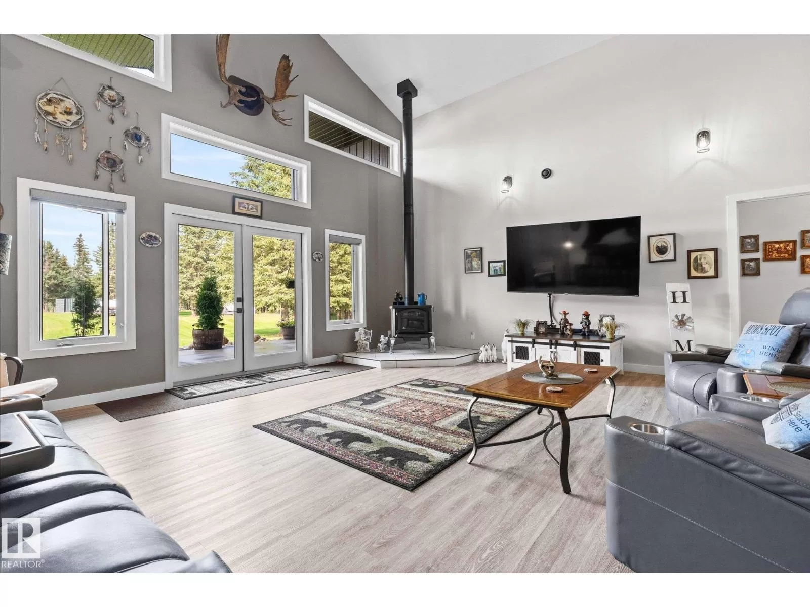 Welcome to this unique property in Lac Ste Anne County, located only 20 minutes to Stony Plain. This property is 39.2 acres of park-like setting with a shop-house nestled down in the trees. The house is a ranch style 2040 sqft bungalow with no basement built on a 6 concrete slab with in-floor heat. Complete with 2 large bedroom including the primary bedroom with 9' ceilings, a large walk in closet & 4p ensuite with huge shower. The kitchen has quartz counter tops, tons of white cabinets, SS appliances & large island great for entertaining. The front room is open concept with 22' vaulted ceiling, large windows & a wood-burning fireplace. 2 more bathrooms compete the home, one with quick access to the attached 40x60 shop with 16' ceilings (2x14' doors), the concrete for the shop pad is 8 thick & has a floor drain. There are 2 radiant heaters in the shop. Outside are 2 seacans, a large garden shed, raised garden beds & in-ground garden area. There is a wrap a round deck around 3 of the sides of the house. (id:27476)