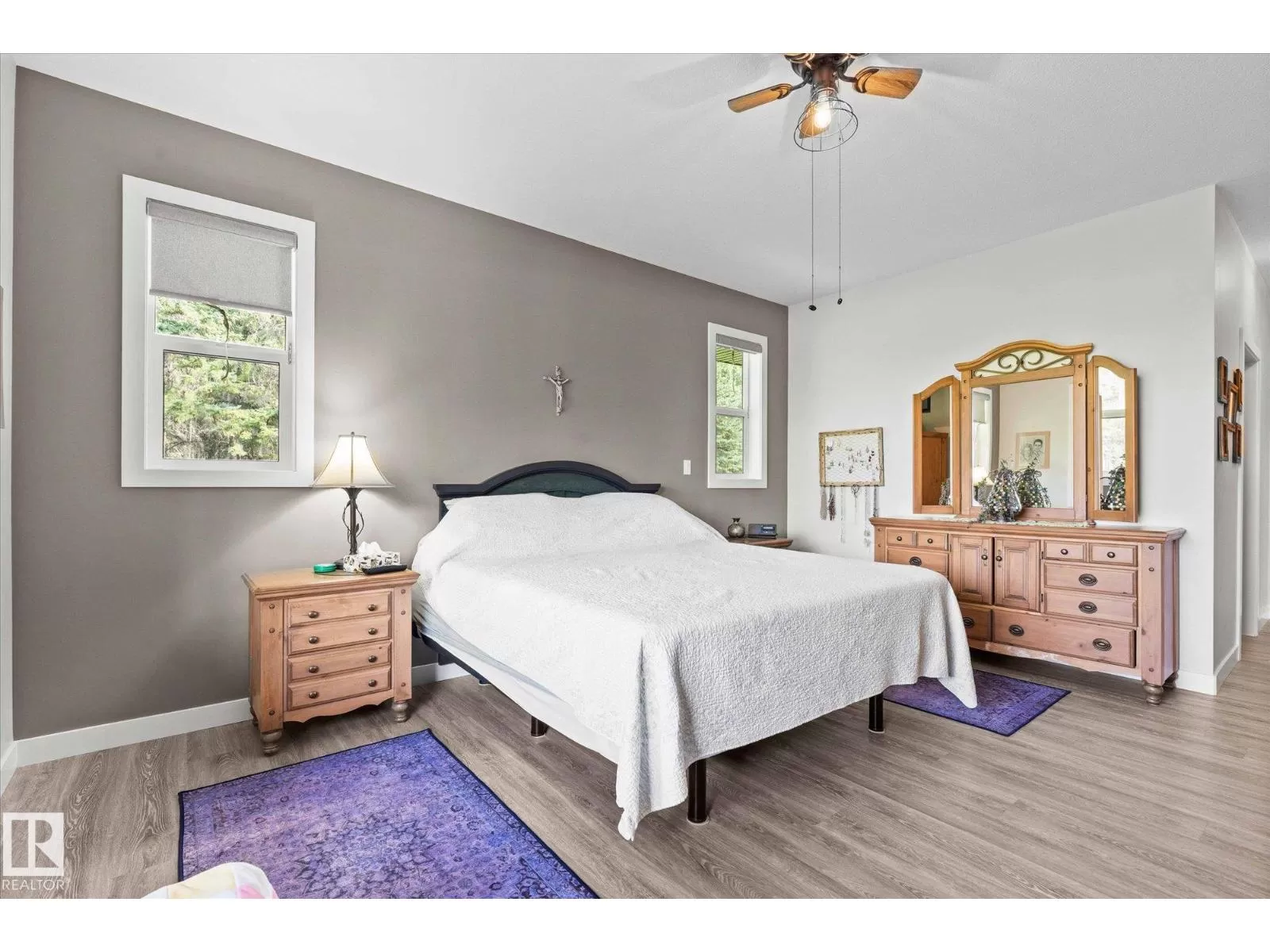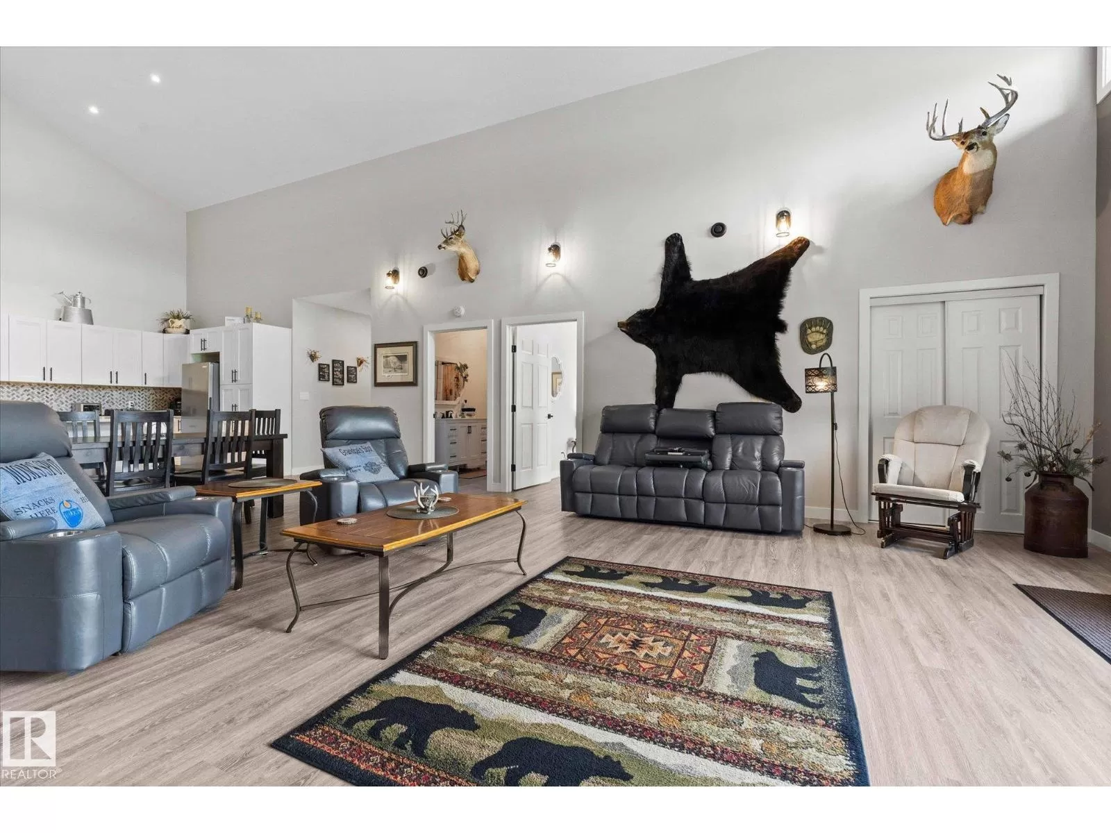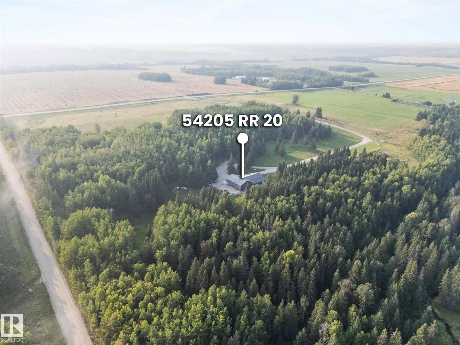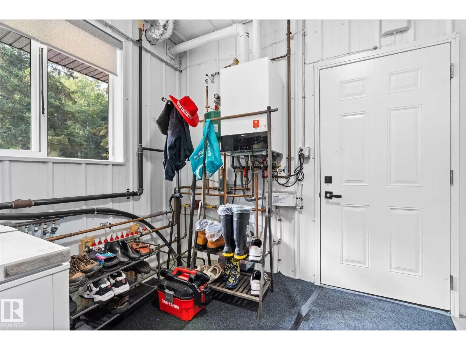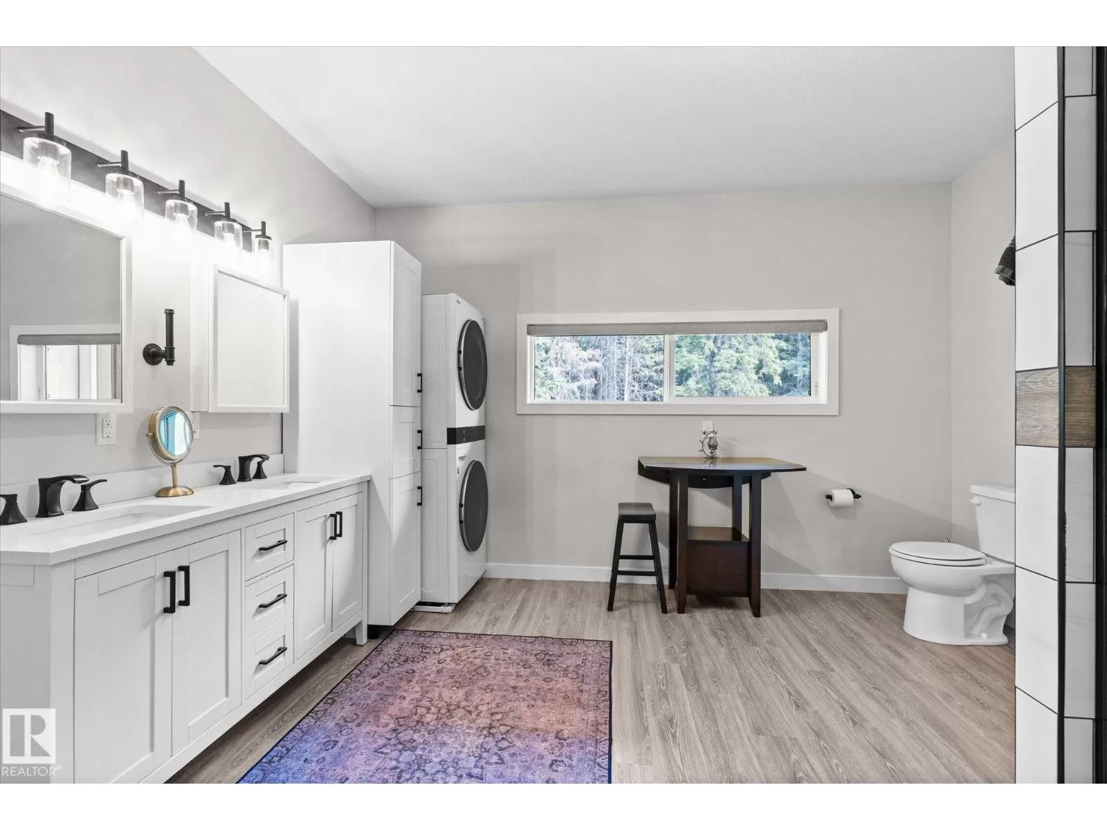 Welcome to this unique property in Lac Ste Anne County, located only 20 minutes to Stony Plain. This property is 39.2 acres of park-like setting with a shop-house nestled down in the trees. The house is a ranch style 2040 sqft bungalow with no basement built on a 6 concrete slab with in-floor heat. Complete with 2 large bedroom including the primary bedroom with 9' ceilings, a large walk in closet & 4p ensuite with huge shower. The kitchen has quartz counter tops, tons of white cabinets, SS appliances & large island great for entertaining. The front room is open concept with 22' vaulted ceiling, large windows & a wood-burning fireplace. 2 more bathrooms compete the home, one with quick access to the attached 40x60 shop with 16' ceilings (2x14' doors), the concrete for the shop pad is 8 thick & has a floor drain. There are 2 radiant heaters in the shop. Outside are 2 seacans, a large garden shed, raised garden beds & in-ground garden area. There is a wrap a round deck around 3 of the sides of the house. (id:27476)