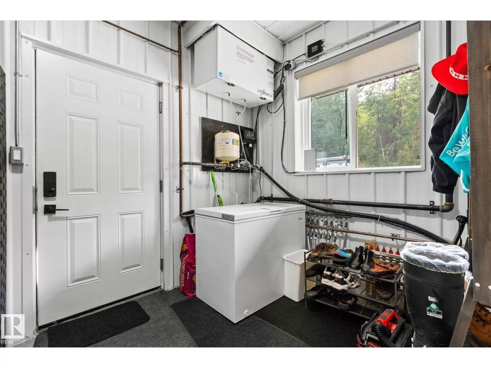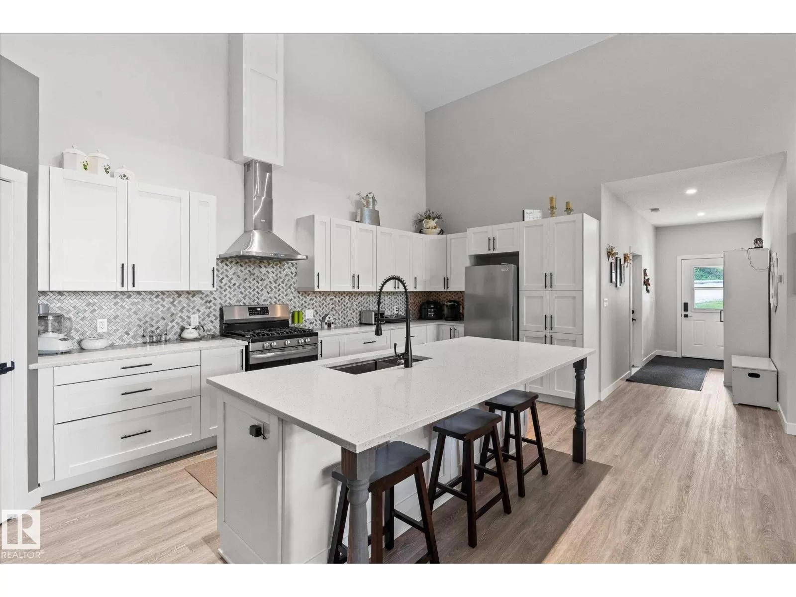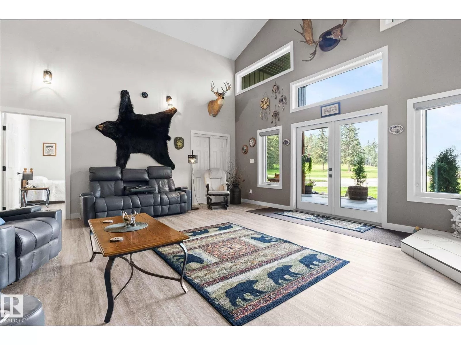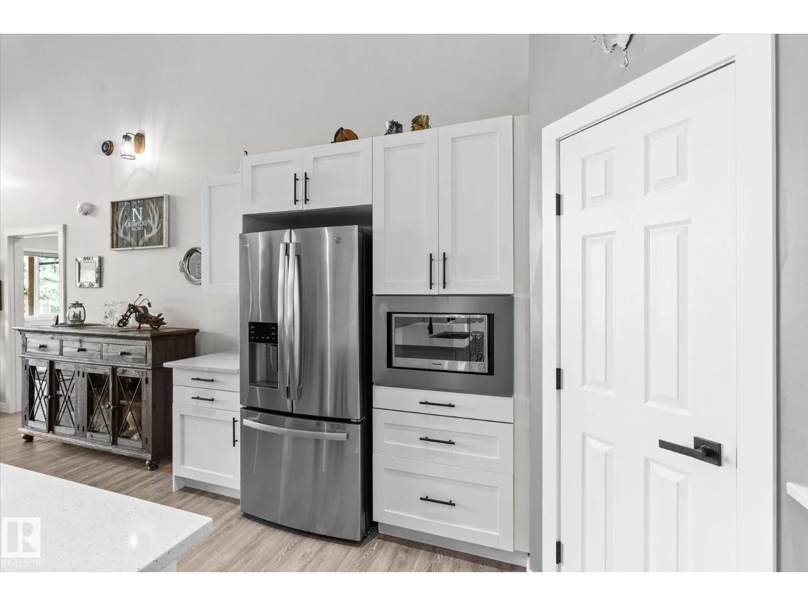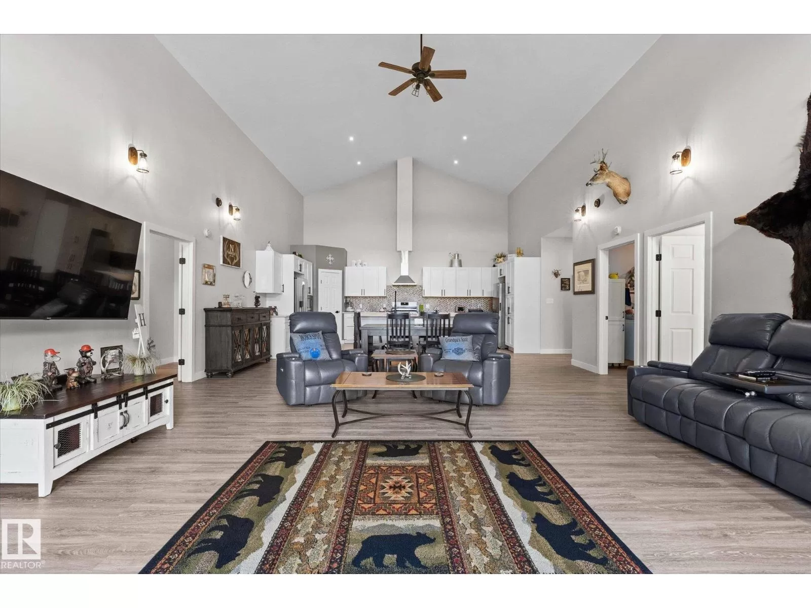Welcome to this unique property in Lac Ste Anne County, located only 20 minutes to Stony Plain. This property is 39.2 acres of park-like setting with a shop-house nestled down in the trees. The house is a ranch style 2040 sqft bungalow with no basement built on a 6 concrete slab with in-floor heat. Complete with 2 large bedroom including the primary bedroom with 9' ceilings, a large walk in closet & 4p ensuite with huge shower. The kitchen has quartz counter tops, tons of white cabinets, SS appliances & large island great for entertaining. The front room is open concept with 22' vaulted ceiling, large windows & a wood-burning fireplace. 2 more bathrooms compete the home, one with quick access to the attached 40x60 shop with 16' ceilings (2x14' doors), the concrete for the shop pad is 8 thick & has a floor drain. There are 2 radiant heaters in the shop. Outside are 2 seacans, a large garden shed, raised garden beds & in-ground garden area. There is a wrap a round deck around 3 of the sides of the house. (id:27476)