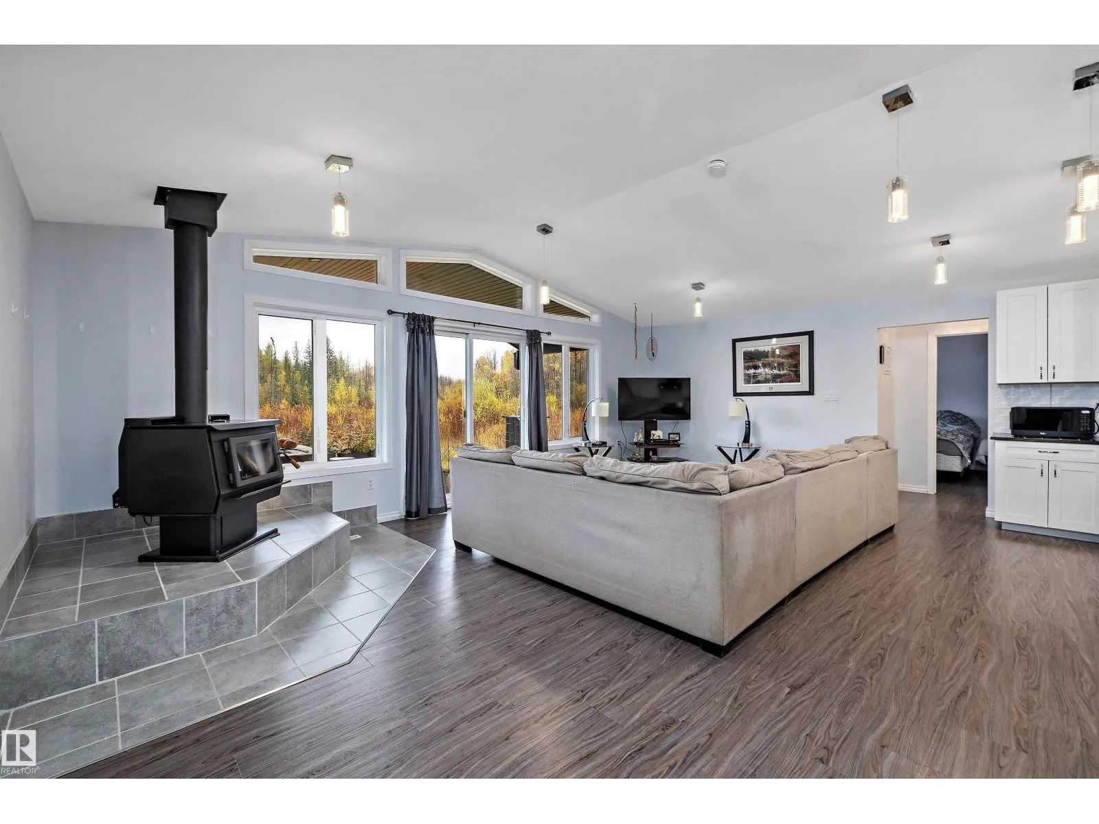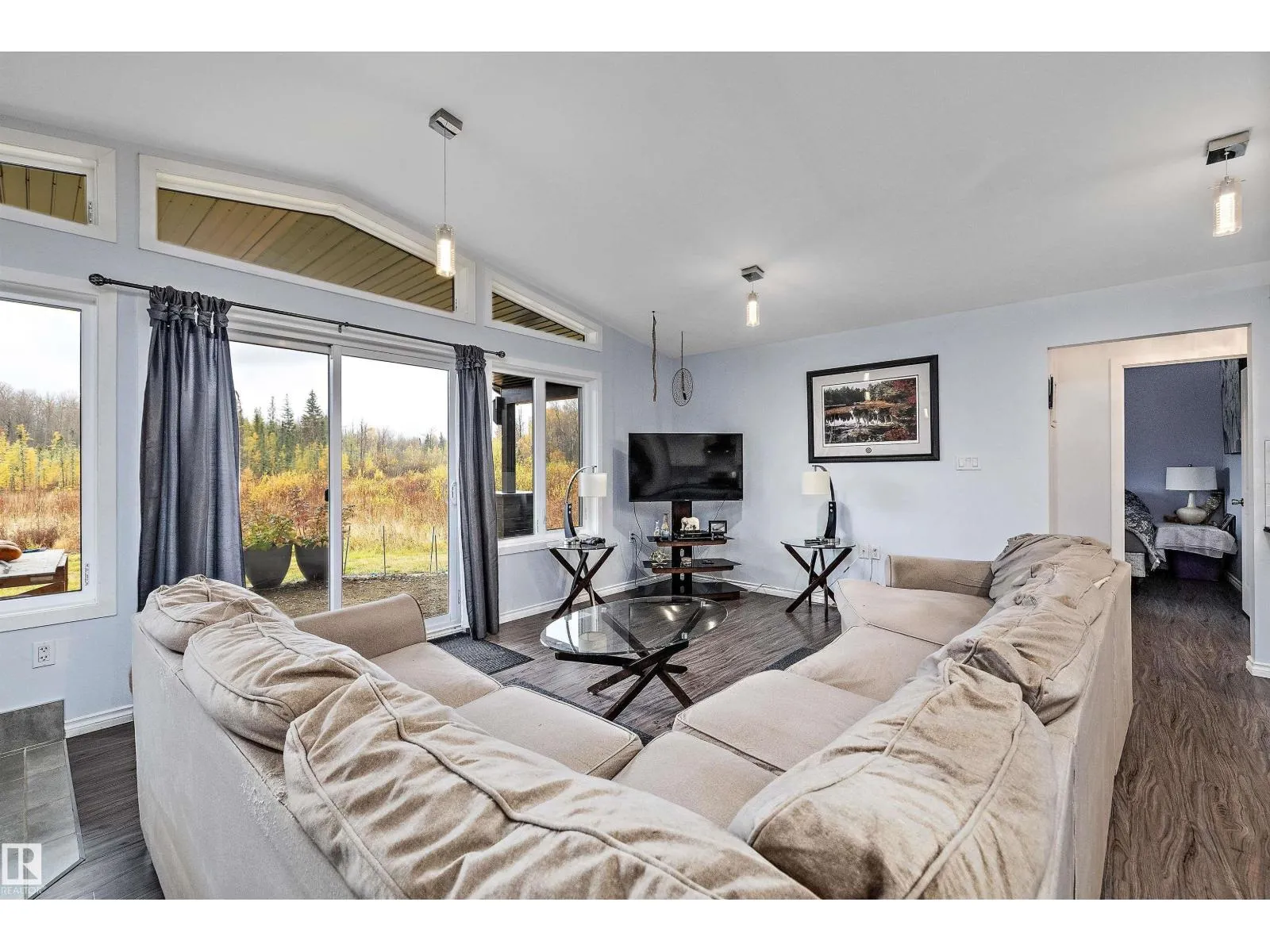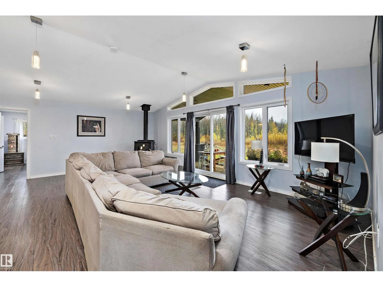 Very Private 15.99 acres near Wabamun Lake in Lac Ste. Anne County. You are greeted by the stunning gates as you enter the property with an abundance of trees. This is rural living at its best. Wonderful 1791 Sq Ft bungalow with open concept and vaulted ceilings with 4 ft crawl space is sure to please everyone. As you enter, there is a separate dining area for entertaining that opens to the main area with vaulted ceilings. The large kitchen features a granite center island and Stainless steel appliances that overlook the spacious living room with large windows taking in the scenic views with a corner wood-burning fireplace. The large master bedroom has a patio door leading to the future patio. Large ensuite comes with a steam shower. Two more large bedrooms and 4 pc bath make up this desirable bungalow. This is a nature lover's dream! (id:27476)