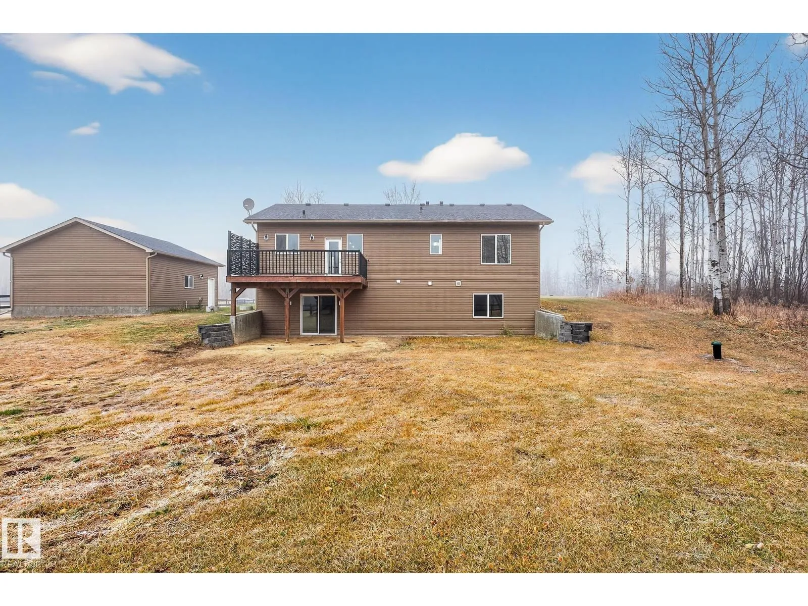 Enjoy tranquility only 10 minutes east of Onoway and 20 minutes northwest of Stony Plain with this fully finished walkout bungalow on 2+ treed acres, perfectly set up for horses. With over 2,600 sq ft of living space, this open-concept home offers 5 bedrooms, 3 full baths, a living room with stone feature wall, and a huge family room with patio doors to the walkout basement. Modern finishes include 9 ft ceilings, hand-scraped hardwood, ceramic tile, granite counters, S/S appliances, maple cabinets, and updated lighting. Upgrades include new fencing and beautiful custom gate, fridge and dishwasher, A/C and carpet (2020), new faucets, rustic shelving, fully finished basement (2023) with laminate, electric fireplace, stone accents and dimmable lighting, newer furnace (2023), washer/dryer (2021), solar exterior lights, security system, new CO2/smoke alarms, remote thermostat, south-facing yard, deck with privacy screen, new vents, fresh paint (2025), and new roof and siding on house and garage (2023). (id:27476)