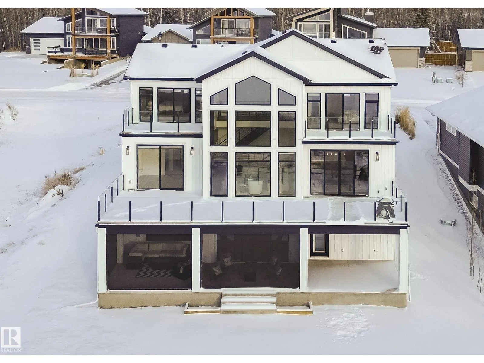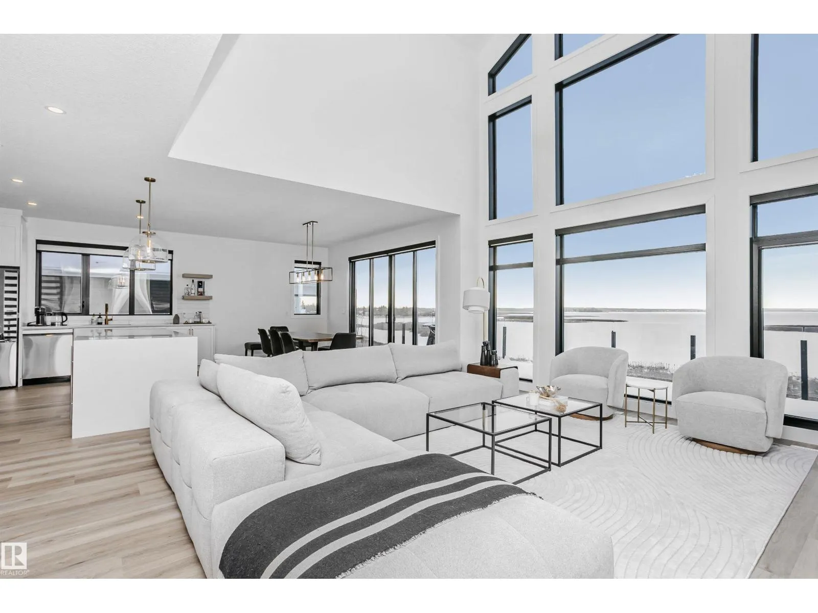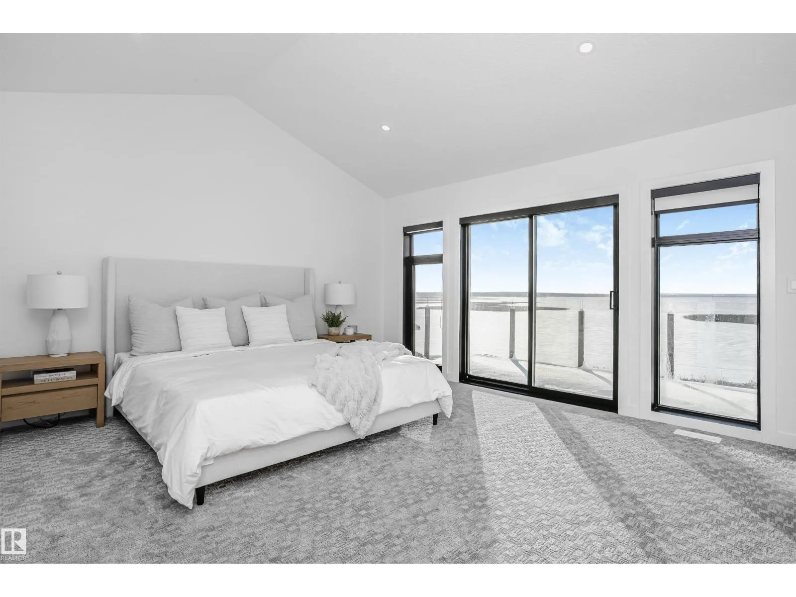 Amazing custom built WATERFRONT WALKOUT 2 story now available. Soaring vaulted clearstory story ceilings on the main floor great room featuring an island kitchen, large lakeside dining, floor to ceiling f/p feature, glass wall to den and large patio sliders out to the south facing main deck. The main floor is also host to a large front entry, garage mudroom (both with hockey benches), a 2 piece bath, laundry and walkthrough pantry. Rise up the open web stair case with custom rail to the upper floor which is home to 2 PRIMARY bedrooms with ensuites, walk-in closets and each its own private lakeside deck. They are on opposite ends of the home connected by a bridge. Downstairs you will find a huge family/rec room with wet bar, 2 more bedrooms (one with built-in bunks), 2 bathrooms and doors out to the screened-in patio. You will also enjoy the triple attached garage, gas bbq hook-up, central a/c, community pool along with fitness centre, clubhouse, beachfront park, marina and R/V storage option. (id:27476)