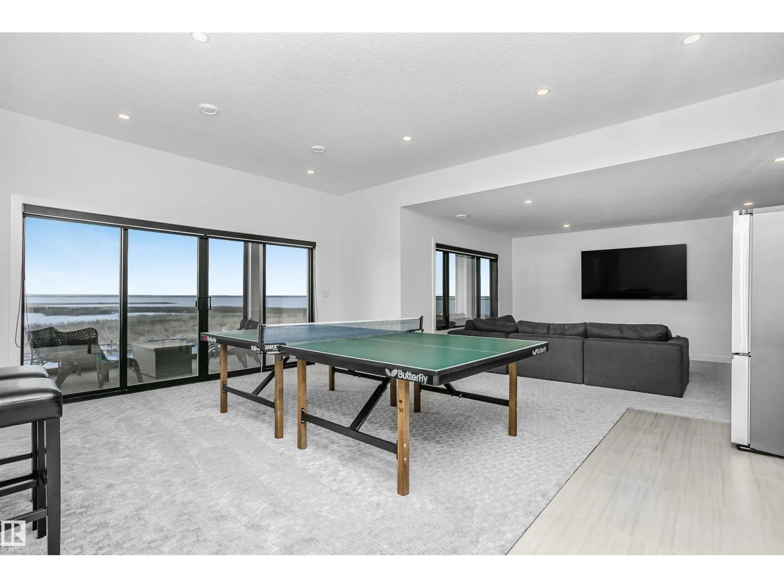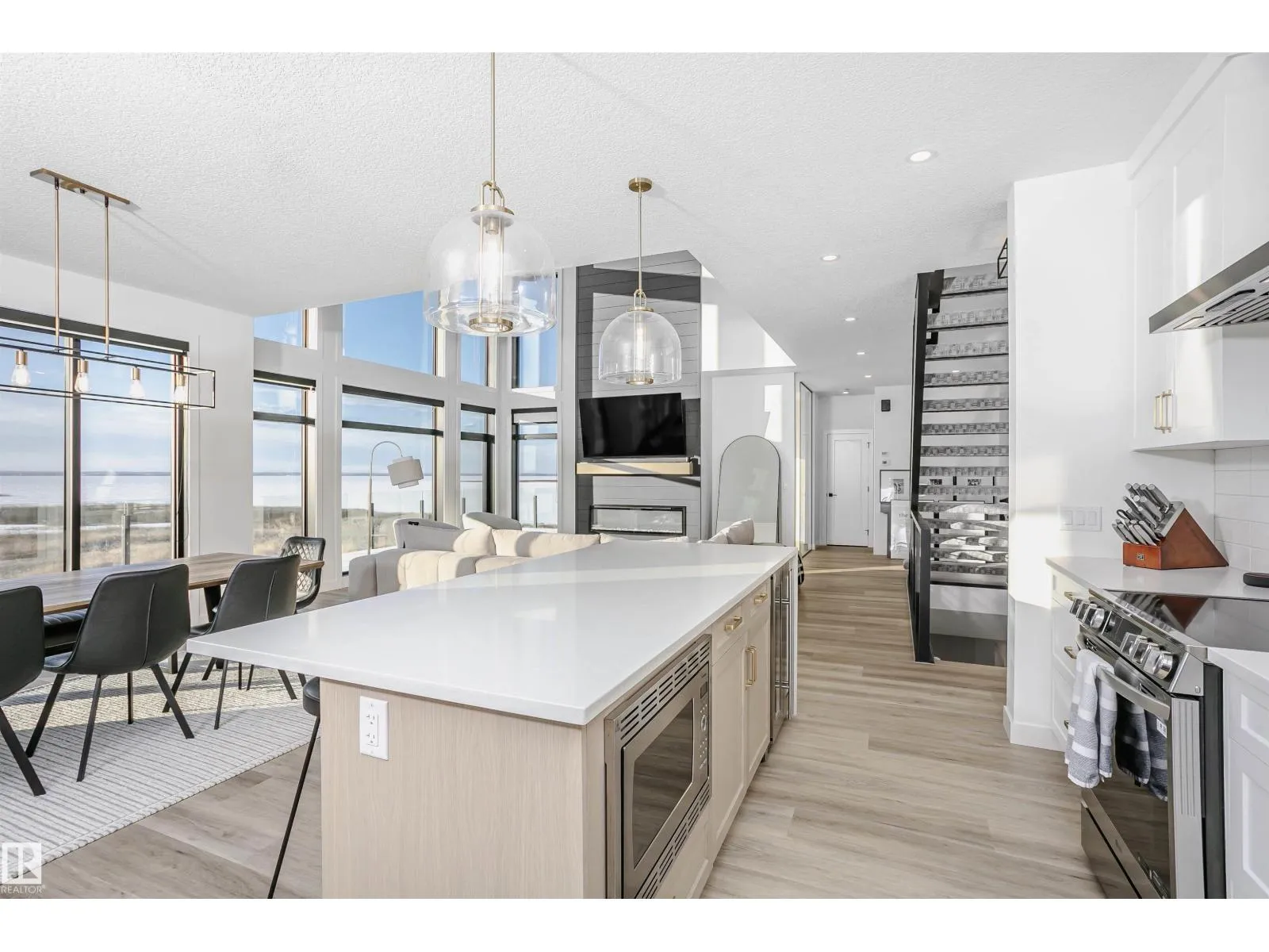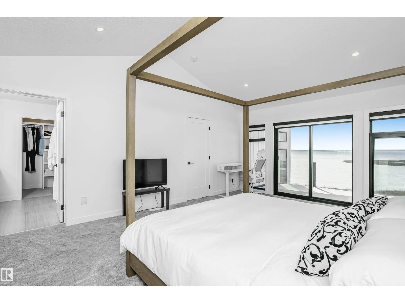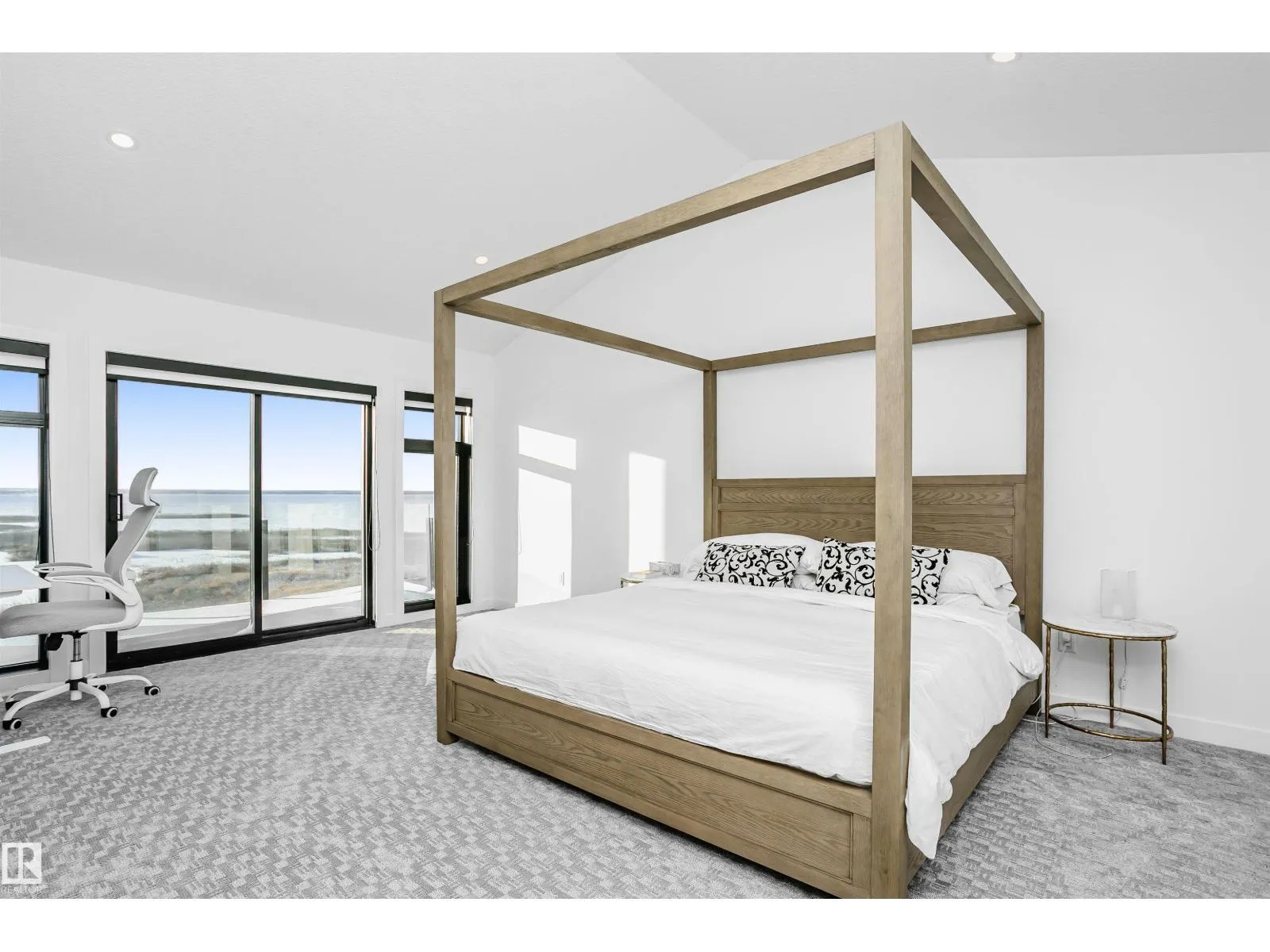 Amazing custom built WATERFRONT WALKOUT 2 story now available. Soaring vaulted clearstory story ceilings on the main floor great room featuring an island kitchen, large lakeside dining, floor to ceiling f/p feature, glass wall to den and large patio sliders out to the south facing main deck. The main floor is also host to a large front entry, garage mudroom (both with hockey benches), a 2 piece bath, laundry and walkthrough pantry. Rise up the open web stair case with custom rail to the upper floor which is home to 2 PRIMARY bedrooms with ensuites, walk-in closets and each its own private lakeside deck. They are on opposite ends of the home connected by a bridge. Downstairs you will find a huge family/rec room with wet bar, 2 more bedrooms (one with built-in bunks), 2 bathrooms and doors out to the screened-in patio. You will also enjoy the triple attached garage, gas bbq hook-up, central a/c, community pool along with fitness centre, clubhouse, beachfront park, marina and R/V storage option. (id:27476)