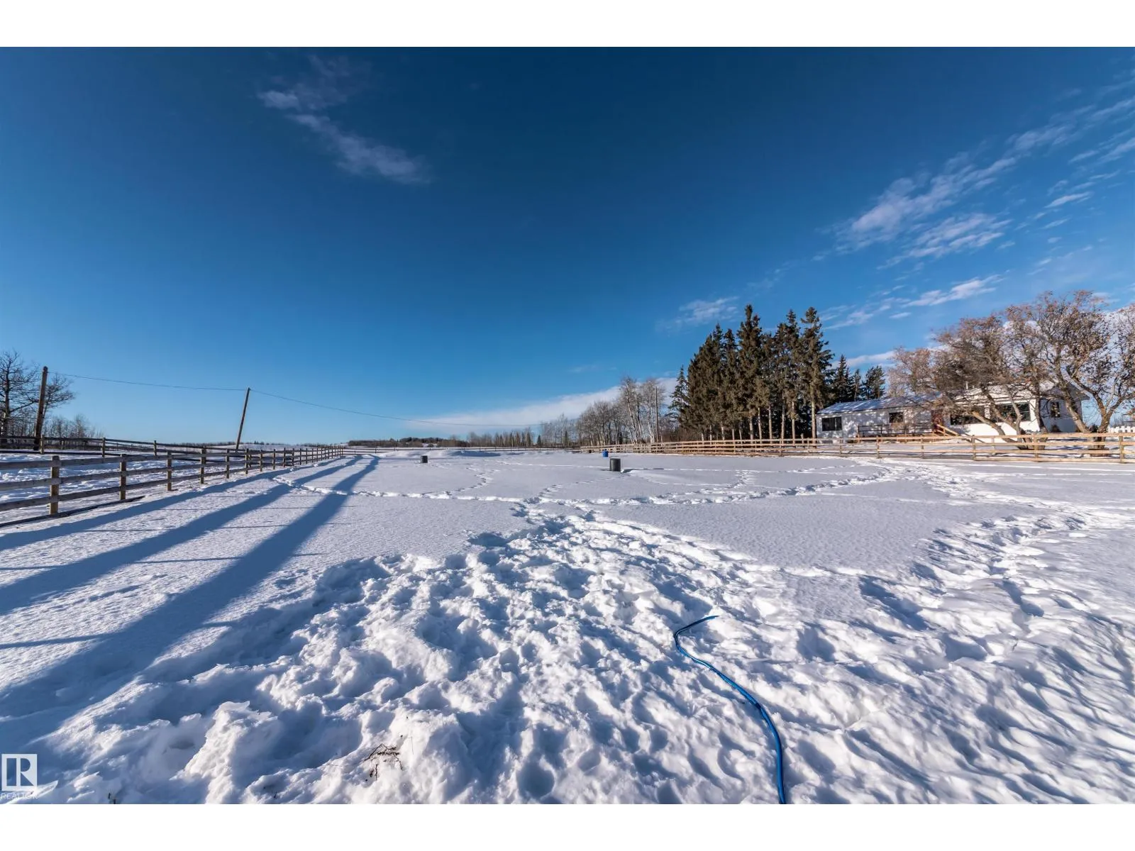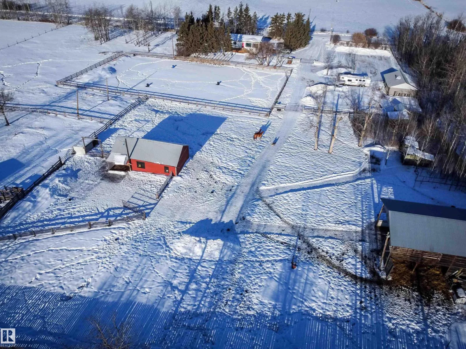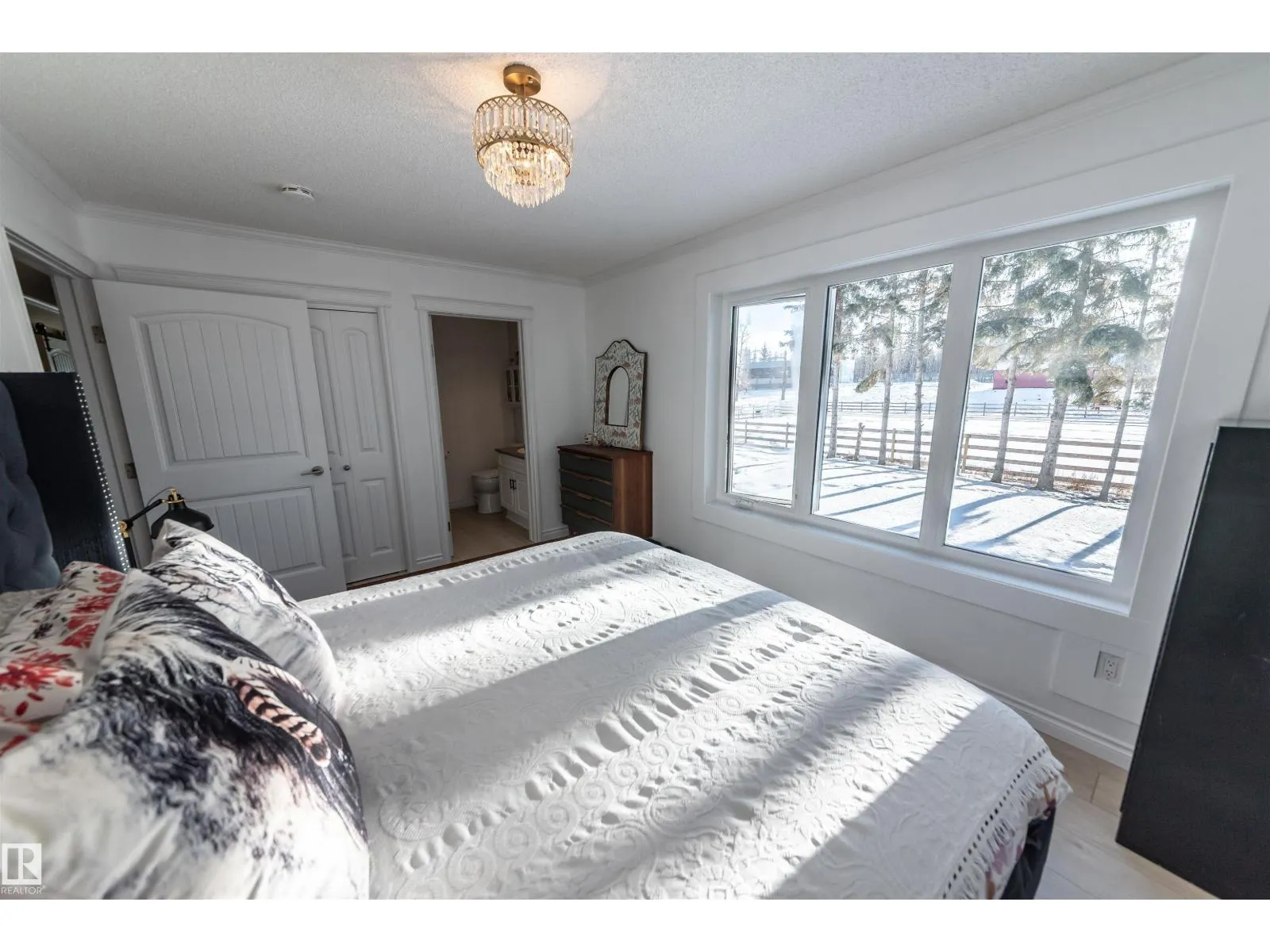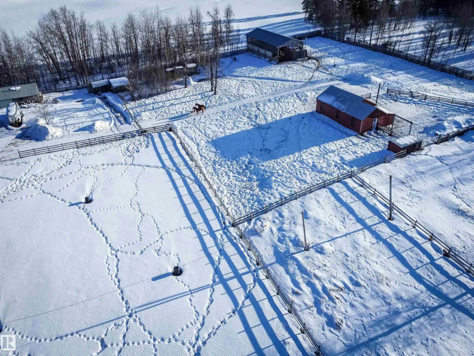 Charming hobby farm in Rich Valley, located just 1.9 km from Rich Valley School. This beautifully treed and fully fenced 5-acre property offers privacy and functionality for country living. The home features just over 1,455 sq ft of living space with an open-concept design, huge country kitchen, open to living room with gorgeous framed window overlooking farm area. complete with an eating bar, ample cabinetry, and counter space. Oversized windows provide stunning country views and abundant natural light. Designed with accessibility in mind, the home offers extra-wide hallways and 36 doors throughout. This area has been completely remodeled and is very modern with country flair. There is a main 4-piece bath, three generously sized bedrooms, plus a spacious primary bedroom with a large closet and 3-piece ensuite. Enjoy views, peace and tranquility from the front and back deck. The property is equipped with a large Workshop, Barn, Riding Arena and more. (id:27476)