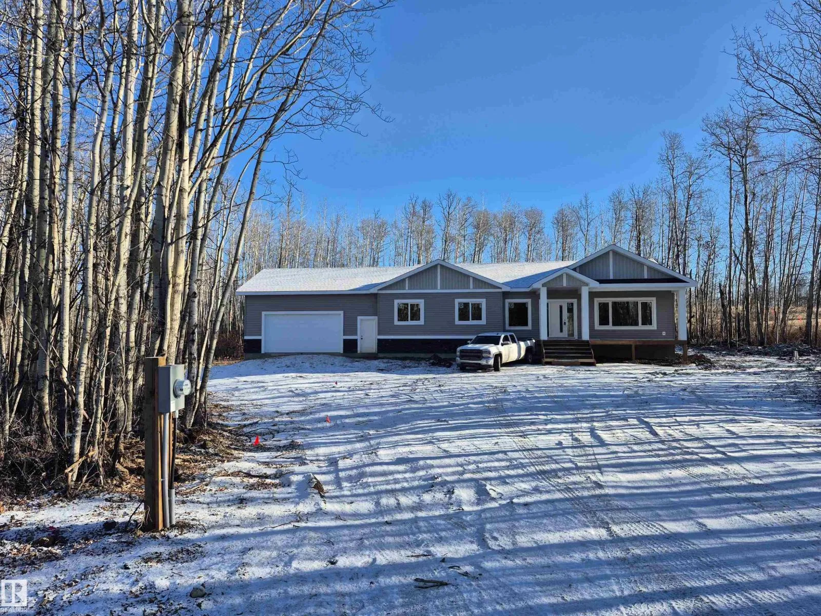 BRAND NEW! AVAILABLE FOR IMMEDIATE POSSESSION! TREED AND PRIVATE LOT! 2.64 ACRES! INCREDIBLE BUNGALOW WITH 28X28' GARAGE! WELCOME TO 3 54222 RANGE ROAD 25. THIS NEW BUILD HAS 1,592 SQ FT OF MAIN FLOOR LIVING SPACE, AN UNFINISHED BASEMENT, 3 BEDROOMS AND 2 BATHS. THE OPEN KITCHEN HAS SOFT CLOSE CABINETRY, GRANITE COUNTERTOPS, SOFT-PEARL VINYL FLOORS, A WATERED ISLAND WITH SINGLE LEVEL EATING BAR, TILE BACKSPLASH, AND A CORNER PANTRY. DINING NOOK IS OPEN CONCEPT WITH EXTERIOR DECK ACCESS. LIVING ROOM IS SPACIOUS. PRIMARY BEDROOM IS KING-SIZED WITH OVER-SIZED WALK-IN CLOSET. ENSUITE HAS DOUBLE SINKS AND A DOUBLE SHOWER. HOME HAS 2 ADDITIONAL MAIN FLOOR BEDROOMS AND A FULL BATH. GARAGE MUDROOM IS SPACIOUS. HOME HAS MAIN FLOOR LAUNDRY. HOME HAS FULL WARRANTY, 28X28 HEATED/INSULATED GARAGE, INCLUDED IS A REAR DECK WITH RAILING. LANDSCAPING TO ROUGH GRADE. DRILLED WELL AND SEPTIC TANK AND FIELD. (id:27476)