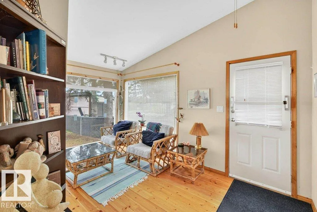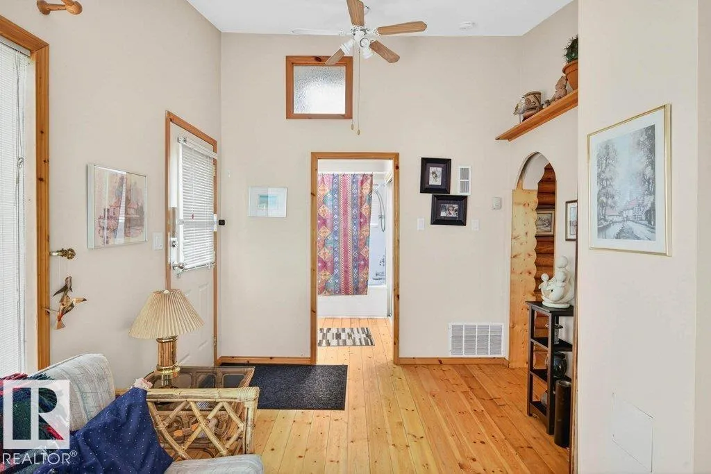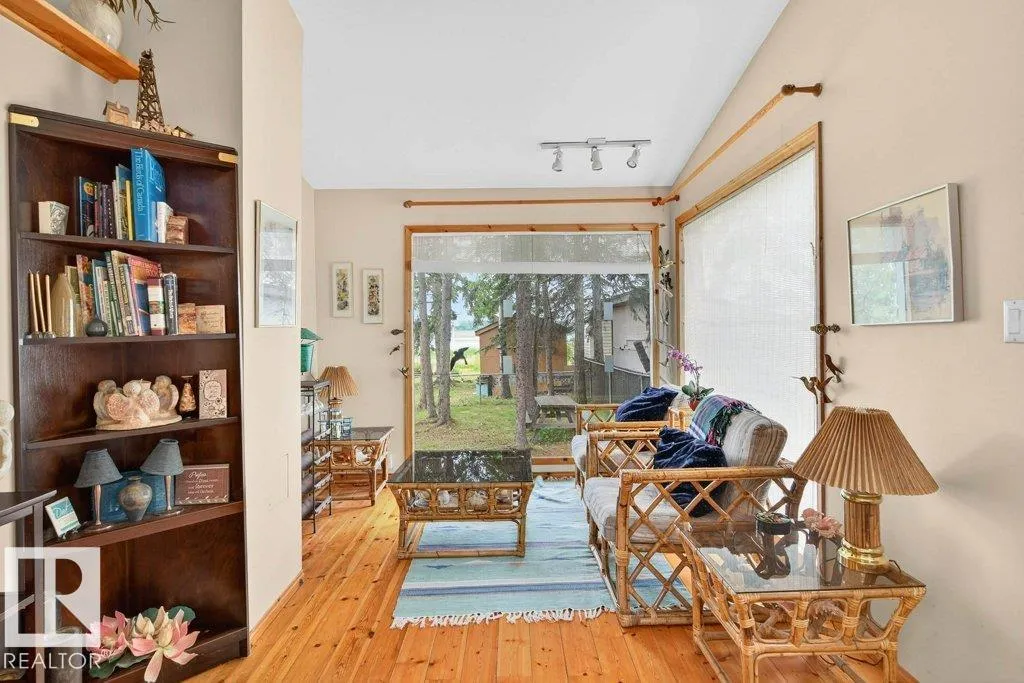 Welcome to this charming lakeside retreat on the serene shores of Sandy Beach. This delightful home offers the perfect blend of comfort and tranquility, with numerous recent upgrades including a new roof and pressure pump (2023), as well as eaves and soffits (2018). Inside, you'll find bamboo and hardwood flooring, a versatile flex roomâpreviously used as a second bedroomâadding extra functionality to the layout, and a wood-burning fireplace/heater that brings warmth and coziness to those relaxing nights by the fire. Start your day with coffee while listening to nature surrounded by mature trees. In the evening unwind as you roast marshmallows over the fire pit watching the sunset over the water. This property truly gives you the outdoor Alberta lifestyle. (id:27476)