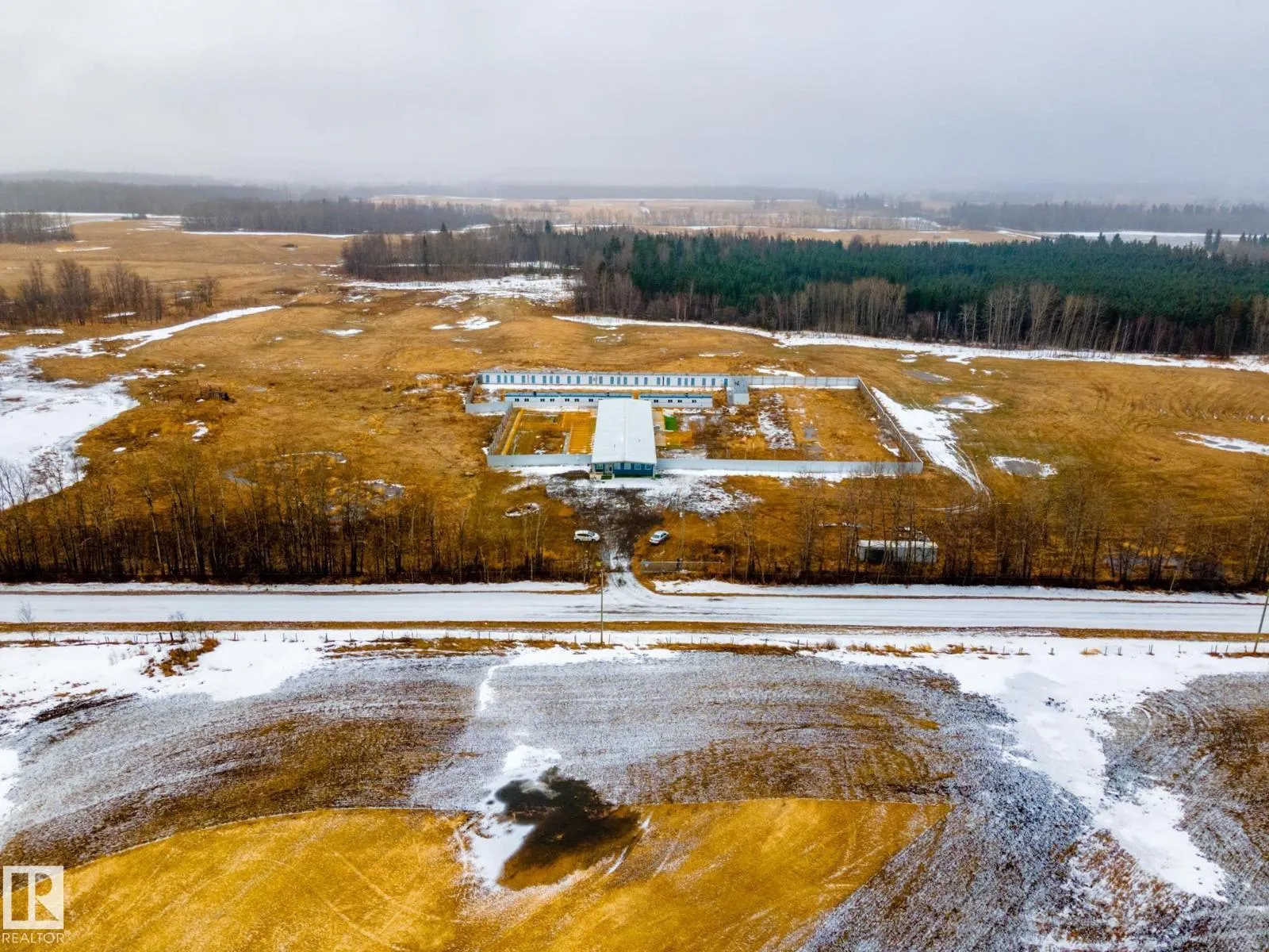 69.68 Acres Bordering Paved Highway 777, With a 2016 Built, 6000 Sq. Ft. (40X 150) Engineered Steel Building With a Concrete Foundation & In floor Heat, Previously Set up as a Dog Kennel Business. This Property Was Previously Set up for 70 Dogs, as well as a Room for Cats. Large Classy Front Entrance with Service Counter, 3pc Bathroom With a Washer & Dryer, Currently set up with 3 Separate Bedrooms. This Property Could be Set Up With A New Home or Used for Many Different Business Ventures With County Approval, like a Riding Arena, Hog/Horse Barn, Petting Farm/Zoo, U-Pick, Greenhouse, Cannabis Growing Facility or Animal Sanctuary/Rescue. The Current Building Could Easily be Modified to Your Needs, the Possibilities are Endless! Some Photos are not current, they are to show what the property can look like again. Most of the indoor and outdoor kennel panels have been removed. (id:27476)