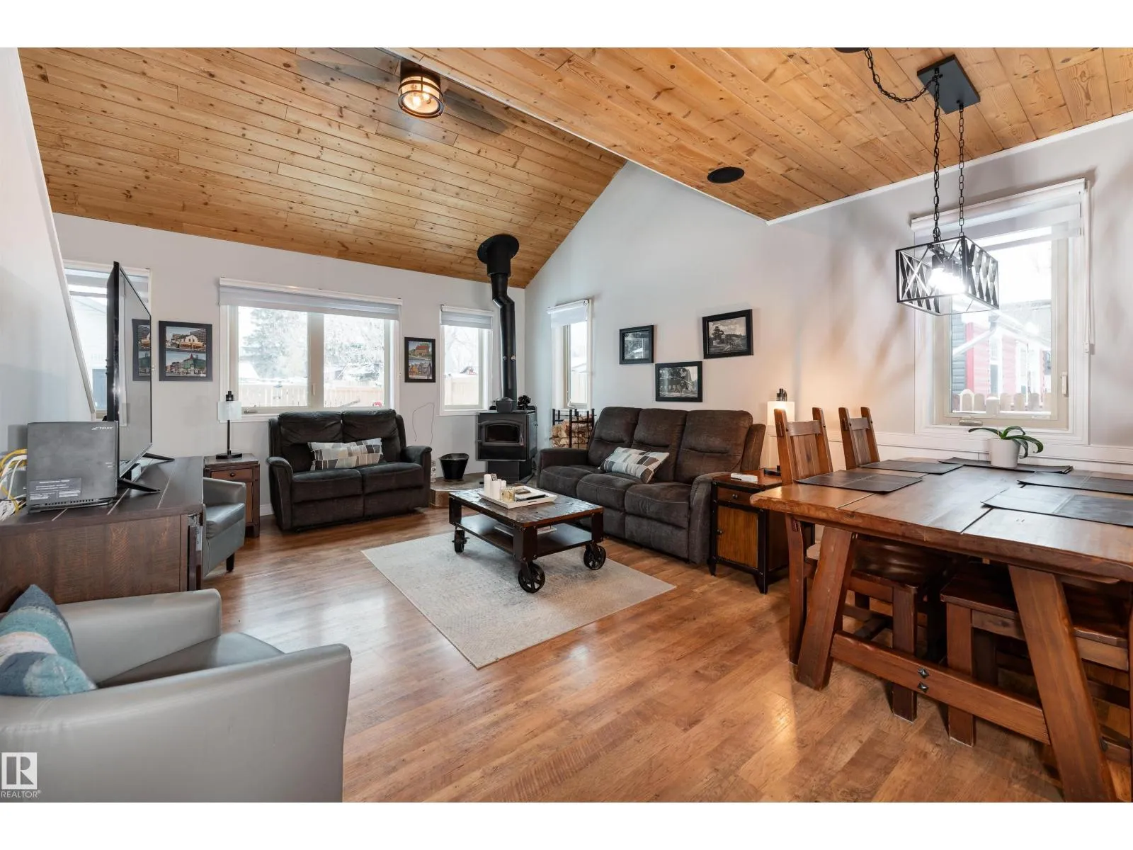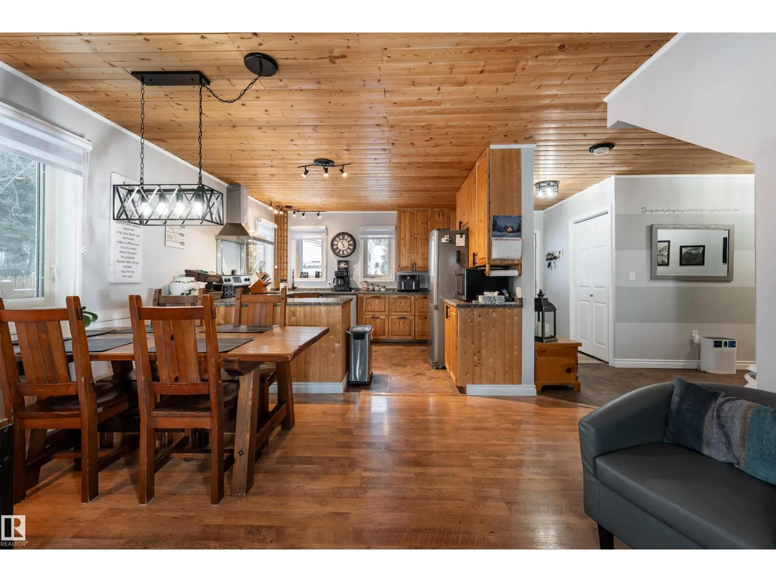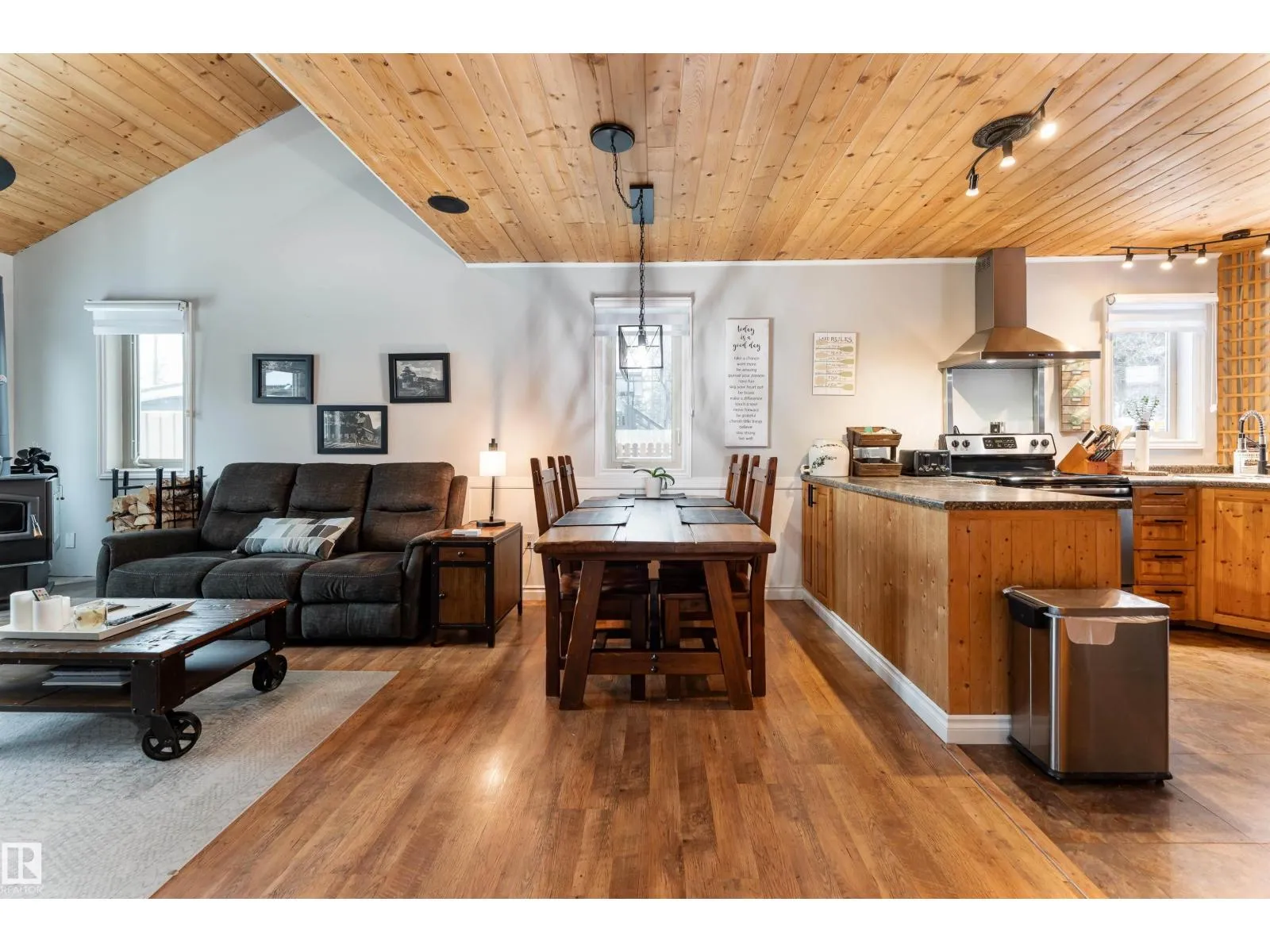 Lake life, space to grow, and small town charm come together in this inviting 1,653 sq ft home on a quiet street just blocks from the lake in Alberta Beach. The bright, open concept layout connects the kitchen, dining, and living areas, featuring rich wood ceilings, warm cabinetry, a cozy freestanding wood stove, and in-floor heating. The kitchen offers generous counter space and opens seamlessly to the dining area, ideal for everyday living and gatherings. With 3 bedrooms, 2.1 bathrooms, a spacious primary suite with walk-in closet and ensuite, plus an upper loft, this rustic-modern home is well suited for large or growing families. Outside, enjoy a fenced yard with deck and gazebo, in front is RV parking with plug-in (30 AMP) and double parking beside, plus a double detached insulated garage with loft storage and workshop area. Recent updates include a 2014 combi-boiler and new water treatment system. All within walking distance to local shops, restaurants, the library, museum and main beach. (id:27476)