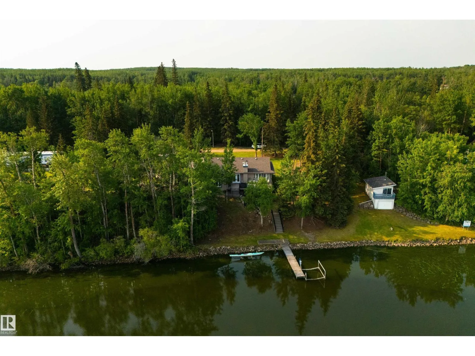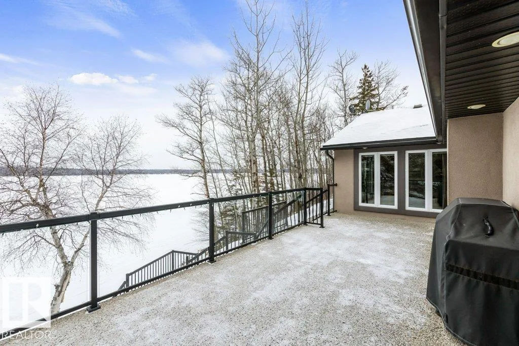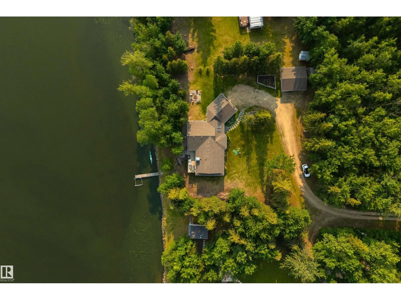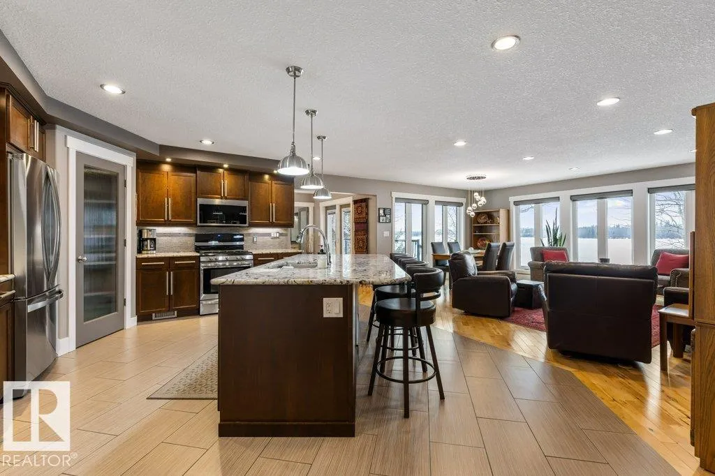 Absolutely unmatched, this custom 2,218 sq ft walk-out bungalow sits on a rare 2+ acre lakefront lot with an incredible 200â of lake frontage. Perfectly positioned to capture panoramic water views, the sun-drenched living room features expansive windows & a cozy gas f/p overlooking the lake. The chefâs kitchen is finished w/granite countertops, hardwood flooring, recessed lighting & seamless flow into a four-season sunroomâperfect for morning coffee or evening sunsets. The king-sized primary suite offers its own private office, two walk-in closets & spa-inspired five pce ensuite. The fully finished walkout basement is perfect for guest & includes a large recreation room with wood stove & additional bedroom. Outside, enjoy exposed aggregate patios, a stunning deck w/covered hot tub, custom stairs leading to the dock & a large wooded area perfect for a childrenâs tree fort. With two garagesâone attached & one detachedâplus your own well & septic, this property blends privacy, comfort & true lakefront luxury (id:27476)