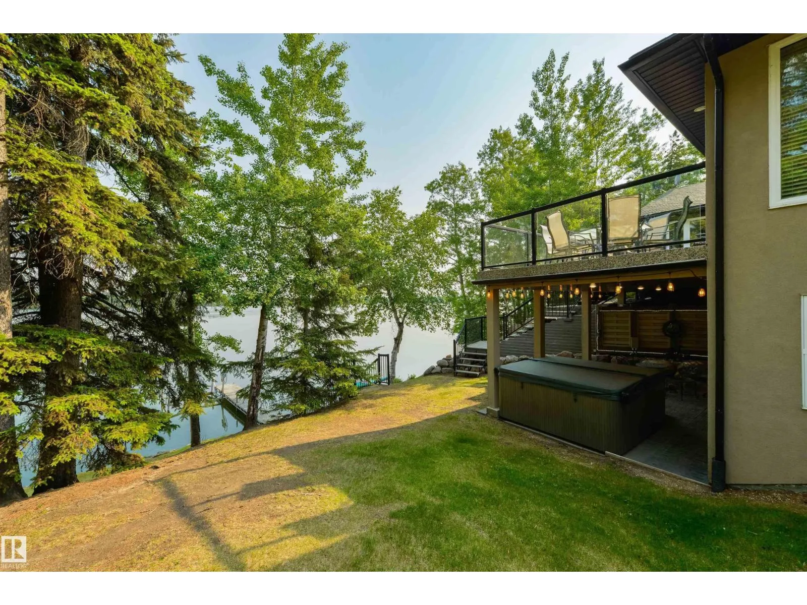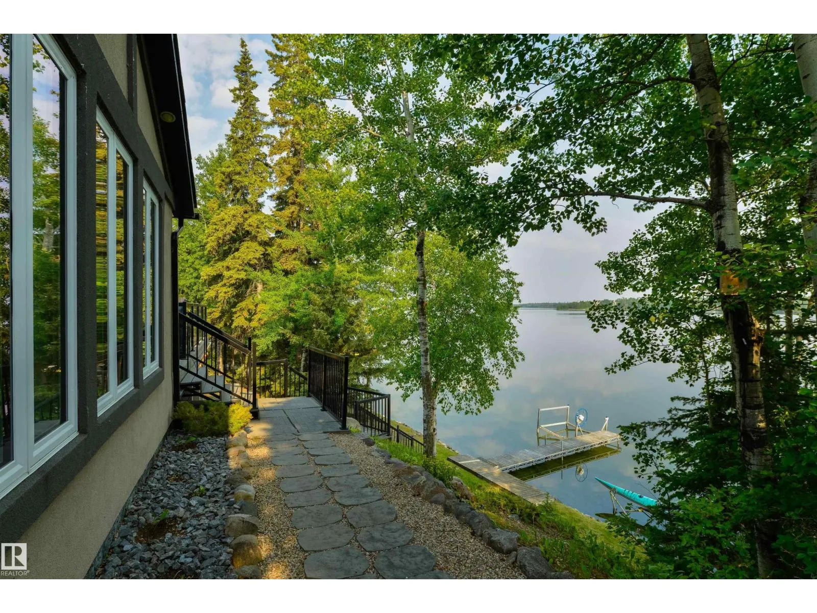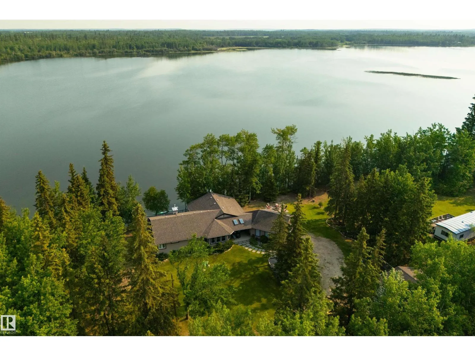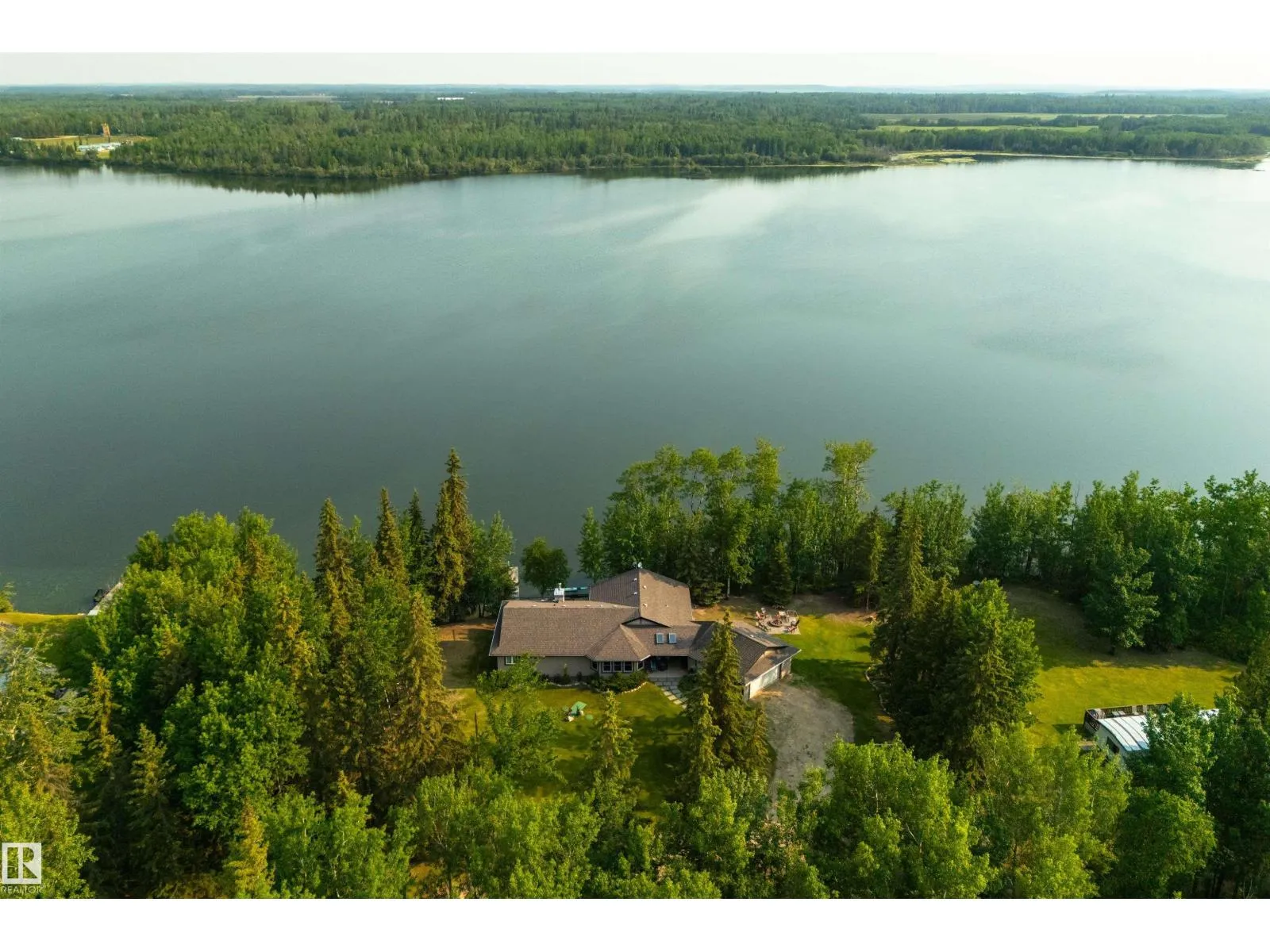 Absolutely unmatched, this custom 2,218 sq ft walk-out bungalow sits on a rare 2+ acre lakefront lot with an incredible 200â of lake frontage. Perfectly positioned to capture panoramic water views, the sun-drenched living room features expansive windows & a cozy gas f/p overlooking the lake. The chefâs kitchen is finished w/granite countertops, hardwood flooring, recessed lighting & seamless flow into a four-season sunroomâperfect for morning coffee or evening sunsets. The king-sized primary suite offers its own private office, two walk-in closets & spa-inspired five pce ensuite. The fully finished walkout basement is perfect for guest & includes a large recreation room with wood stove & additional bedroom. Outside, enjoy exposed aggregate patios, a stunning deck w/covered hot tub, custom stairs leading to the dock & a large wooded area perfect for a childrenâs tree fort. With two garagesâone attached & one detachedâplus your own well & septic, this property blends privacy, comfort & true lakefront luxury (id:27476)