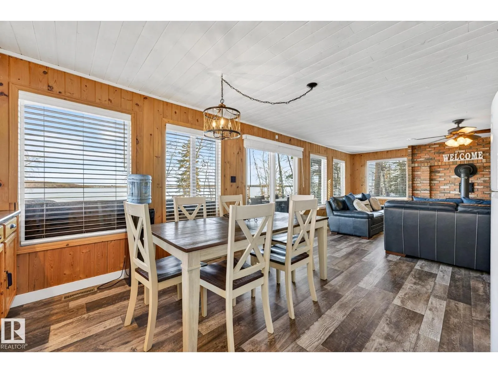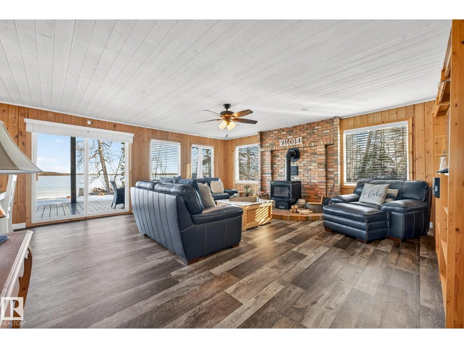 Ideal location an hour west of Edmonton and 20 mins south of Barrhead. Welcome to this immaculate and cozy four-season LAKEFRONT retreat, perfectly set on 0.27 acres and bordering environmental reserve land for added privacy and natural beauty. This thoughtfully updated property offers 3 bedrooms with closets and 2 full baths, with a major renovation completed in 2018 including all flooring, doors, casing, bathrooms, and a stunning kitchen. Natural light pours in through abundant windows, creating a bright and welcoming interior. A cozy woodstove with brick surround adds charm and comfort for year-round enjoyment. Step outside to a huge covered deck overlooking a large, flat front yard with a fire pit areaâideal for entertaining or relaxing lakeside. Gorgeous perennial beds and mature landscaping enhance the setting, all fully fenced with black chain-link. Three large storage sheds are included, one cleverly converted into a sleep shack with window and durable vinyl plank flooring. Priced to sell! (id:27476)