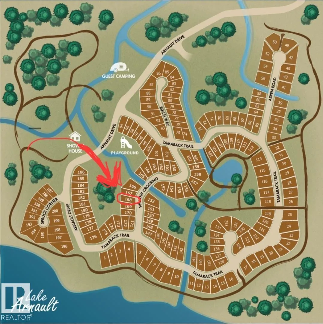 Lake Arnault RV Resort is one of those hidden gems people return to year after year! Lot #168 offers a peaceful, quiet, treed setting within this private, gated communityâan easy escape only 1 hour from Edmonton! This 0.219 acre lot gives you the space and freedom to enjoy it just as it is, or gradually create a retreat that reflects your vision. The lot includes 100-amp power, along with municipal water available from May to mid-October and a 750-gallon holding tank, so you can step right into the camping season with ease. Owners enjoy lake access, walking trails, guest camping, a playground with gazebo, boat storage, and over 140 acres of dense trees. Whether itâs mornings by the water, evenings around the fire, or weekends with family, this is where special moments happen and lasting memories are made. Close to Darwell, Alberta Beach, Entwhistle and Evansburg (id:27476)