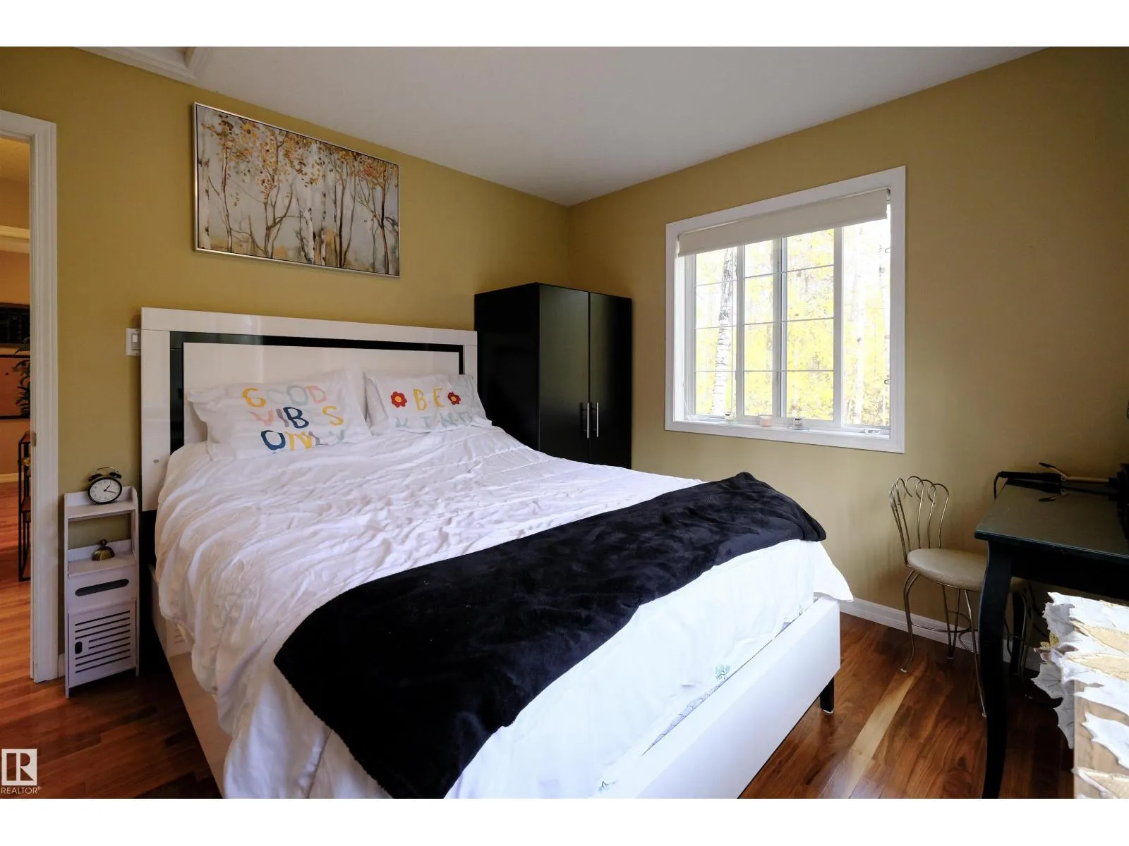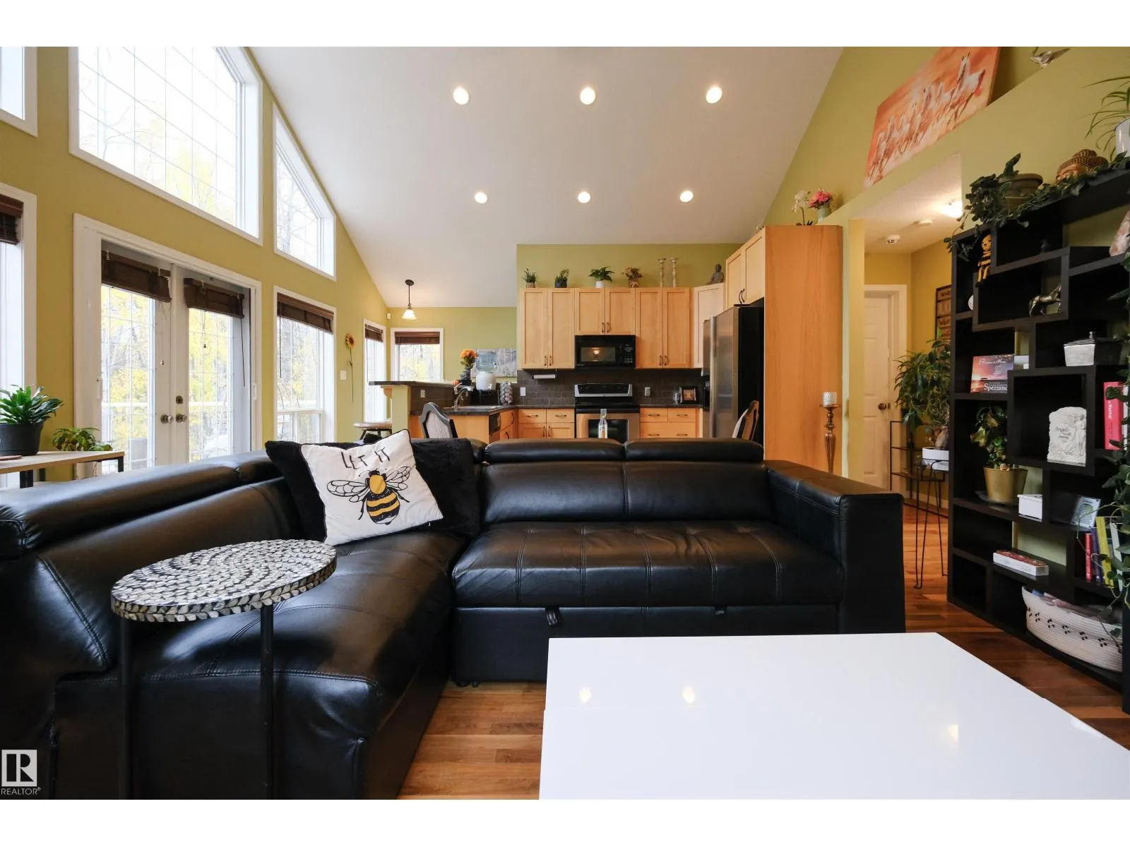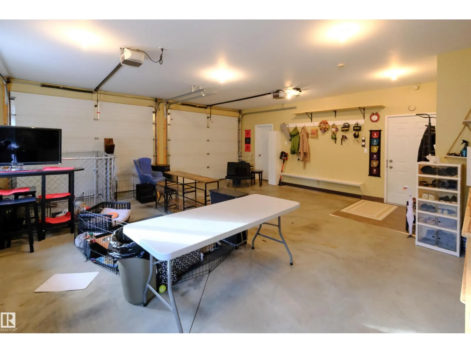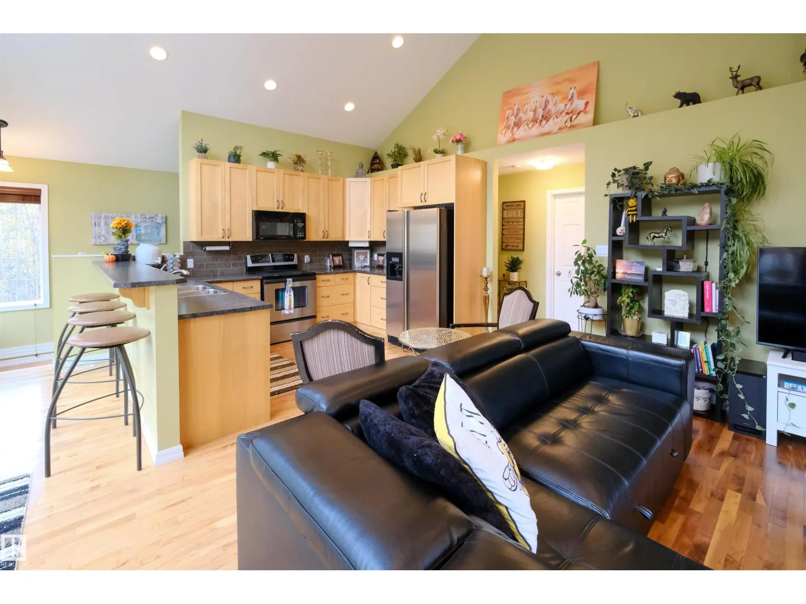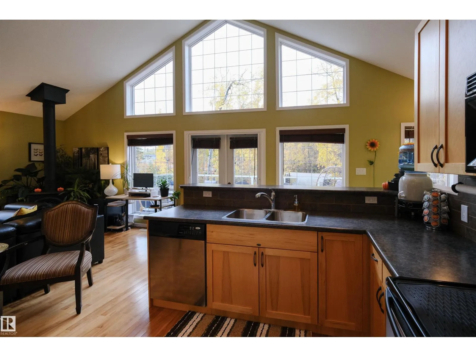 This quality-built retreat sits on a beautifully landscaped half-acre featuring a fully paved driveway. Enjoy quiet afternoons with stunning views through soaring vaulted ceilings and large windows that flood the space with light. The heated, oversized double garage is fully finished with drywall and features 8' garage doors to fit a larger vehicle or pickup. A 4-piece bathroom completes this level. Upstairs features gleaming hardwood floors, a spacious open kitchen, cozy wood-burning fireplace, two bedrooms and a full bath. A gate plus brand new chainlink fence encloses the entire property making it perfect for privacy and pets, plus there's a fire pit area. A detached shed perfect for all your toys or a workshop waiting to happen. A one-of-a-kind homestead in a welcoming rural community. Carefree country living starts here! (id:27476)