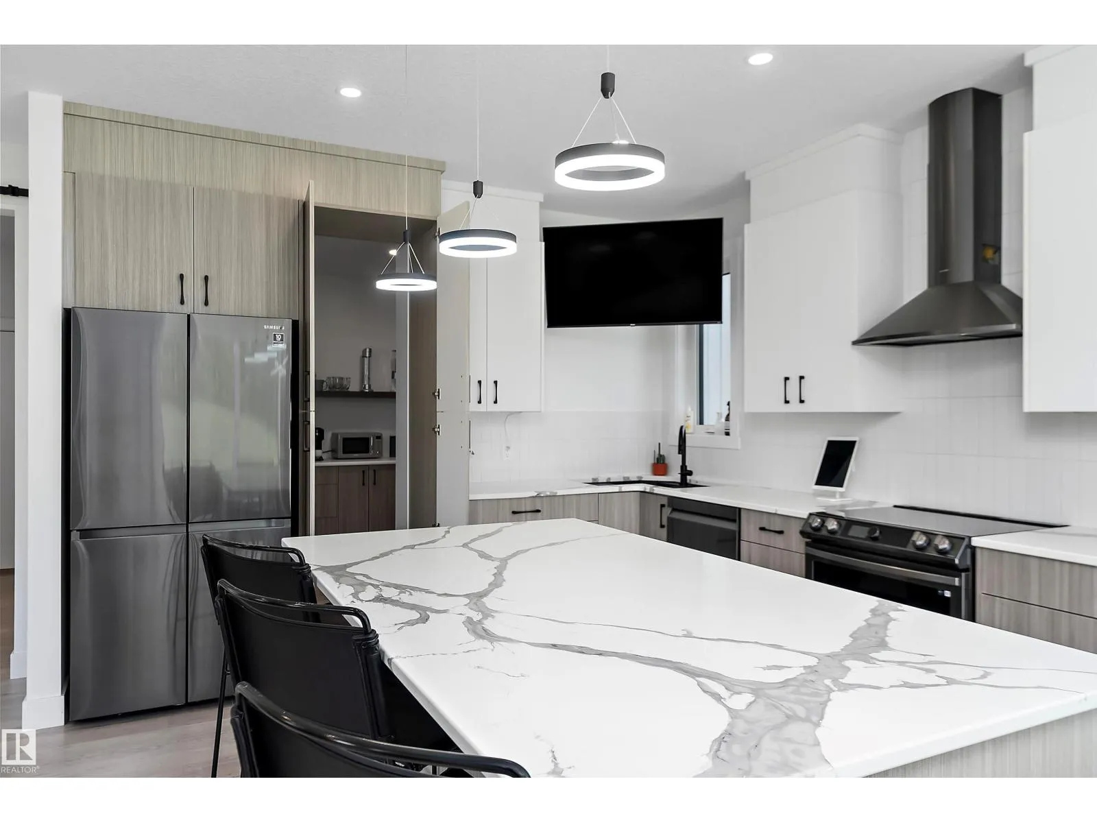 This custom-built HRD home, situated on one of the largest lots at the Estates at Waters Edge will be sure to take your breath away! From the fully loaded triple car garage with EV hook up & 2-piece bath, to the epic primary bedroom & closet with its own dedicated floor - this home is stunning. The upstairs primary bedroom closet is equipped with California closets vaulted ceilings and a centre island for storage. The primary also has soaring windows, vaulted ceilings & a thoughtfully designed laundry chute. The grand entrance leads to the open concept living space & kitchen that overlook the massive partially fenced backyard. The hidden pantry doors are a delightful surprise as you enter the giant pantry with mudroom access. The mudroom can be entered through living area as well for added convenience. The basement features 2 large bedrooms, laundry, 4-piece bath, huge rec room & the cherry on top is the hidden media room tucked away behind barn doors! With quick access to HWY 43 - this one is a must see! (id:27476)