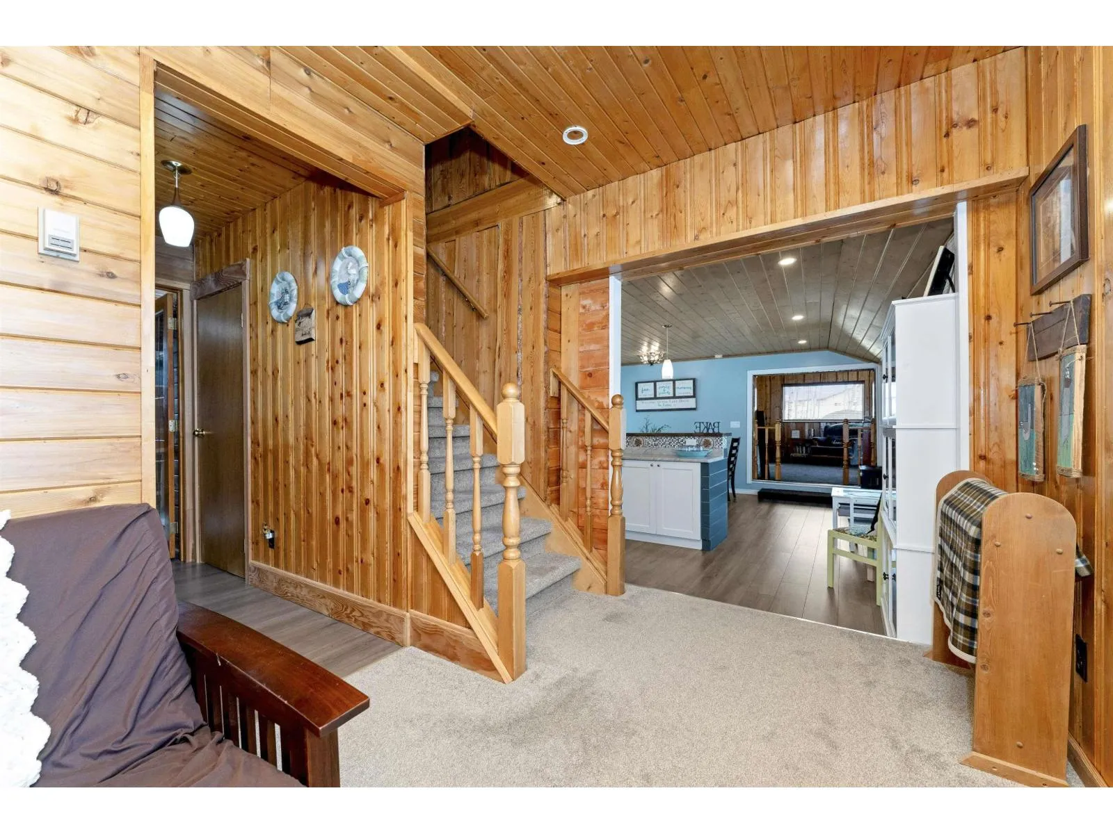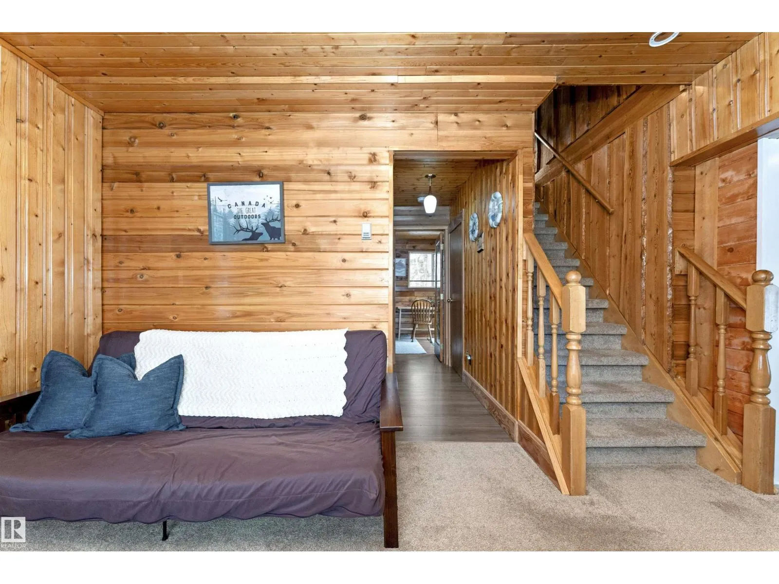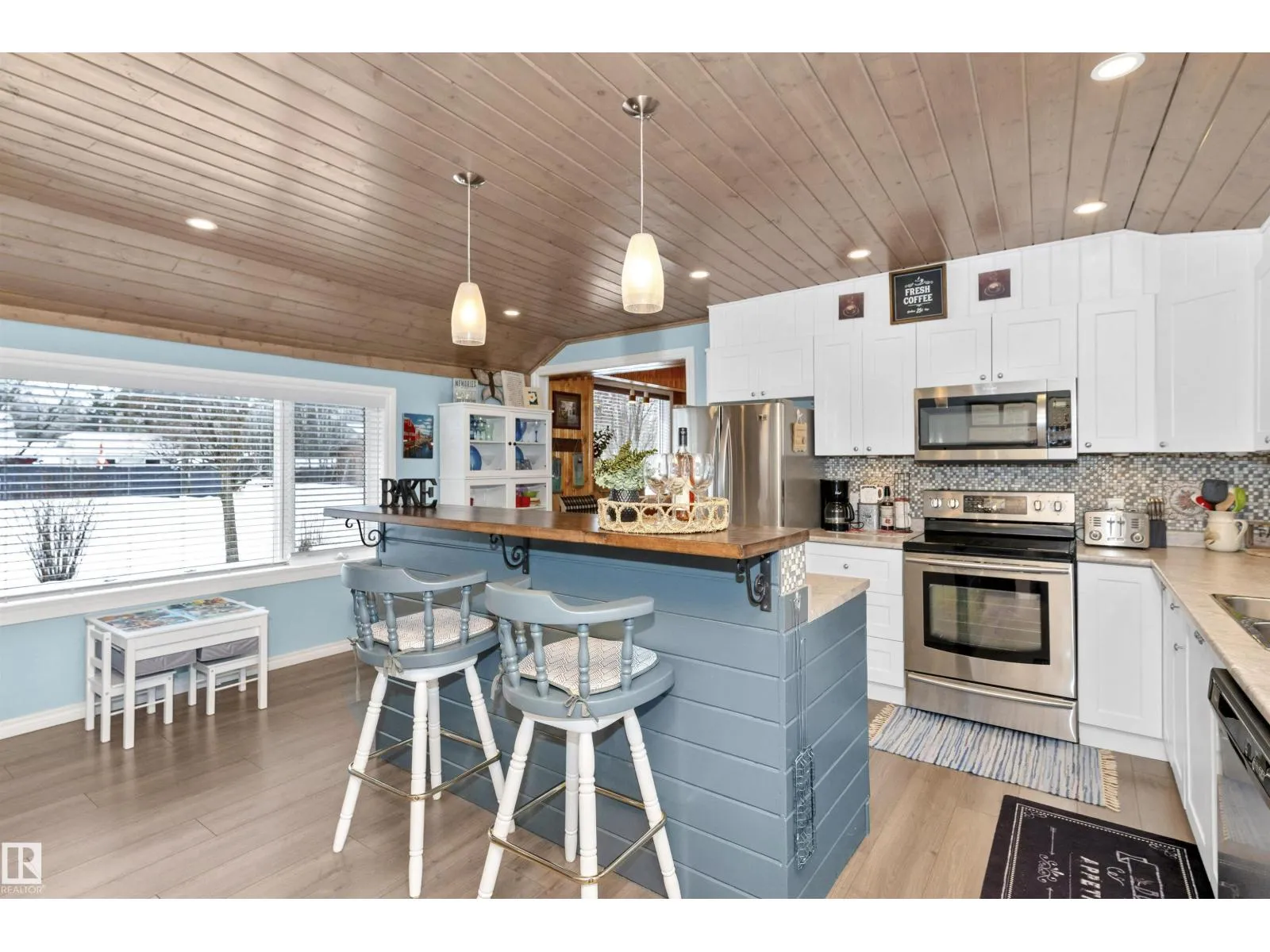 Find your year round home or relaxing get-away in your fully furnished lakeside abode. Warm inviting wood and plenty of sunshine through the numerous windows welcomes as you enter. The Living room is anchored by a stone gas fireplace that blends in with the woodsy feel. The kitchen has been redone with lots of counter space, white cupboards, S/S appliances & generous breakfast bar. Large dining area with plenty of room to entertain. One bedroom on the main level with sliding doors to the large deck. The primary bedroom has its own level with a large ensuite complete with deep tub. There is a separate den area with futon for further guests who come to visit. The home is fully emcompassed by greenery on all four sides. Tons of exterior storage & parking. This home is approx 100 meters to the lake with a dock, and boat launch! The property includes furniture, boat lift & docks. Located in the quiet community of West Cove, just 8 minutes to Darwell or 15 mins to Alberta Beach. (id:27476)
