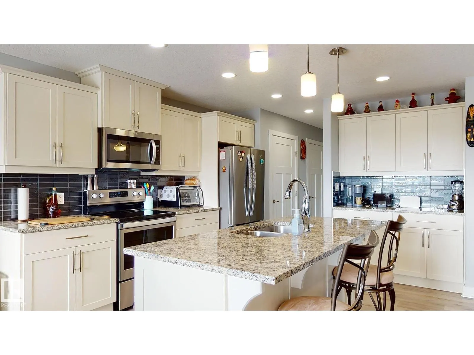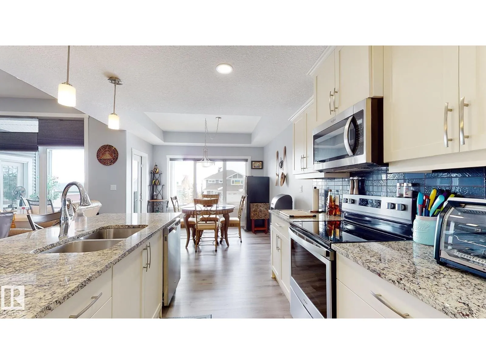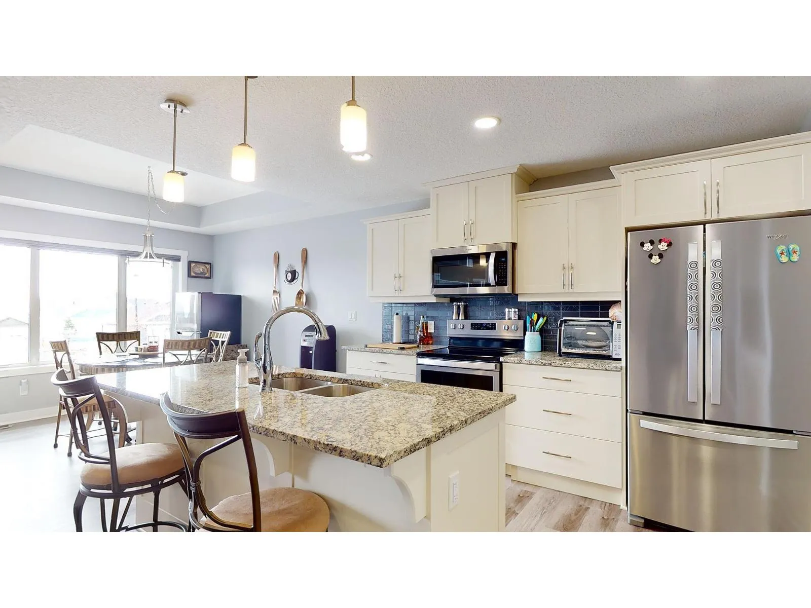 WELCOME to this gorgeous raised bungalow located in the prestigious gated community of The Estates of Waters Edge! This beautifully designed home offers 4 bedrooms and 3 full bathrooms, featuring an open-concept floor plan with 10-foot ceilings, luxury vinyl plank flooring, granite countertops, and elegant neutral cabinetry. The spacious living area is highlighted by a cozy gas fireplace, creating the perfect setting for both everyday living and entertaining. Step outside to the covered, screened-in deck and enjoy peaceful lake views, an ideal space to relax and unwind. The oversized front attached garage provides ample room for vehicles and storage.The fully finished lower level boasts large, bright windows and an abundance of additional living and entertaining space, completed with the same high-quality Craftsman-style finishes as the upper level. Waters Edge offers true resort-style living with exclusive access to a private pool, clubhouse, fitness centre, playground, and boat launch. (id:27476)