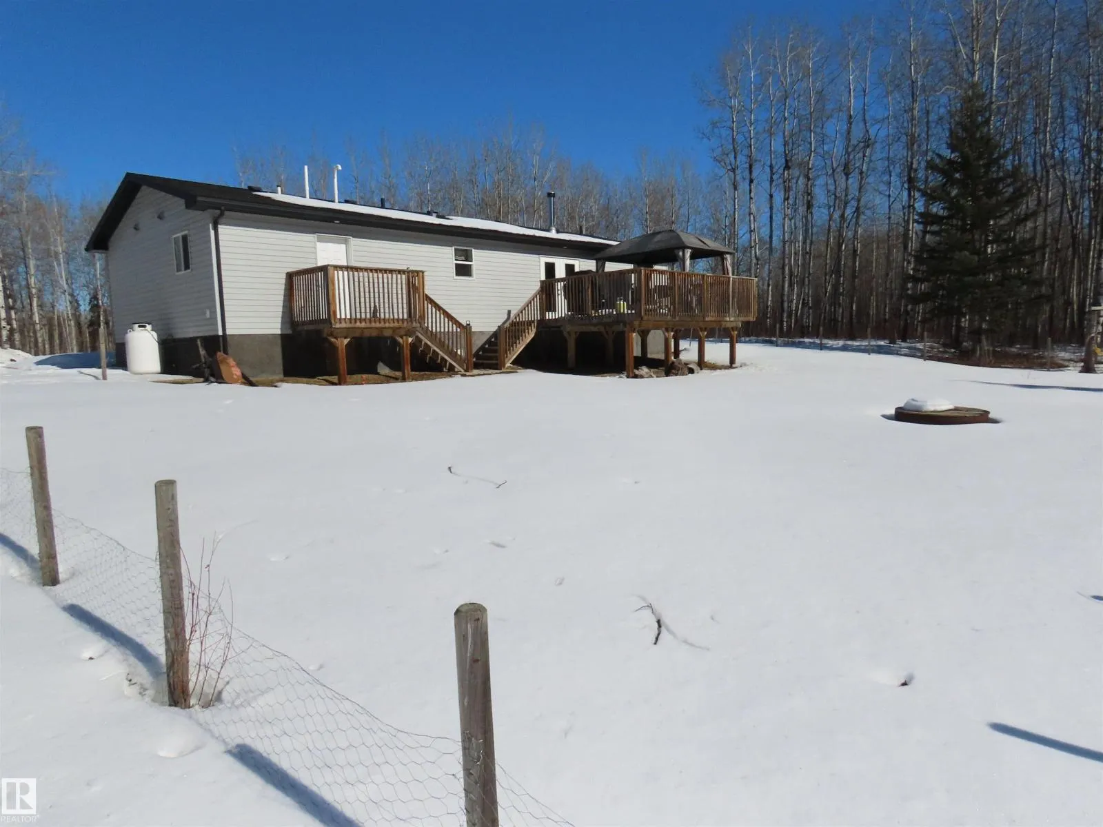 UPSCALE 1450 sq. ft. modular home in very private setting. Very popular Californian floor plan with Master bedroom and bath at one end and the other two bedrooms and bath at the other end. Fully treed lot with large deck and Gazebo. Ten minutes to K-9 school, shopping, golfing and recreational facilities in Alberta Breach.(Lac Ste Anne). (id:27476)