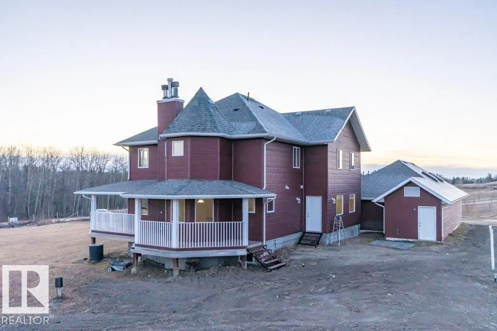 Welcome to this 2886sq ft modern Victorian 2 storey built in 2007 on 6.23 rolling ACRES offers 4,266sq ft of total living space, 4+1 bedrooms, 4 bathrooms, POOL HOUSE that could be CONVERTED into in-law suite/guest house/shop , GEOTHERMAL heating/cooling and DOUBLE GARAGE. The wrap around deck greets you as you enter the foyer. The large L/R with W/B fireplace, large island kitchen with S/S Appliances, W/I pantry, breakfast nook and extra-large formal dining for entertaining, office/den, 3pc bath with garage access. Upstairs you will find a private primary suite with sitting area, W/B fireplace, 4pc bath, soaker tub, W/I closet, laundry room, 4pc bath and 3 additional spacious bedrooms. The basement has in-floor heating, there is a bedroom, rec room and wet bar perfect for game night, W/B wood stove, theater room and 2pc bath. Property is fully page fenced and prepped for future 40X80â shop. PAVED roads to driveway. Located just a few minutes to RIDGE VALLEY K-6 SCHOOL . Perfect for a home-based business. (id:27476)