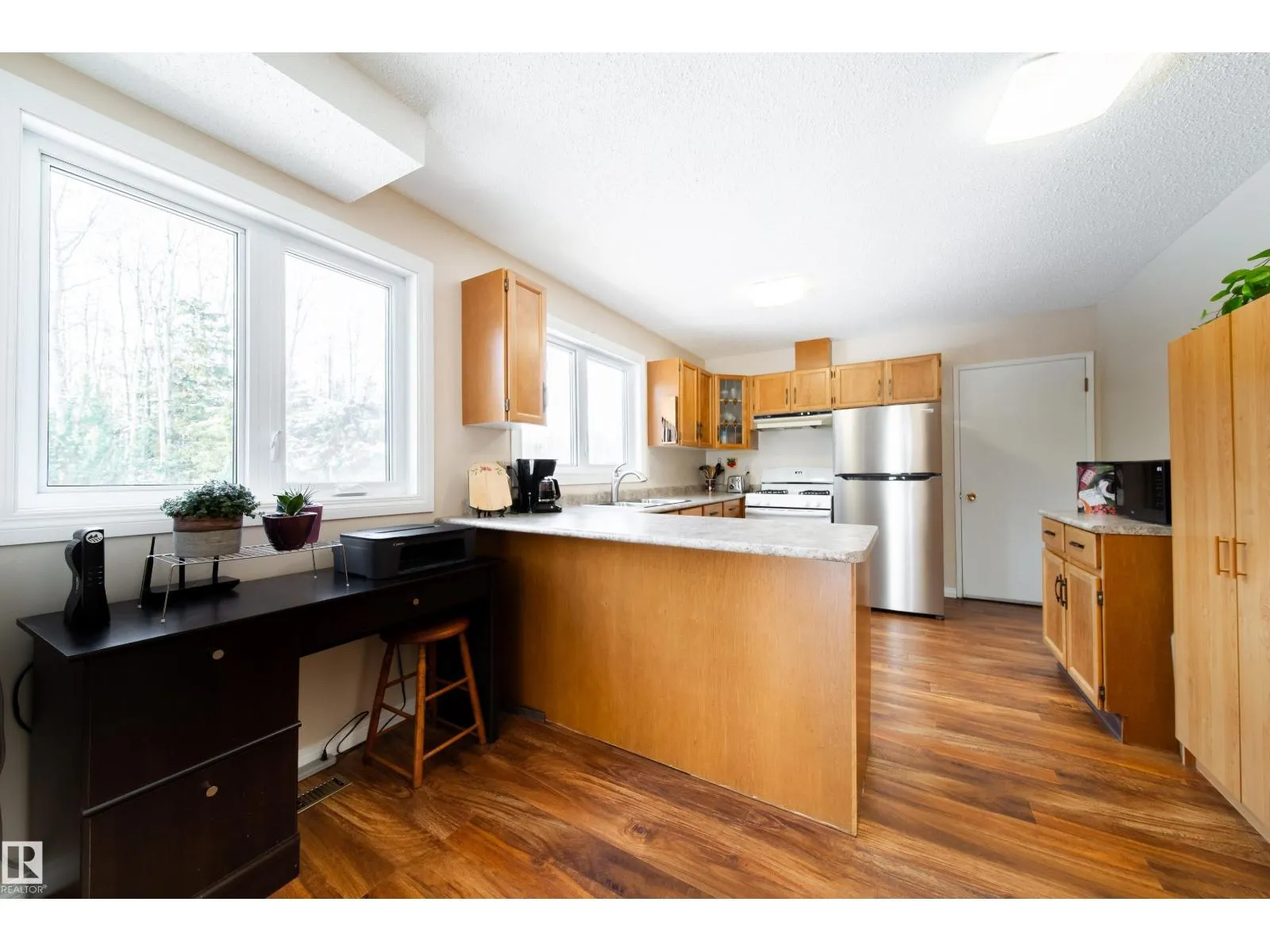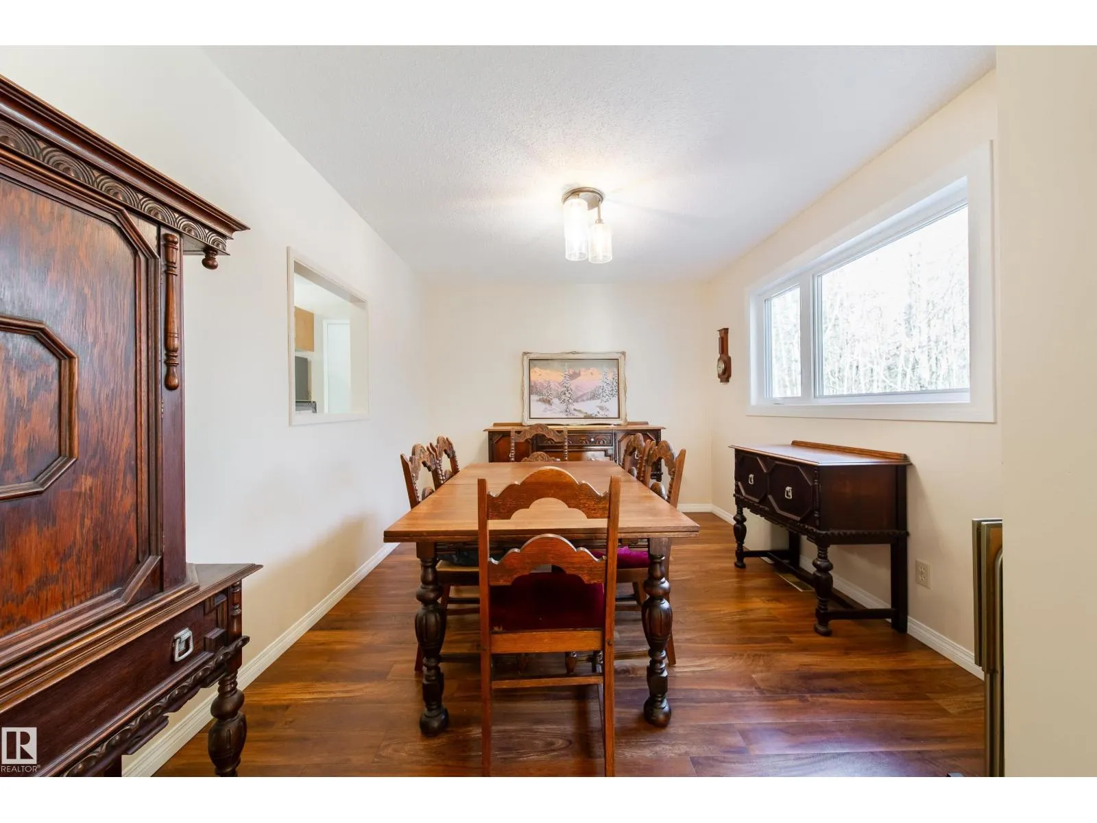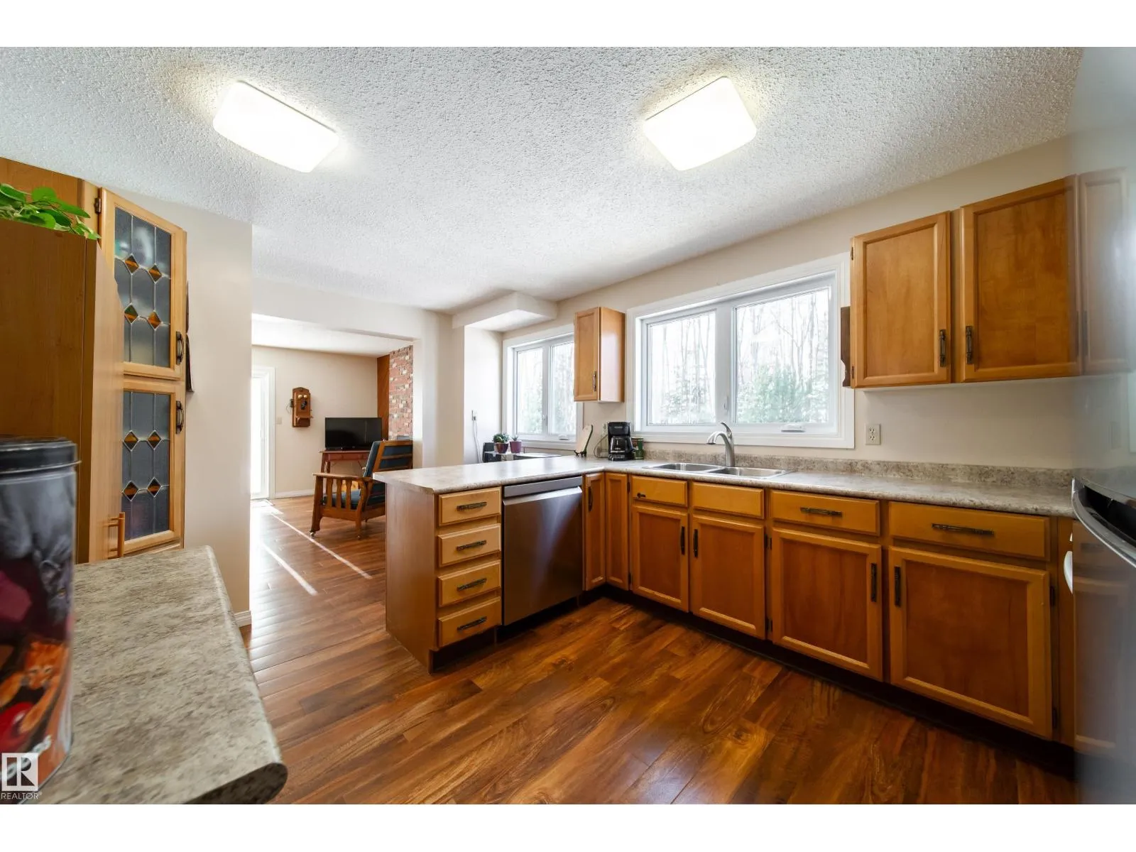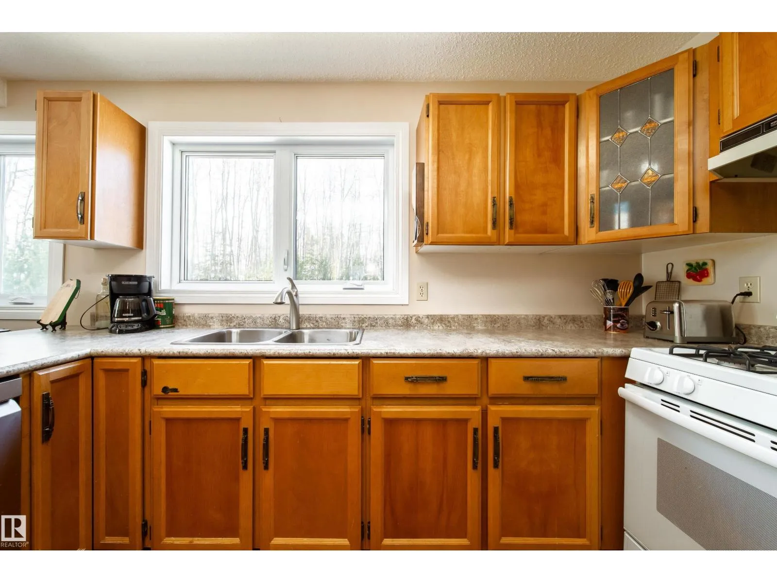 Escape to peaceful country living in this beautifully maintained, custom-built home in Lakewood Estates. The bright main living area features soaring ceilings & expansive windows, creating a spacious, light-filled environment. Relax in the separate family room with its cozy wood-burning fireplace, or step through patio doors to the deck & large yard beyond. The country-style kitchen offers abundant maple cabinetry & direct access to the attached garage for easy unloading. Upstairs, the generous primary bedroom includes an ensuite & large closet, complemented by two additional bedrooms & a full bathâideal for family or guests. The unfinished basement awaits your personal touch. Enjoy privacy & outdoor fun with open yard space & a forested perimeter. With both an attached double garage and a detached single garage, you'll have plenty of storage and workspace. Updates like newer windows and flooring, a metal roof, and a recent pressure tank add peace of mind. Experience acreage living at it's finest! (id:27476)
