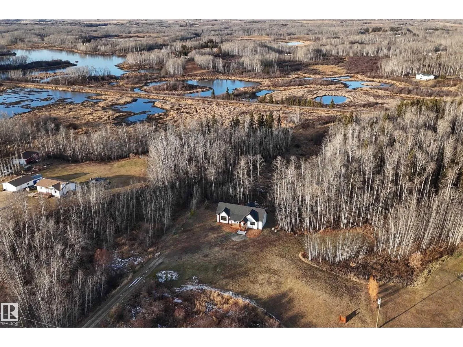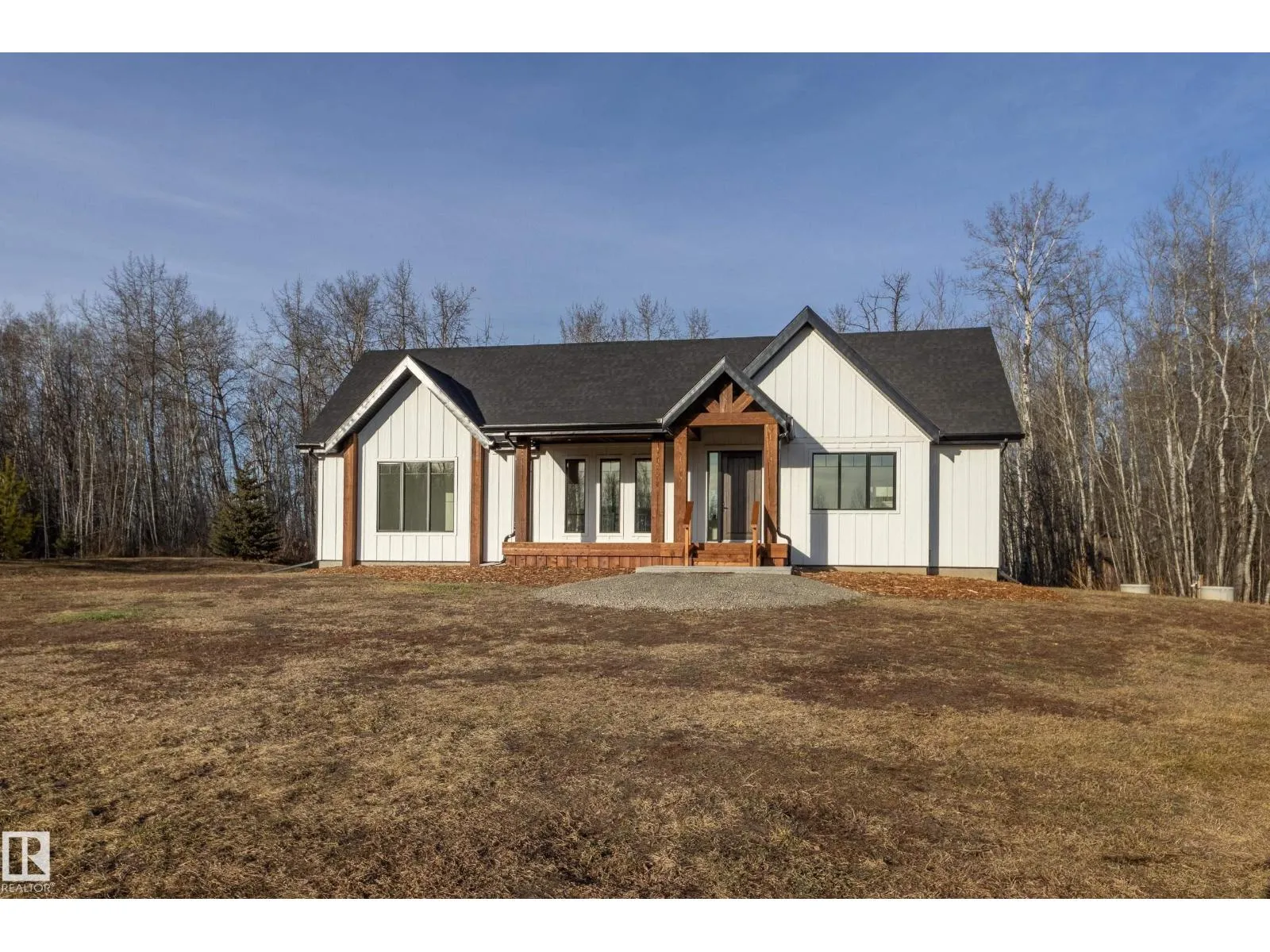 Discover a new 1734 sq ft custom bungalow on 4.55 private acres, blending luxury craftsmanship with serene natural living. Fantastic curb appeal with gorgeous fir beams and board/batten LP Smart Siding. Inside, the open layout with 3 main floor bedrooms and 2.5 baths offers spacious comfort while the large basement with in-floor heating offers endless potential. LUX triple-pane windows, 8' exterior doors, custom trim/tile work, quartz counters and ceiling height backsplash are just a few of the quality finishings. A 36 gas fireplace anchors the living area with warmth and ambiance. Primary features walk-in + 3pc ensuite with heated floor (incl shower)! Step outside to a raised deck overlooking untouched nature, ideal for relaxing, hosting, or simply watching the abundant wildlife. Tucked among the trees, a cute bonus office studio could create the perfect guest suite, studio, or retreat! A stunning property that delivers craftsmanship, comfort, and the peaceful acreage lifestyle youâve been dreaming of. (id:27476)