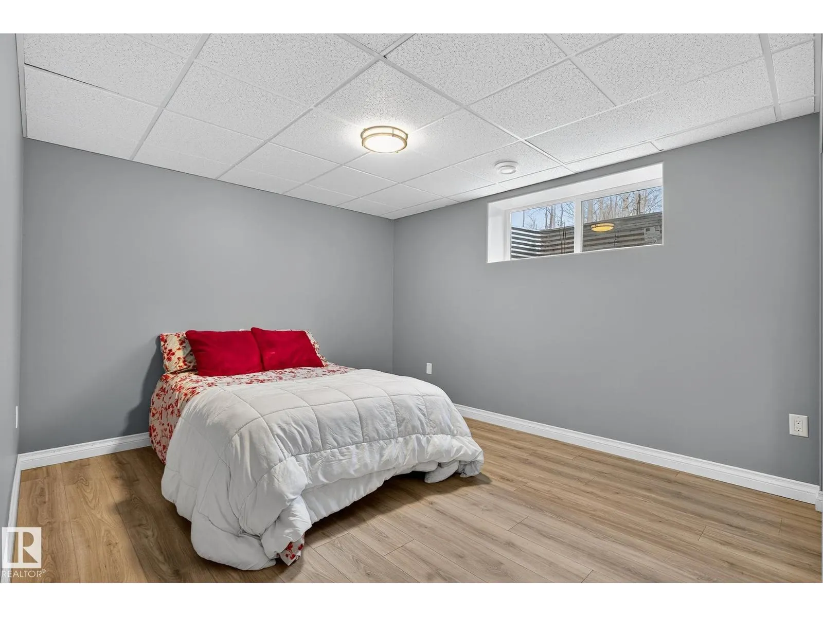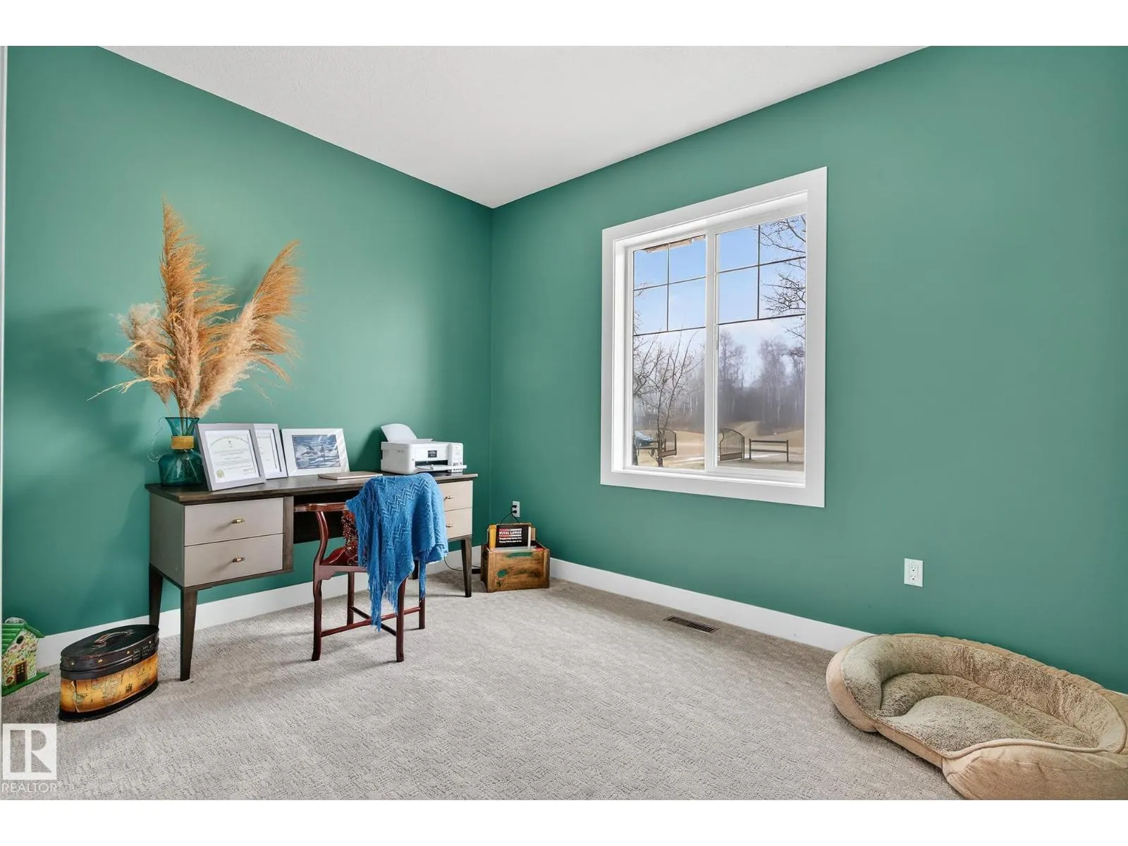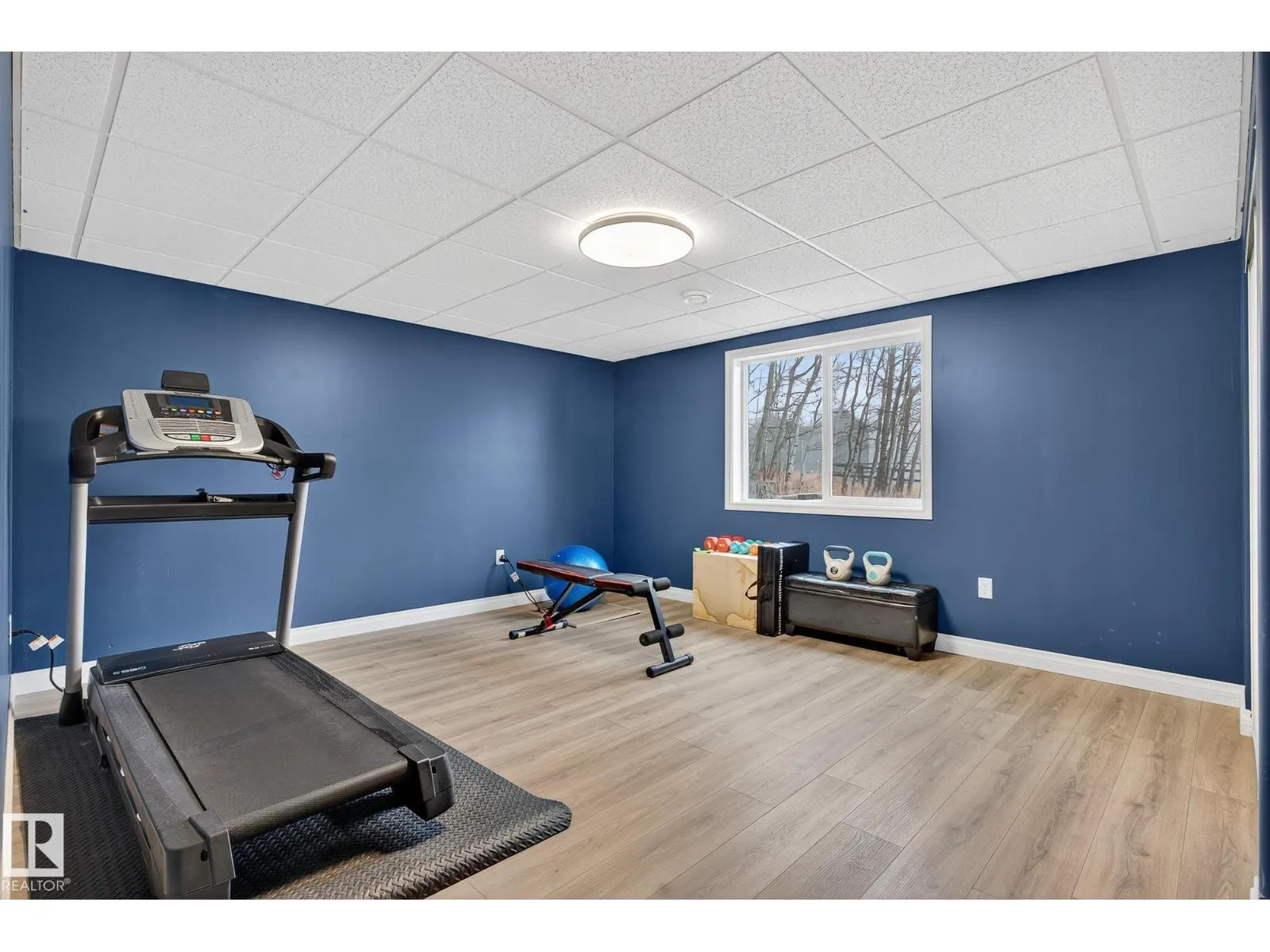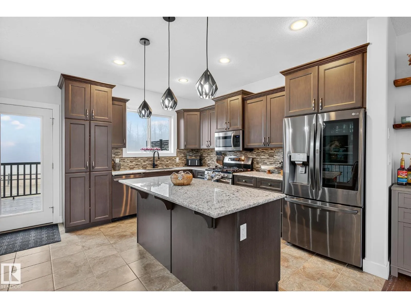 Enjoy tranquility only 10 minutes east of Onoway and 20 minutes northwest of Stony Plain with this fully finished walkout bungalow on 2+ treed acres, perfectly set up for horses. With over 2,600 sq ft of living space, this open-concept home offers 5 bedrooms, 3 full baths, a living room with stone feature wall, and a huge family room with patio doors to the walkout basement. Modern finishes include 9 ft ceilings, hand-scraped hardwood, ceramic tile, granite counters, S/S appliances, maple cabinets, and updated lighting. Upgrades include new fencing and beautiful custom gate, fridge and dishwasher, A/C and carpet (2020), new faucets, rustic shelving, fully finished basement (2023) with laminate, electric fireplace, stone accents and dimmable lighting, newer furnace (2023), washer/dryer (2021), solar exterior lights, security system, new CO2/smoke alarms, remote thermostat, south-facing yard, deck with privacy screen, new vents, fresh paint (2025), and new roof and siding on house and garage (2023). (id:27476)