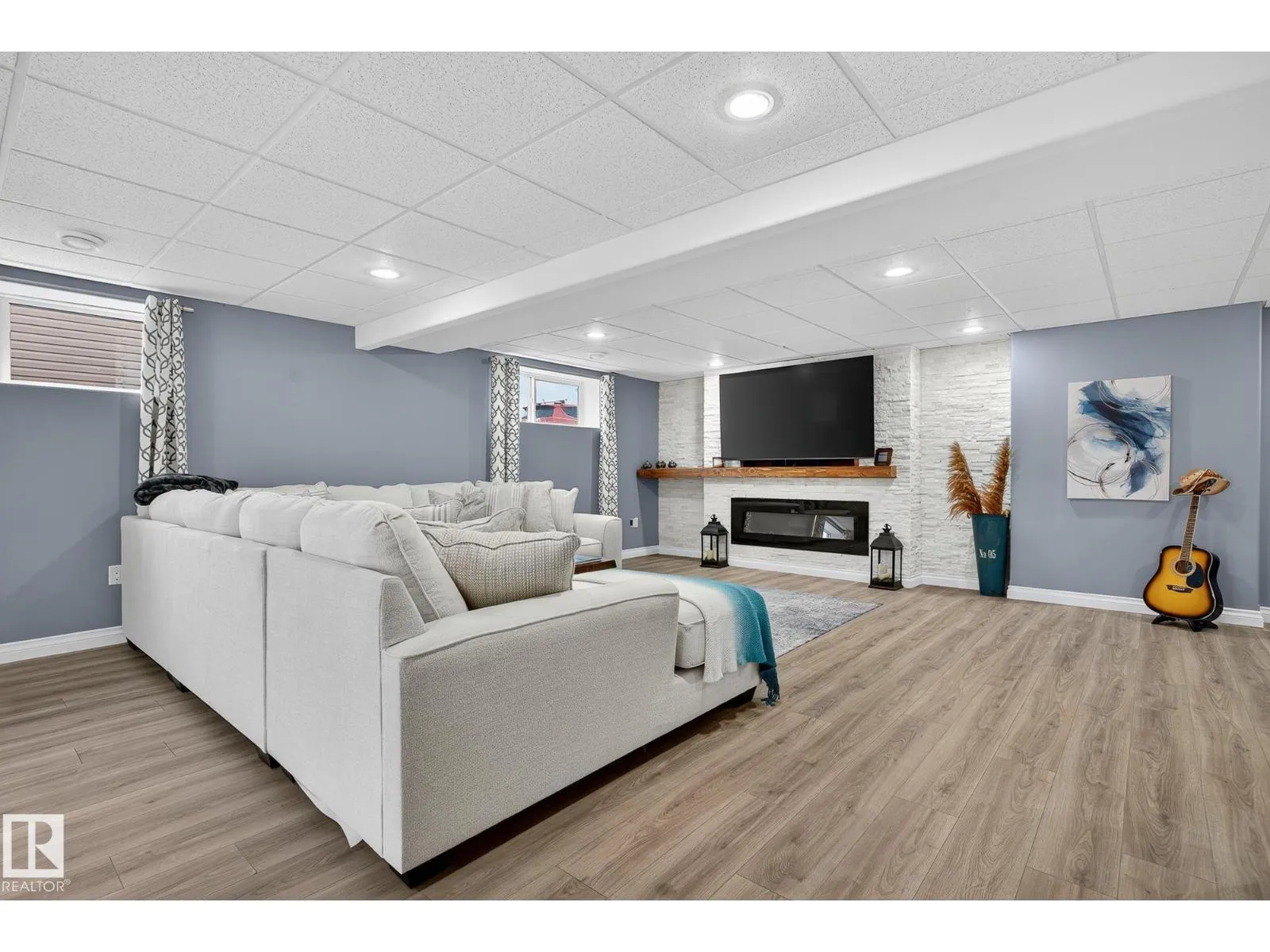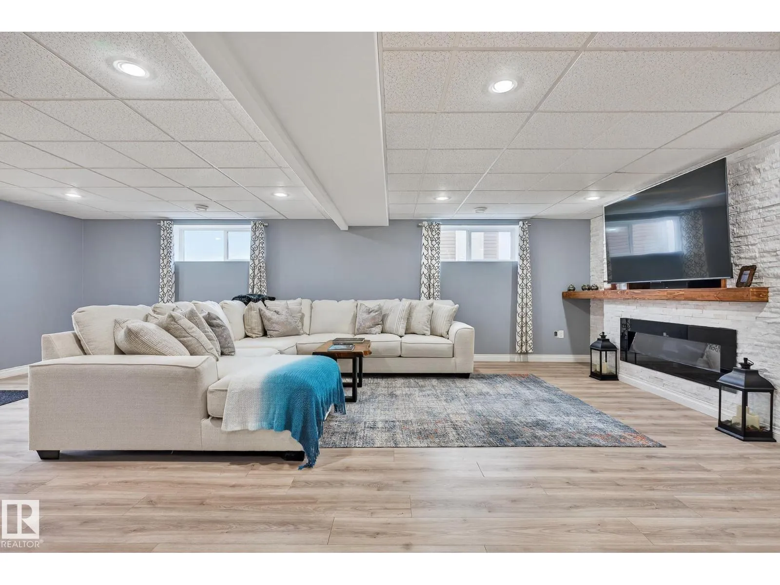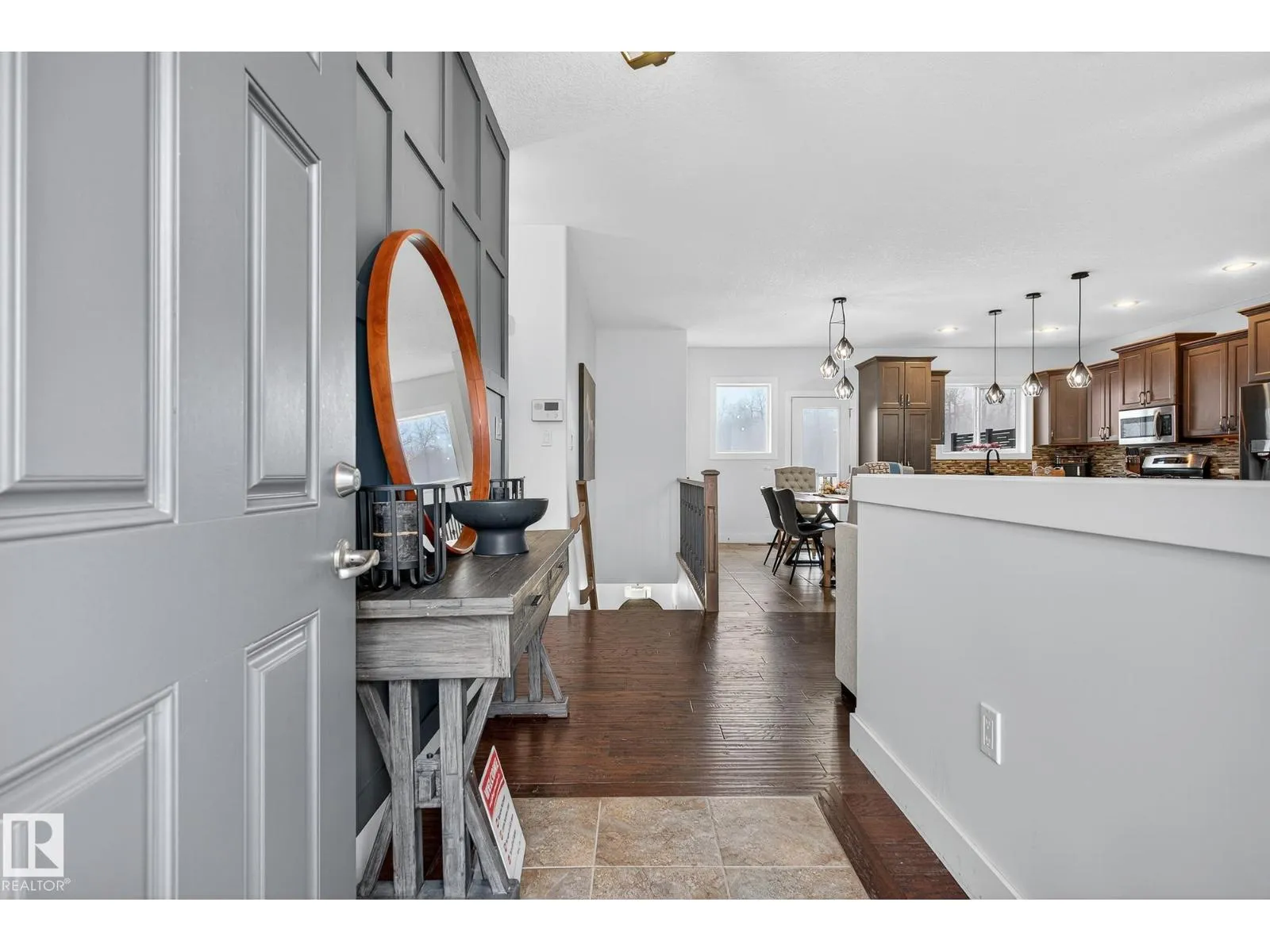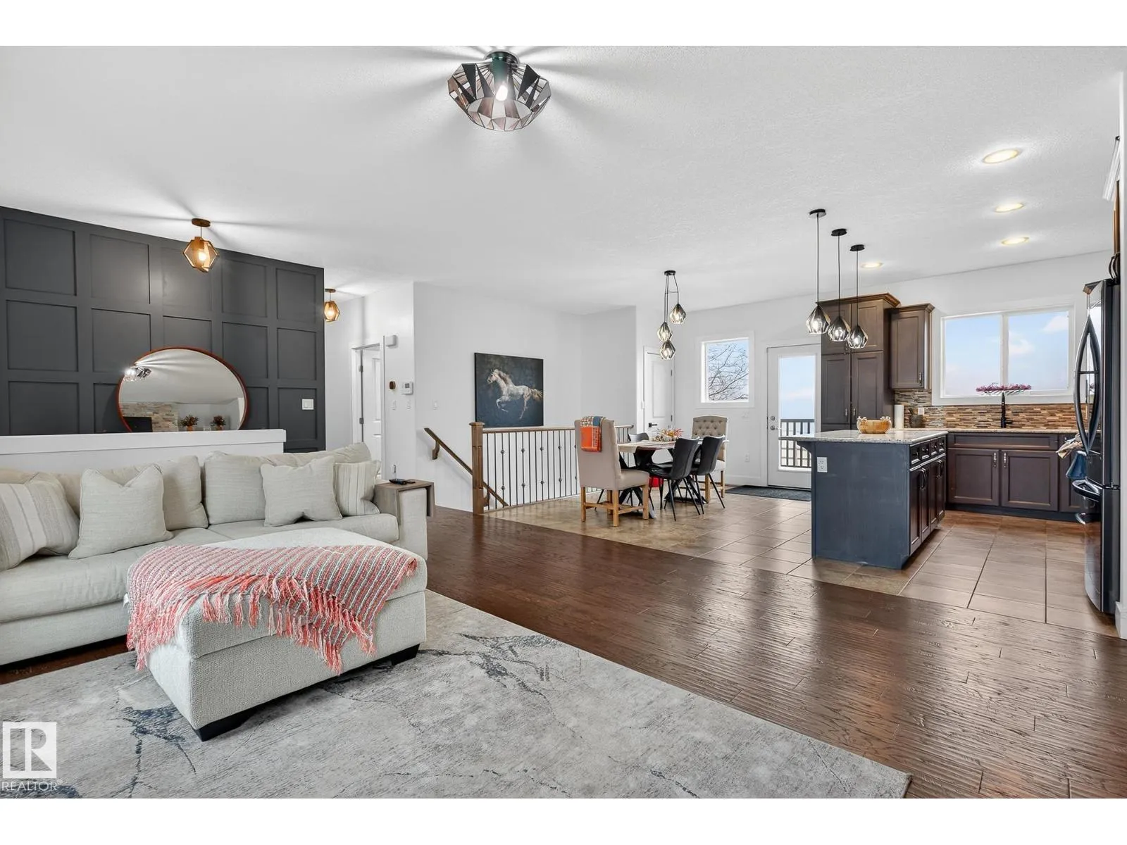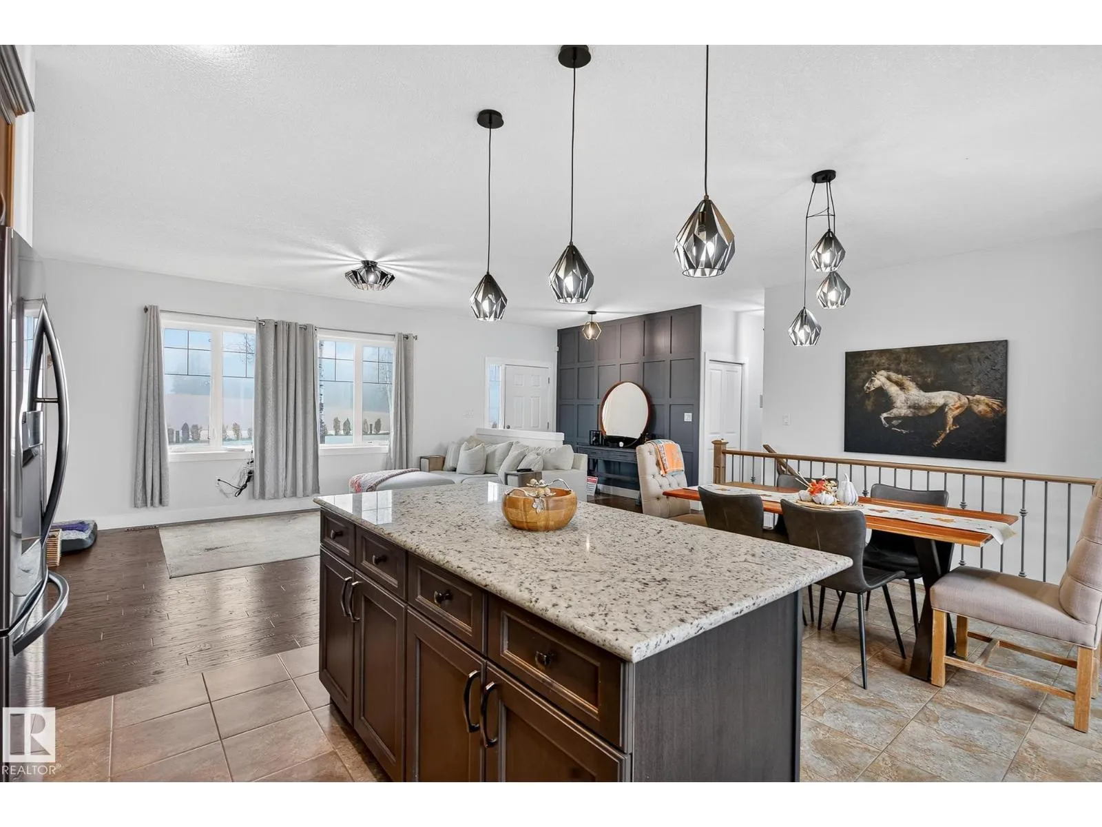 Enjoy tranquility only 10 minutes east of Onoway and 20 minutes northwest of Stony Plain with this fully finished walkout bungalow on 2+ treed acres, perfectly set up for horses. With over 2,600 sq ft of living space, this open-concept home offers 5 bedrooms, 3 full baths, a living room with stone feature wall, and a huge family room with patio doors to the walkout basement. Modern finishes include 9 ft ceilings, hand-scraped hardwood, ceramic tile, granite counters, S/S appliances, maple cabinets, and updated lighting. Upgrades include new fencing and beautiful custom gate, fridge and dishwasher, A/C and carpet (2020), new faucets, rustic shelving, fully finished basement (2023) with laminate, electric fireplace, stone accents and dimmable lighting, newer furnace (2023), washer/dryer (2021), solar exterior lights, security system, new CO2/smoke alarms, remote thermostat, south-facing yard, deck with privacy screen, new vents, fresh paint (2025), and new roof and siding on house and garage (2023). (id:27476)