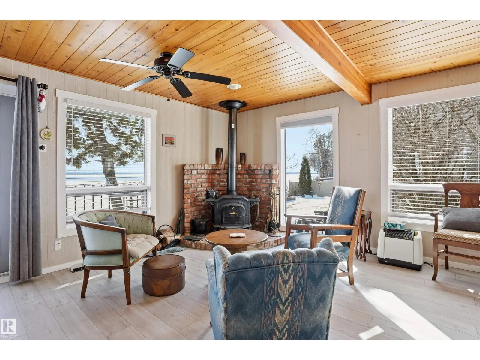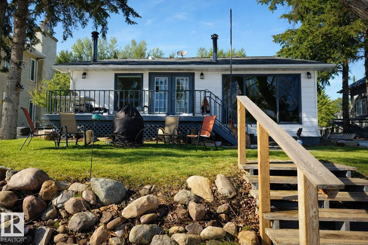 LAKEFRONT LIVING IN ROSS HAVEN! Immaculate 4-season, 1.5 storey home in the Summer Village of Ross Haven, Lac Ste. Anne County. Offering 1,720 sq ft, this well-maintained property features 3 bedrooms, 2 bathrooms, a cozy wood-burning fireplace, and a spacious kitchen open to the dining area. Enjoy lake views year-round from the sunroom. Above the oversized double garage is a self-contained 2-bedroom suiteâperfect for guests or extended family. Recent upgrades include furnace, windows, shingles, lighting, window coverings, and garden doors. Set on a beautiful 55 ft treed lot designed for privacy and outdoor enjoyment. Just 45 minutes from Edmonton, this property offers the perfect combination of comfort, functionality, and lakefront lifestyle. (id:27476)