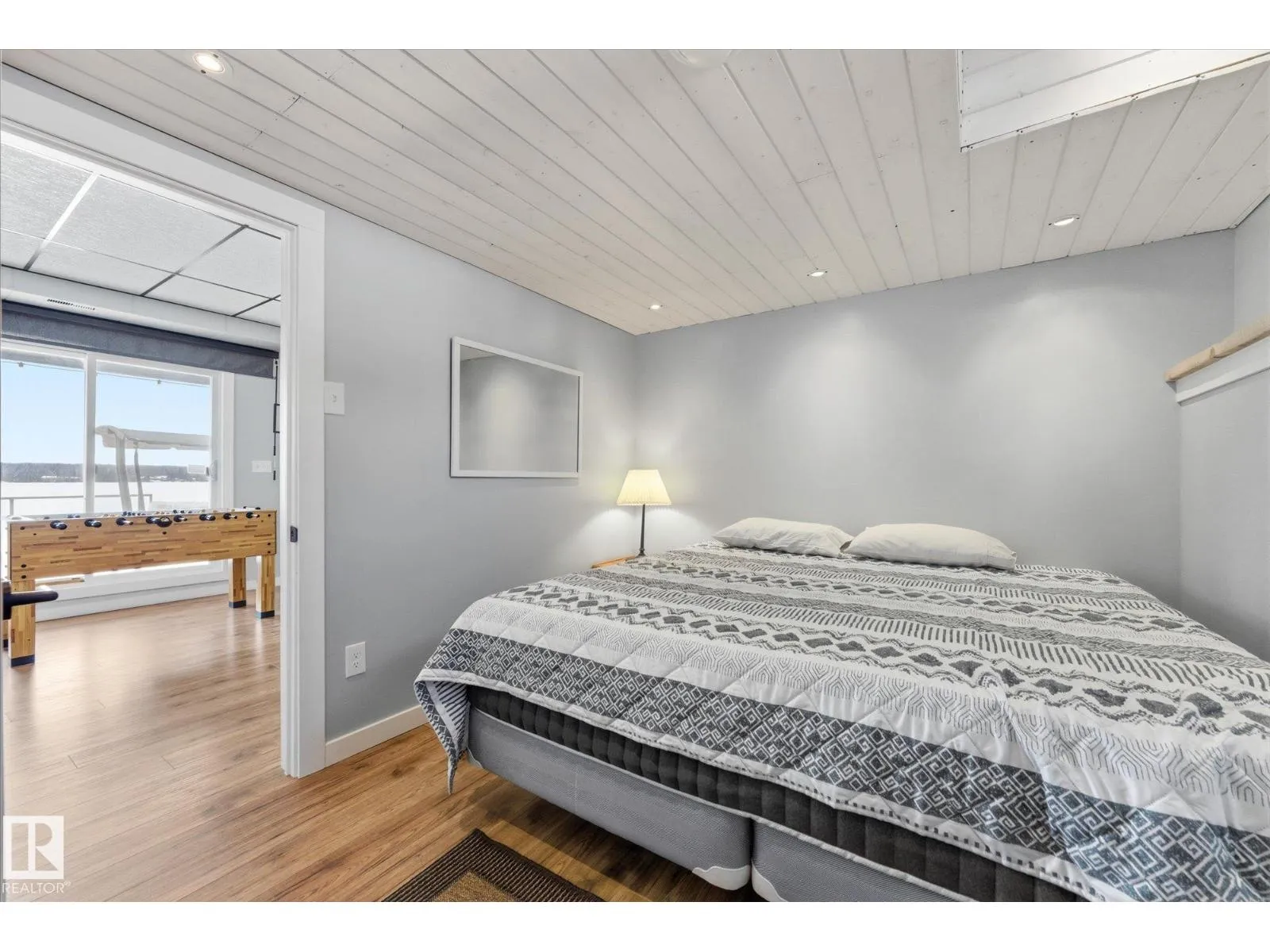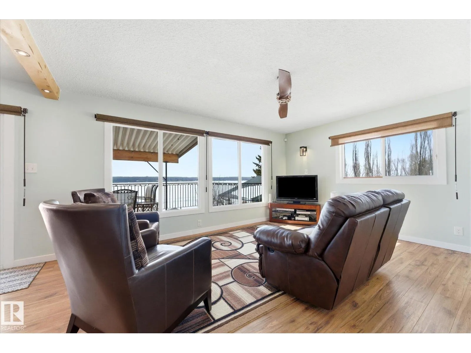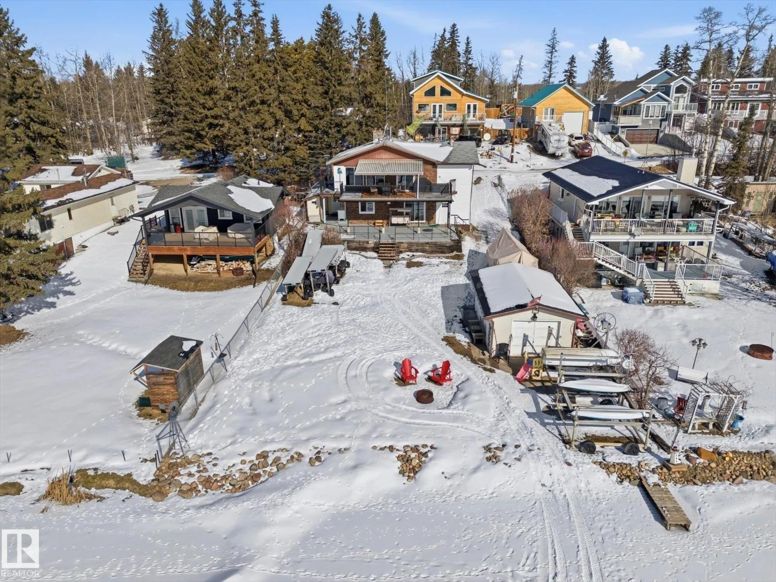 The lake place everyone wants to come back to. Full lakefront walkout bungalow on Isle Lake, set on a quiet no-through road in the Summer Village of South View. Built in 2010, the home offers two bright, lake-facing gathering areas with large windows, giving extended family & guests both connection & separation. With three bedrooms plus a separate four-season flex room (approx. 110â120 sq. ft. with its own exterior access), thereâs room for family & guests. Covered outdoor spaces on both levelsâa spacious upper deck & fully covered lower patioâextend your time outside in changing weather, while the walkout basement provides direct lake access. The fenced yard adds peace of mind, & the detached drive-through garage functions as a boathouse with overhead doors at both ends. An improved shoreline enhances usability & long-term enjoyment. Located in a well-run community with a park, playground, & boat launch, where lake life stretches from summer days on the water to winter skating & sunset evenings. (id:27476)