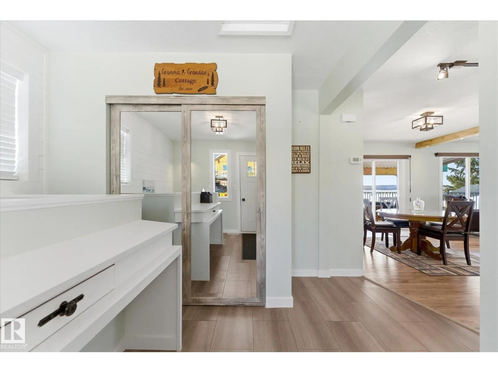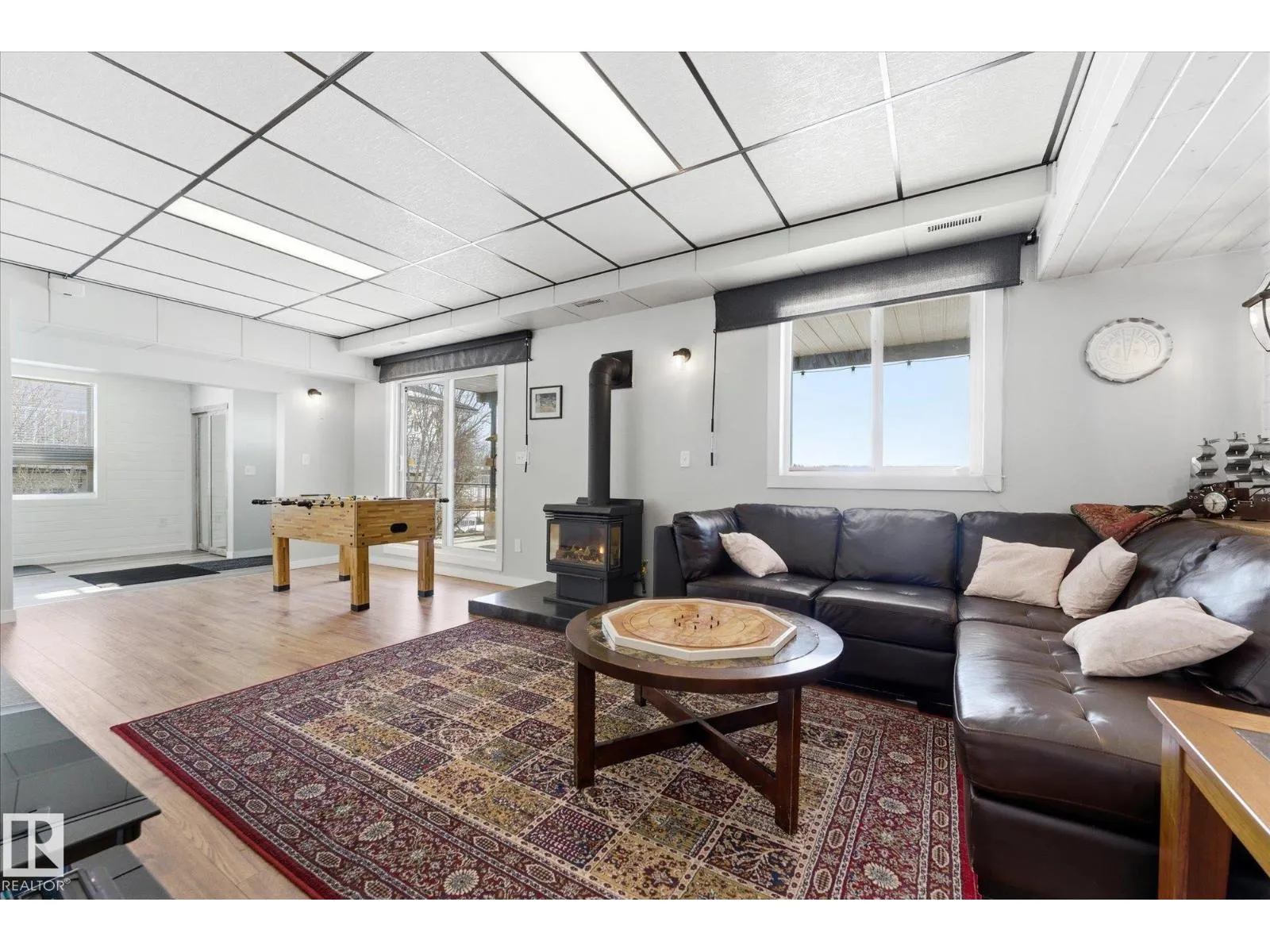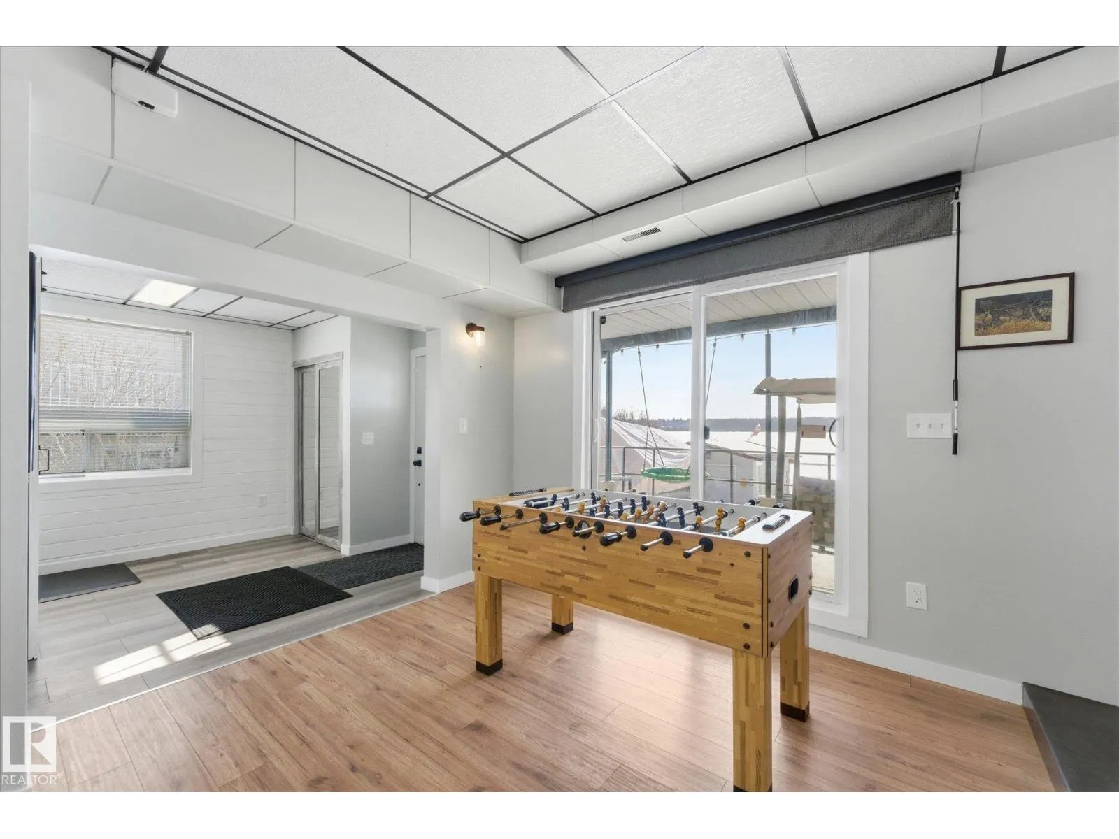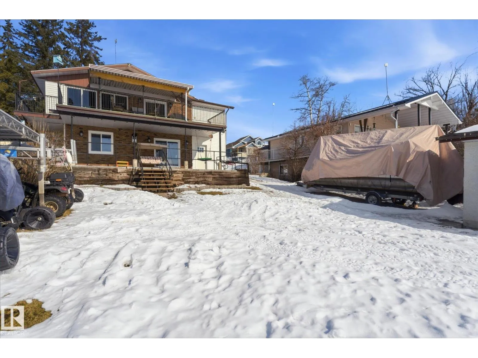 The lake place everyone wants to come back to. Full lakefront walkout bungalow on Isle Lake, set on a quiet no-through road in the Summer Village of South View. Built in 2010, the home offers two bright, lake-facing gathering areas with large windows, giving extended family & guests both connection & separation. With three bedrooms plus a separate four-season flex room (approx. 110â120 sq. ft. with its own exterior access), thereâs room for family & guests. Covered outdoor spaces on both levelsâa spacious upper deck & fully covered lower patioâextend your time outside in changing weather, while the walkout basement provides direct lake access. The fenced yard adds peace of mind, & the detached drive-through garage functions as a boathouse with overhead doors at both ends. An improved shoreline enhances usability & long-term enjoyment. Located in a well-run community with a park, playground, & boat launch, where lake life stretches from summer days on the water to winter skating & sunset evenings. (id:27476)