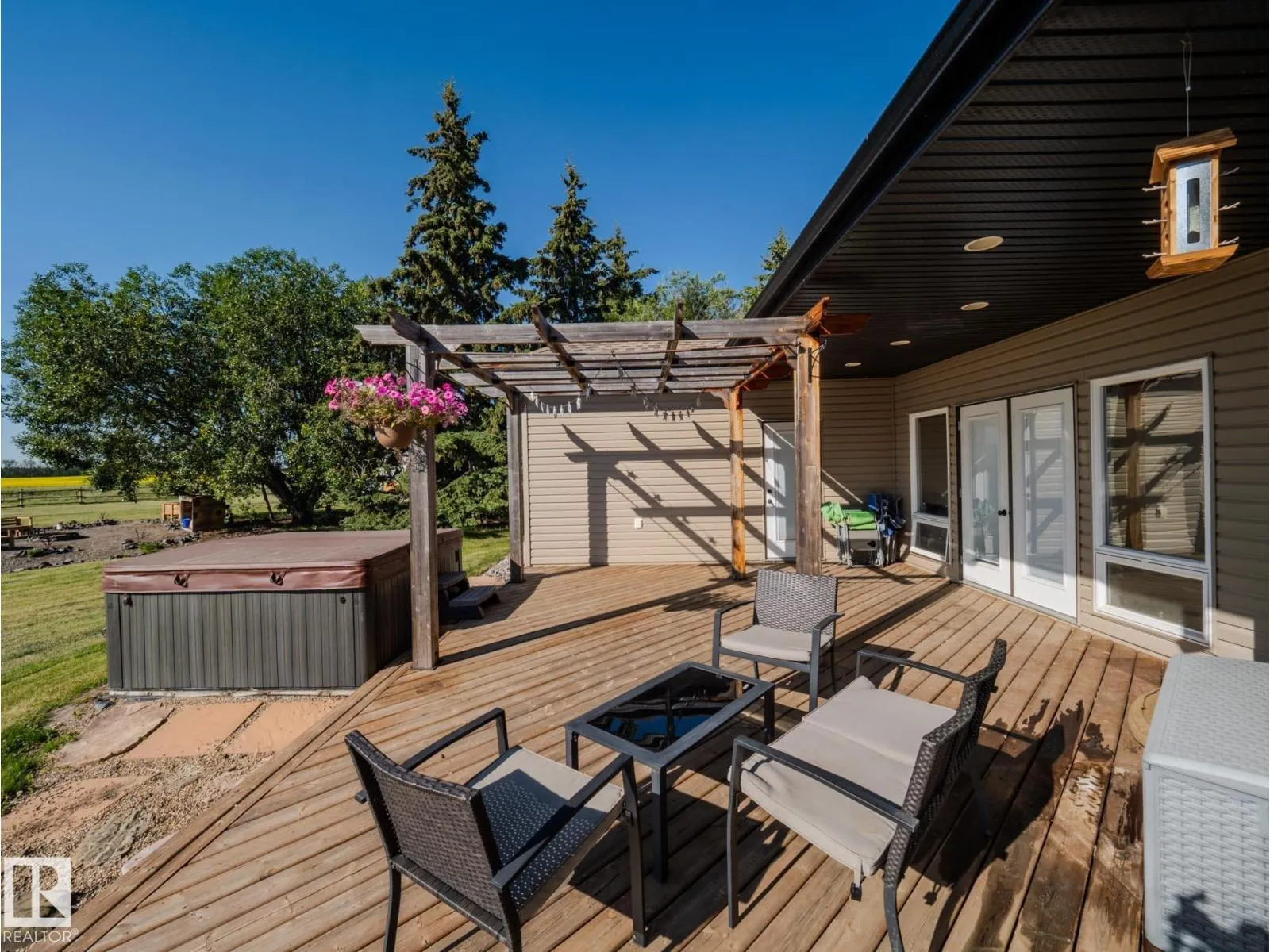 Welcome to this amazing property in Lac Ste Anne County! This home was custom built with you in mind! The grande foye has a dual sided fireplace to greet you. It has amazing beam vaulted ceilings and a beautiful cherry kitchen with a walk-through pantry. The primary bedroom has a huge 5 piece ensuite and two separate walk in closets. The second and third bedroom across the living space features a 4 piece bathroom and pocket doors for privacy. There is a detached shop with extra rooms with many possibilities, and a pole shed for extra storage. This is a dream property for horse and animal lovers, it has multiple water bowl locations, a dugout and is cross fenced. The landscape here is beautiful! The trees, rocks and flower beds will make you feel right at home. There is a second site on the property for a second dwelling as well! (id:27476)
