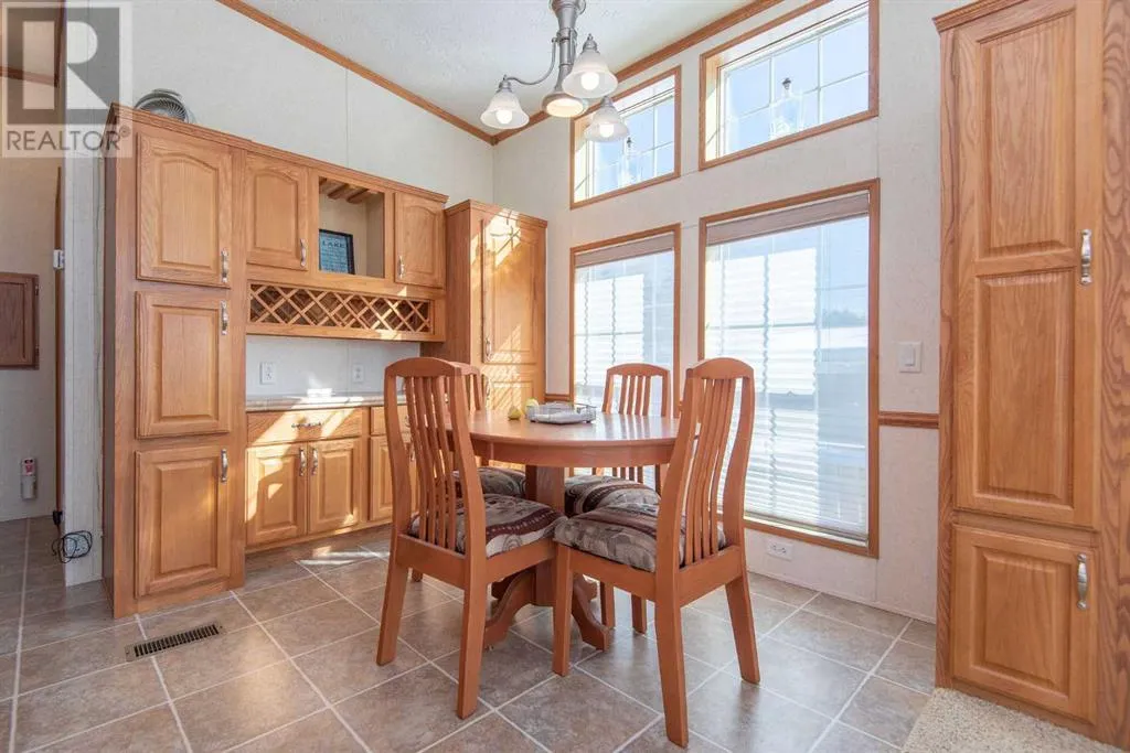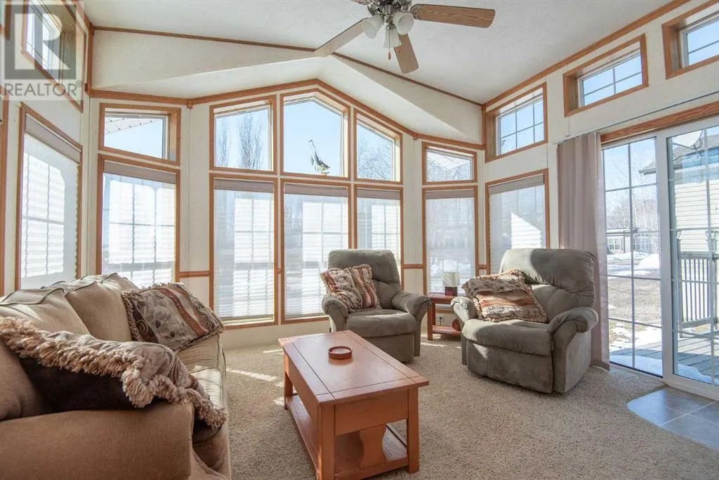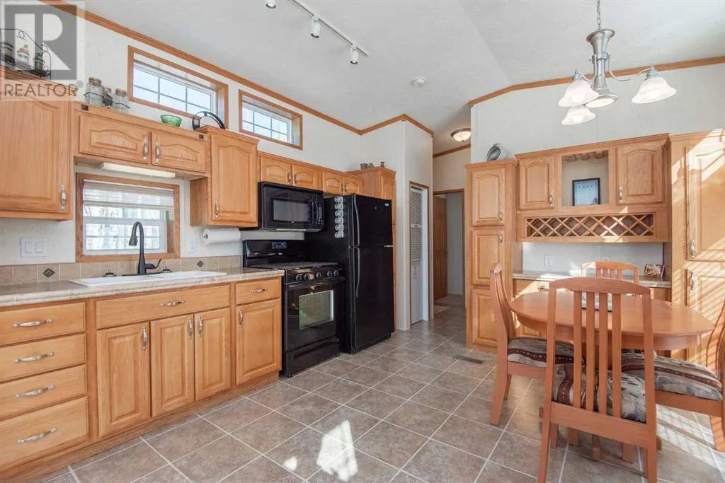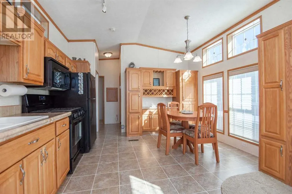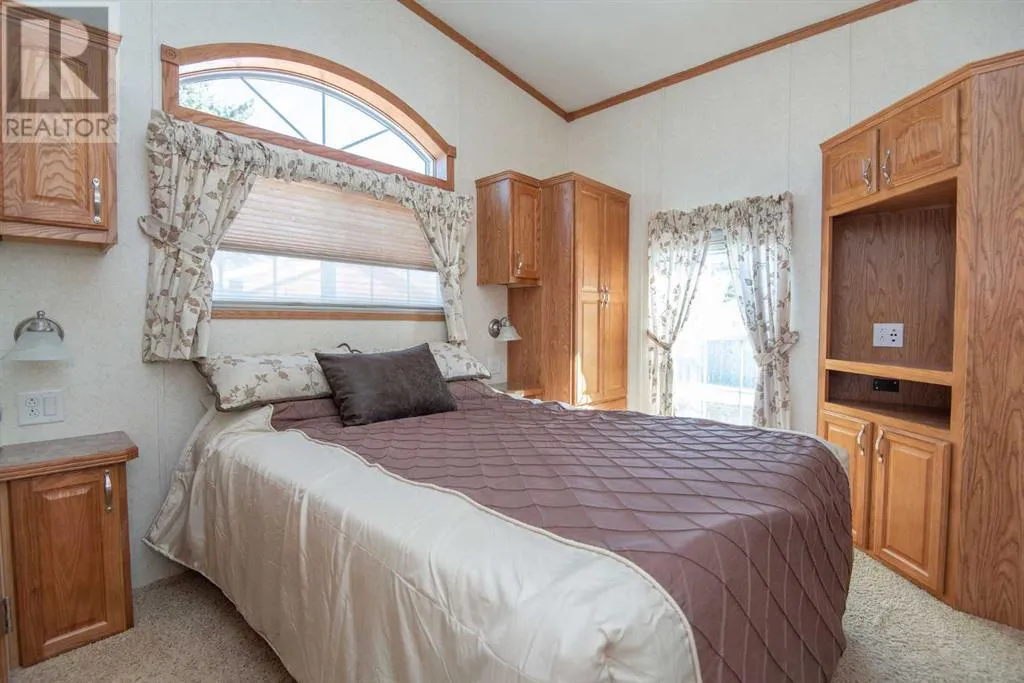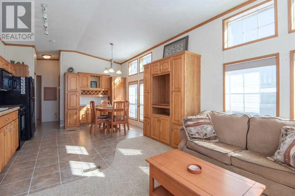Discover unparalleled lake living at Gull Lake's esteemed gated community, DeGraff's RV Resort. This enchanting Park Model home is perfectly positioned within a serene bare-land condominium environment, providing an ideal blend of privacy and amenities.Upon entering, be welcomed by a sun-drenched living area where natural light cascades through ample windows, offering peak-a-boo views of the lake. This space is designed for both relaxation and entertaining, boasting a seamless integration of elegance and functionality. Adjacent, the kitchen shines in the daylight, featuring rich oak cabinetry with a built-in wine rack, crown moulding and modern black appliances, including a gas stove, ready for your culinary adventures.The primary bedroom serves as a tranquil retreat, where large windows not only flood the space with light. Adorned with a built-in dresser, end tables and a vaulted ceiling, the room amplifies both space and serenity, offering a peaceful respite after a day of lakeside activities. There is a cheater door off the primary bedroom into the main bathroom. This three-season sanctuary extends outdoors to a generous 10'5" x 32'10" partially covered deck, inviting you to bask in the natural surroundings and the lake beyond. The home's thoughtful design ensures that the beauty of nature and the lake is always a glance away whether you're inside or out.Beyond the private comforts, this property features a delightful 12' X 12' gazebo for al fresco gatherings, a practical 8' X 12' storage shed, and an additional storage space. Embrace the full spectrum of community life with exclusive access to amenities like laundry facilities, year-round washrooms, a storage yard, serene fishing docks, and engaging recreational areas including horseshoe pits, playgrounds, and walking trails. Sports enthusiasts will appreciate the pickleball and basketball courts, while water lovers can enjoy the private boat launch.If you're searching for a seasonal retreat check out DeG raff's RV Resort. This home is move-in ready with the furniture included. CSA # Z241 (id:27476)
