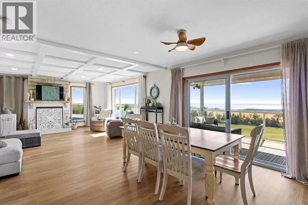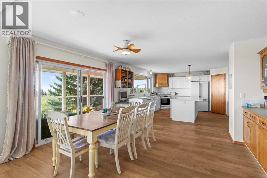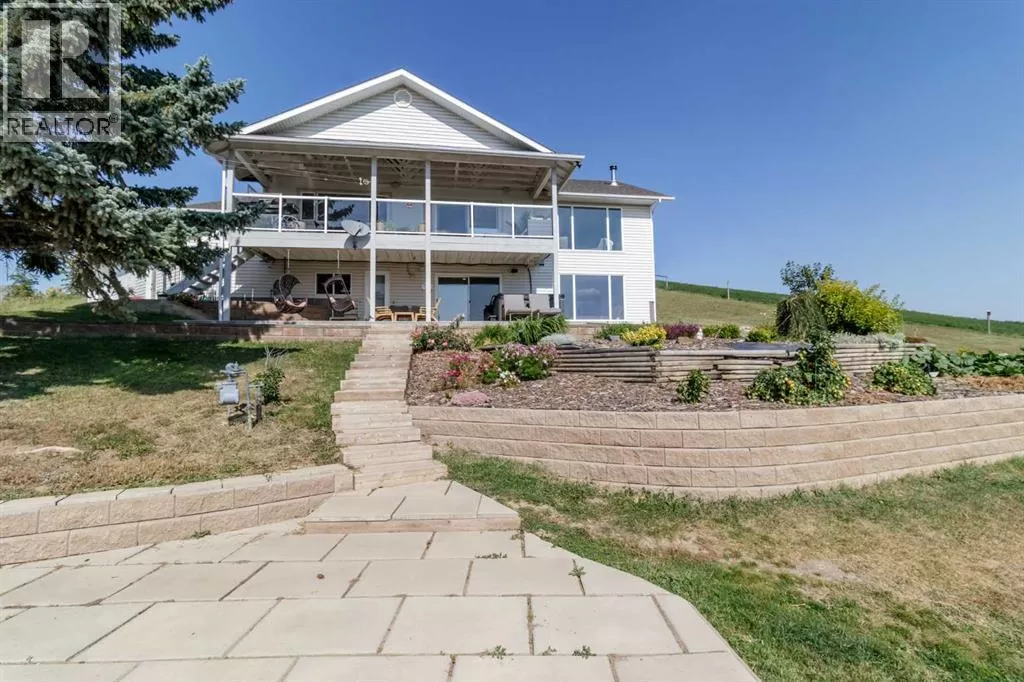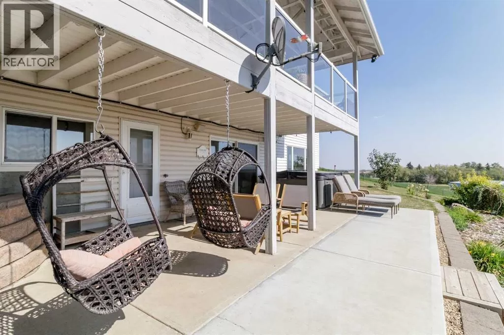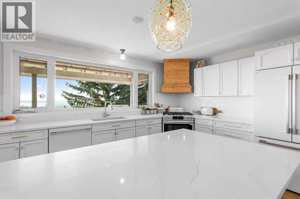 ESCAPE THE CITY-GORGEOUS LAKE AND MOUNTAIN VIEWS!! Dreaming of acreage living? Check out this beautiful 1998 built, 1502 sq ft walkout bungalow just north of Sylvan Lake. Step in from the oversized heated garage and admire the spacious living room with the coffered ceilings, with wood burning fireplace and big windows to show off your amazing lake and mountain views. Kitchen has plenty of space, with fresh white cabinetry, beautiful large island with quartz counter tops. Brand new appliances boasting a gas range to complete the kitchen. The built in China cabinet offers more space for storage. Over on the other side of the island you will see a coffee bar, the new flooring and tile will make you feel right at home. Master bedroom has a full ensuite with jetted tub and a walk in closet. The shop is 2657 Sq.ft and heated (with a bathroom), also includes a 24x64 cattle shed, a garden shed and a generator hook up with 220 outlet in case of a power outage that can run the whole house if needed. The deck is covered so you can enjoy the summer night and the quietness of the day. Enjoy your summer nights with family and friends at the fire pit-overlooking the lake and your beautifully landscaped yard. The roof was redone in 2019, the septic field was redone in 2021. And the attached garage has a separate boot room to keep all things organized for the family. (id:27476)