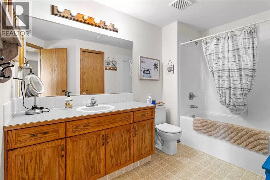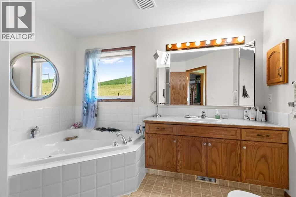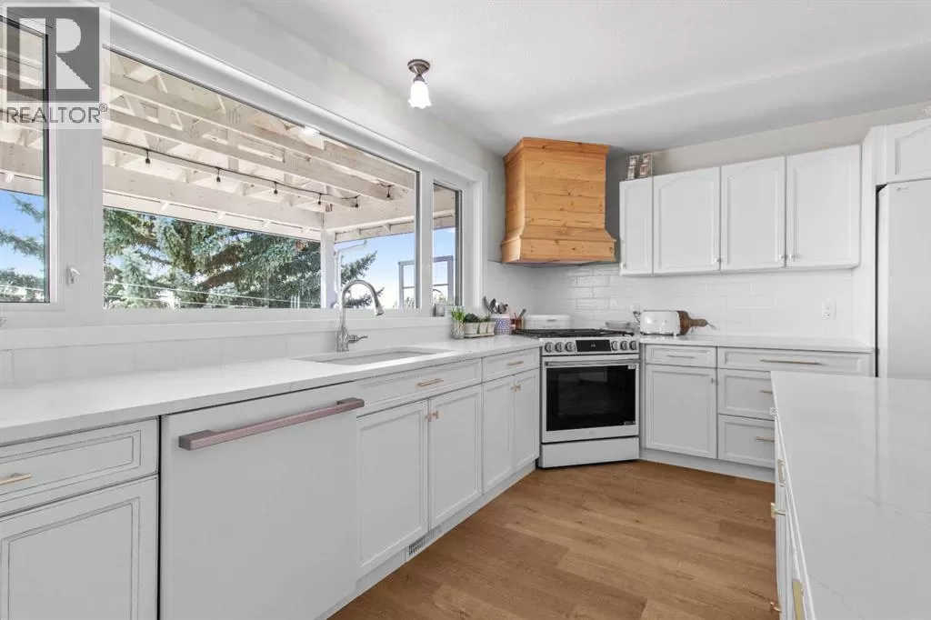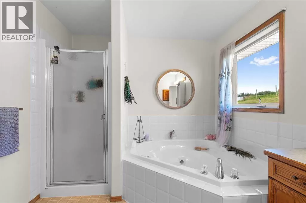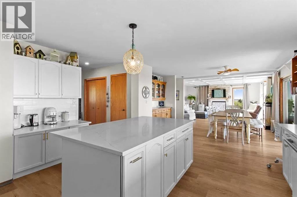 ESCAPE THE CITY-GORGEOUS LAKE AND MOUNTAIN VIEWS!! Dreaming of acreage living? Check out this beautiful 1998 built, 1502 sq ft walkout bungalow just north of Sylvan Lake. Step in from the oversized heated garage and admire the spacious living room with the coffered ceilings, with wood burning fireplace and big windows to show off your amazing lake and mountain views. Kitchen has plenty of space, with fresh white cabinetry, beautiful large island with quartz counter tops. Brand new appliances boasting a gas range to complete the kitchen. The built in China cabinet offers more space for storage. Over on the other side of the island you will see a coffee bar, the new flooring and tile will make you feel right at home. Master bedroom has a full ensuite with jetted tub and a walk in closet. The shop is 2657 Sq.ft and heated (with a bathroom), also includes a 24x64 cattle shed, a garden shed and a generator hook up with 220 outlet in case of a power outage that can run the whole house if needed. The deck is covered so you can enjoy the summer night and the quietness of the day. Enjoy your summer nights with family and friends at the fire pit-overlooking the lake and your beautifully landscaped yard. The roof was redone in 2019, the septic field was redone in 2021. And the attached garage has a separate boot room to keep all things organized for the family. (id:27476)